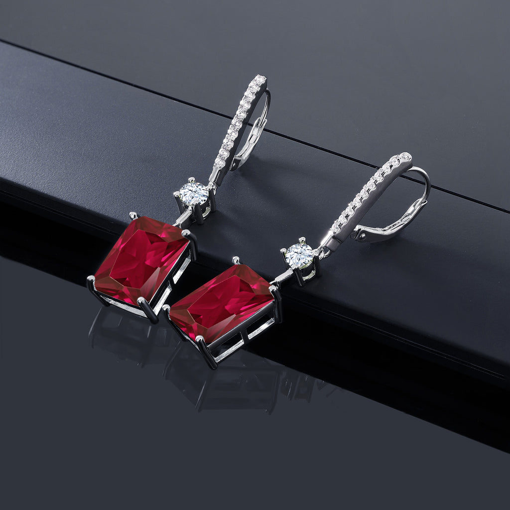 VIBRANT RED CREATED RUBY: The focal point of these earrings is the striking emerald-cut red created ruby gemstone, which boasts a captivating deep red hue that exudes elegance and sophistication.