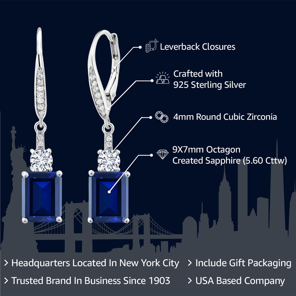 4-5 Cttw Drop Dangle Earrings for Women | 925 Sterling Silver | Emerald Cut 9X7MM Gemstone Birthstone | Fine Jewelry Gifts for Her Mom Anniversary Wedding