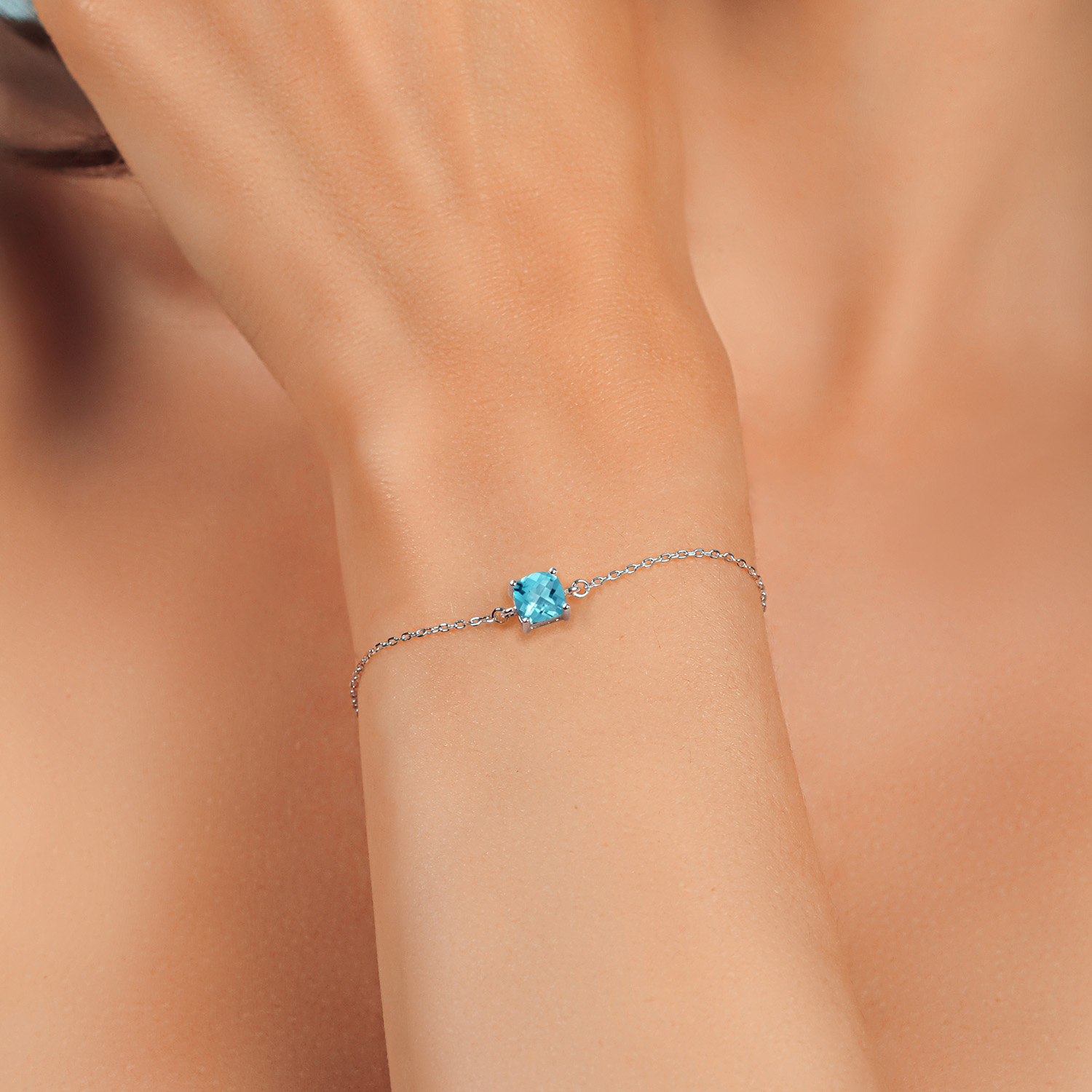 STUNNING 6MM CUSHION CUT GEMSTONE: Featuring a 6MM cushion-cut gemstone birthstone, this bracelet showcases the stone's brilliance and unique facets. The cushion cut adds a touch of sophistication and enhances the gemstone's natural beauty, making it a standout piece.