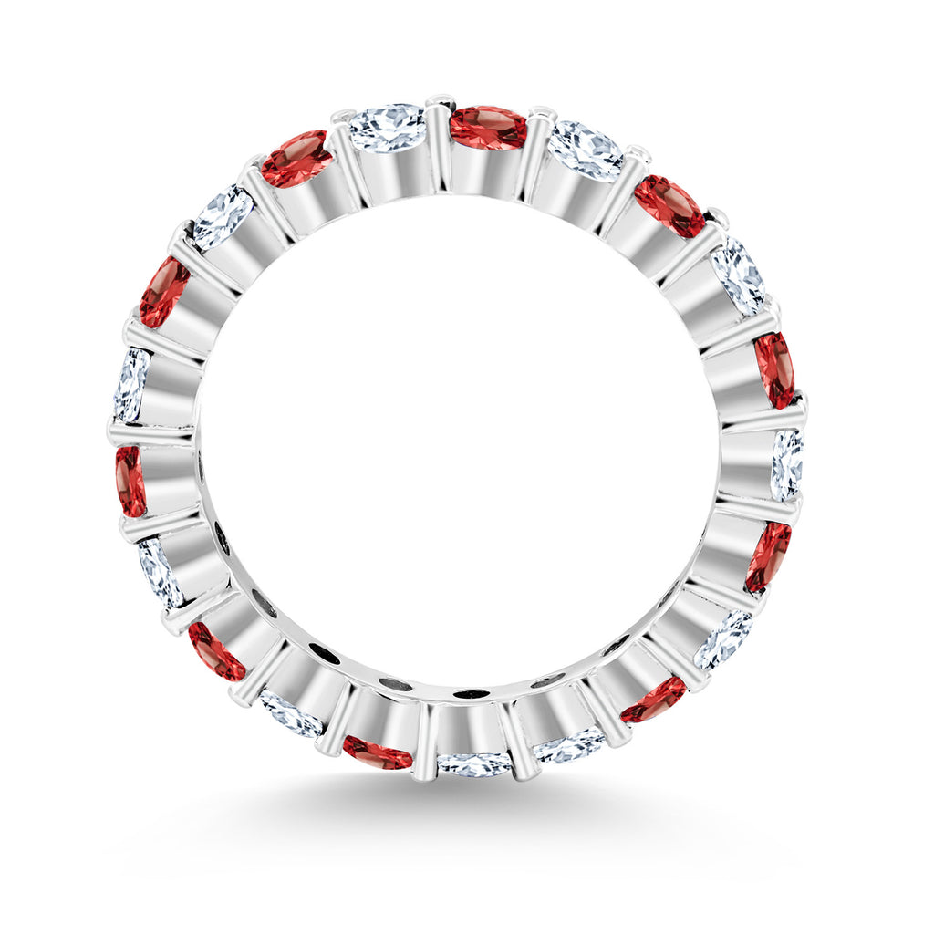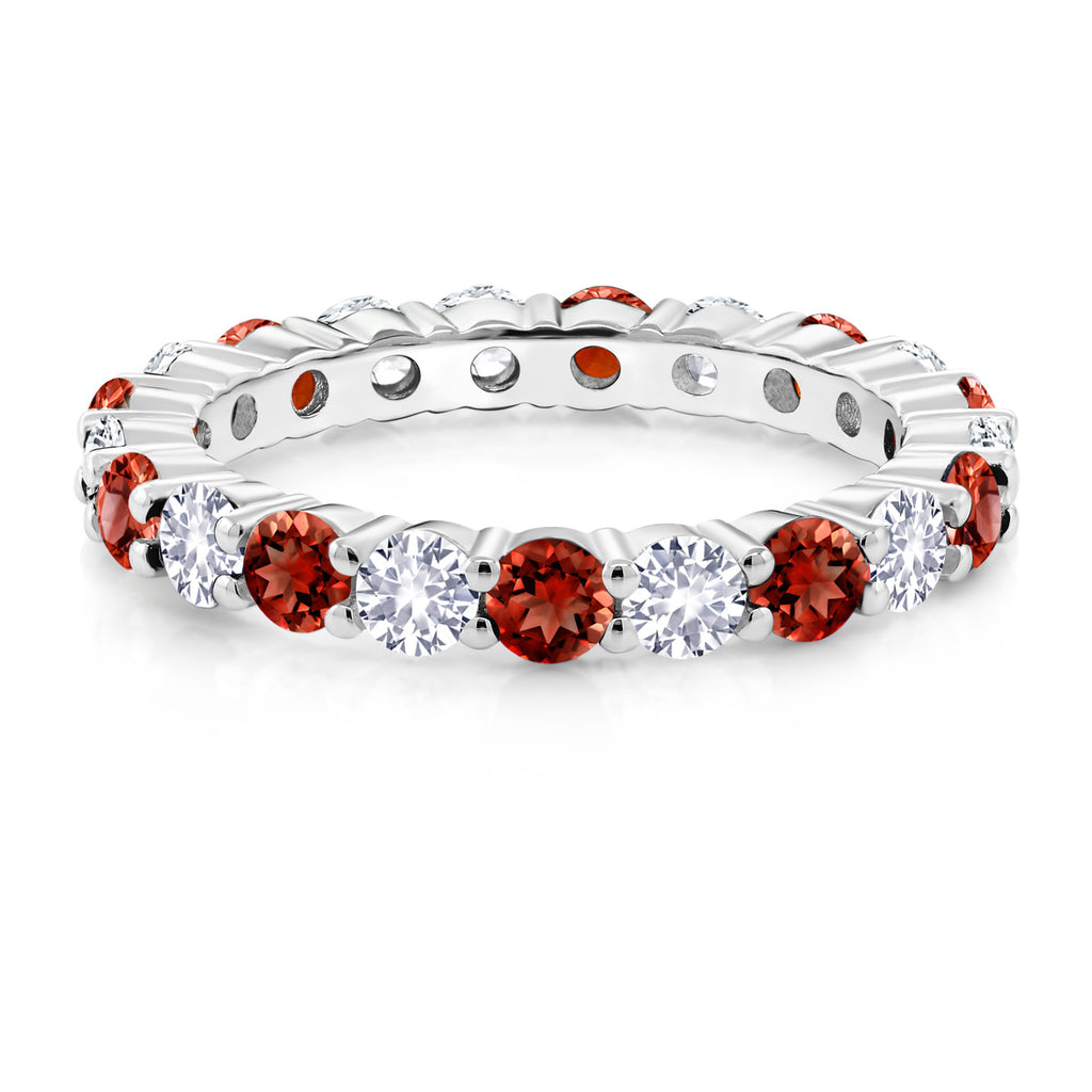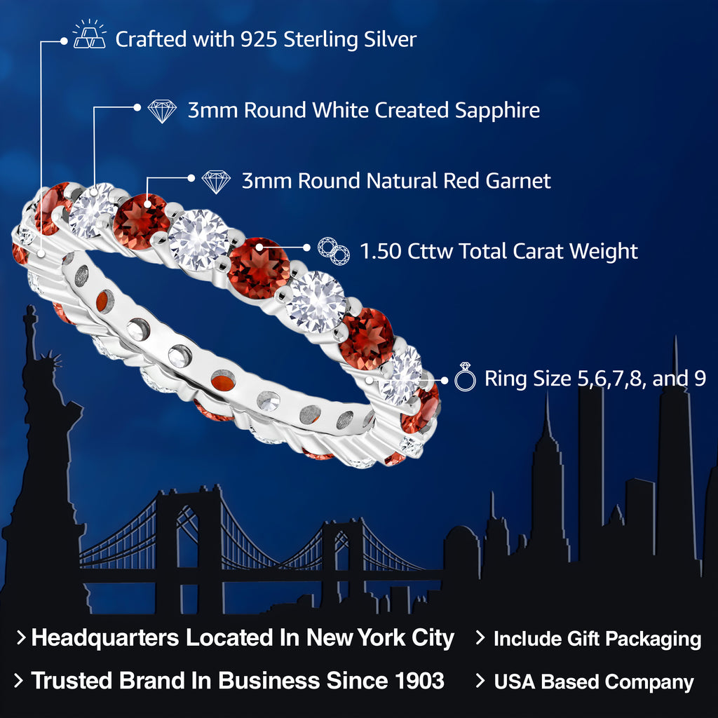 ETERNAL ELEGANCE WITH RED GARNET AND WHITE SAPPHIRES: Embrace eternal elegance with this stunning eternity band ring, featuring alternating Red Garnets and White Created Sapphires. The 1.50 carat total weight showcases the rich red hue of the Garnets and the brilliant sparkle of the White Sapphires, creating a timeless and sophisticated design.