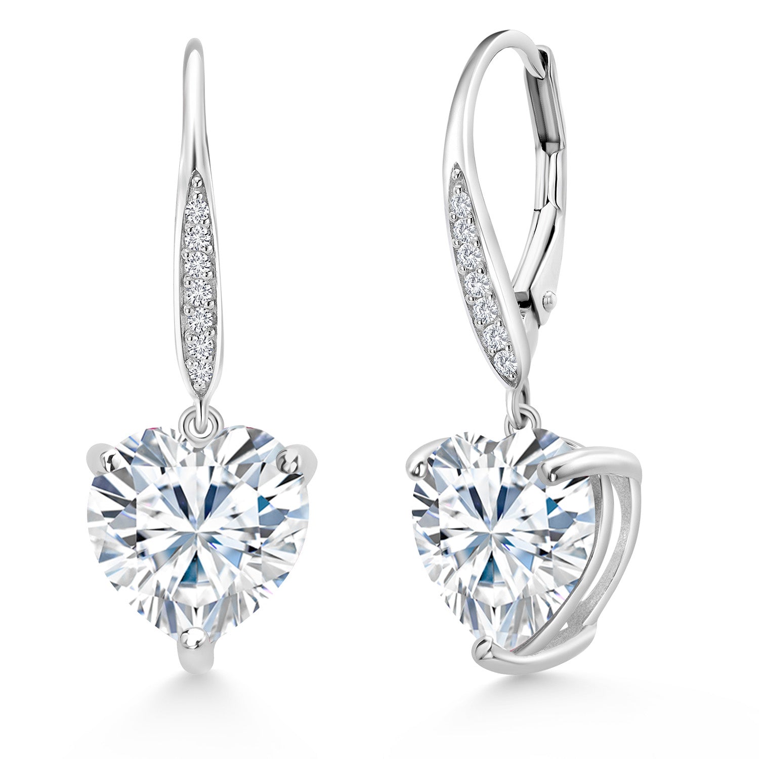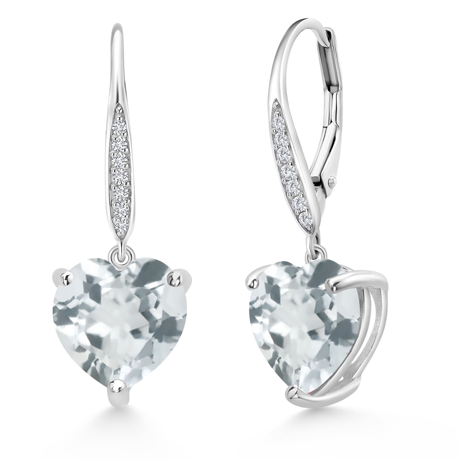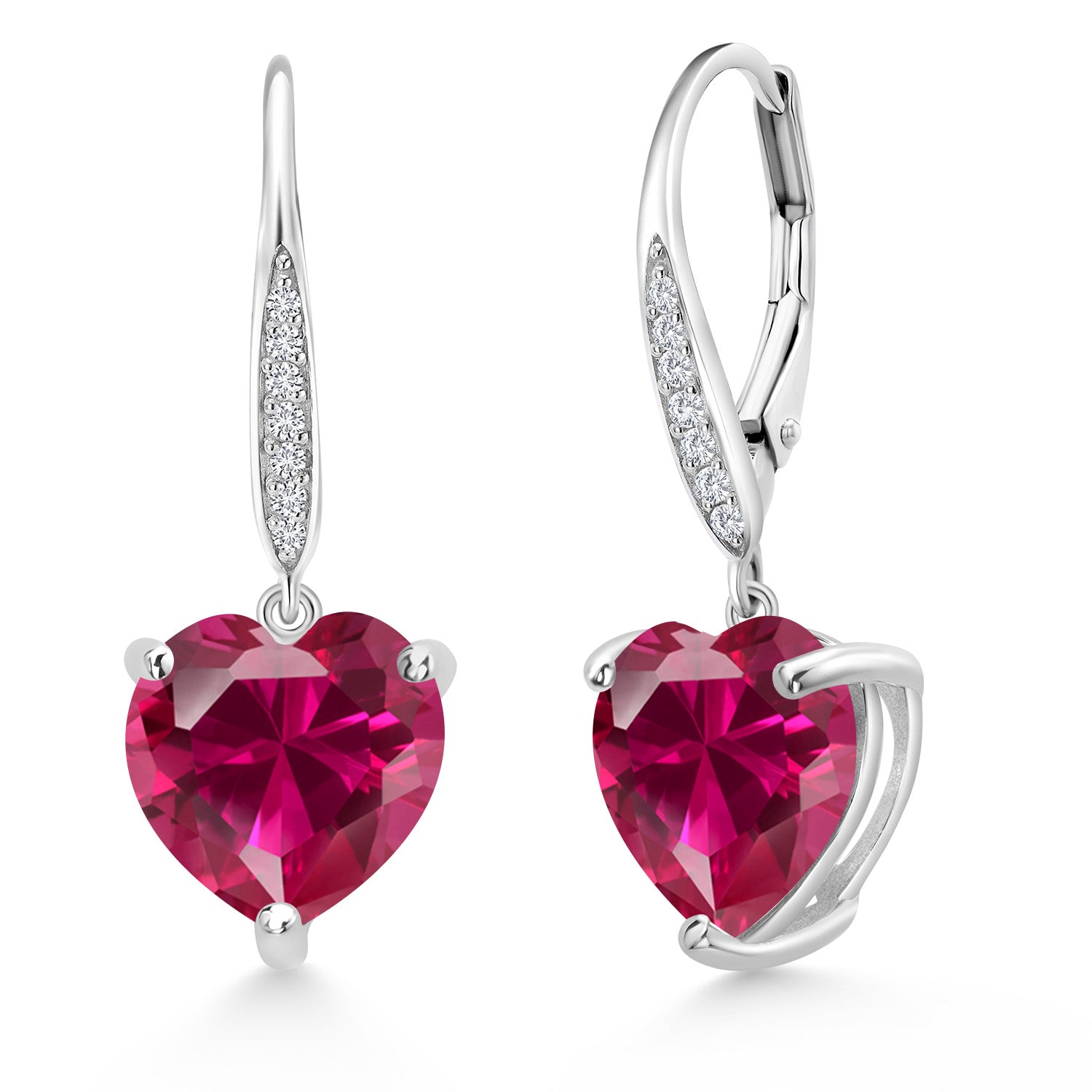 Leverback Dangle Drop Heart Earrings For Women | 925 Sterling Silver | 10MM Heart Shape Gemstone Birthstone and White Lab Grown Diamond | Fine Jewelry Gifts for Her Mom Wife