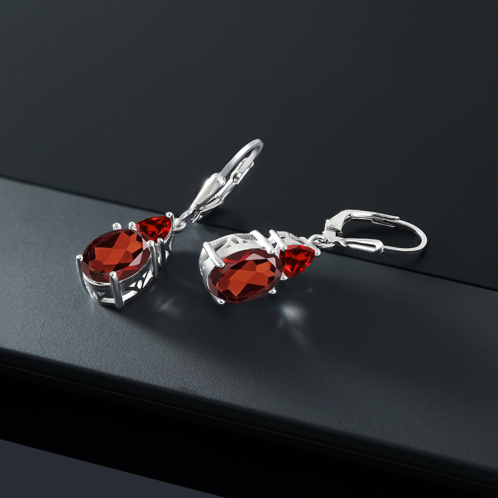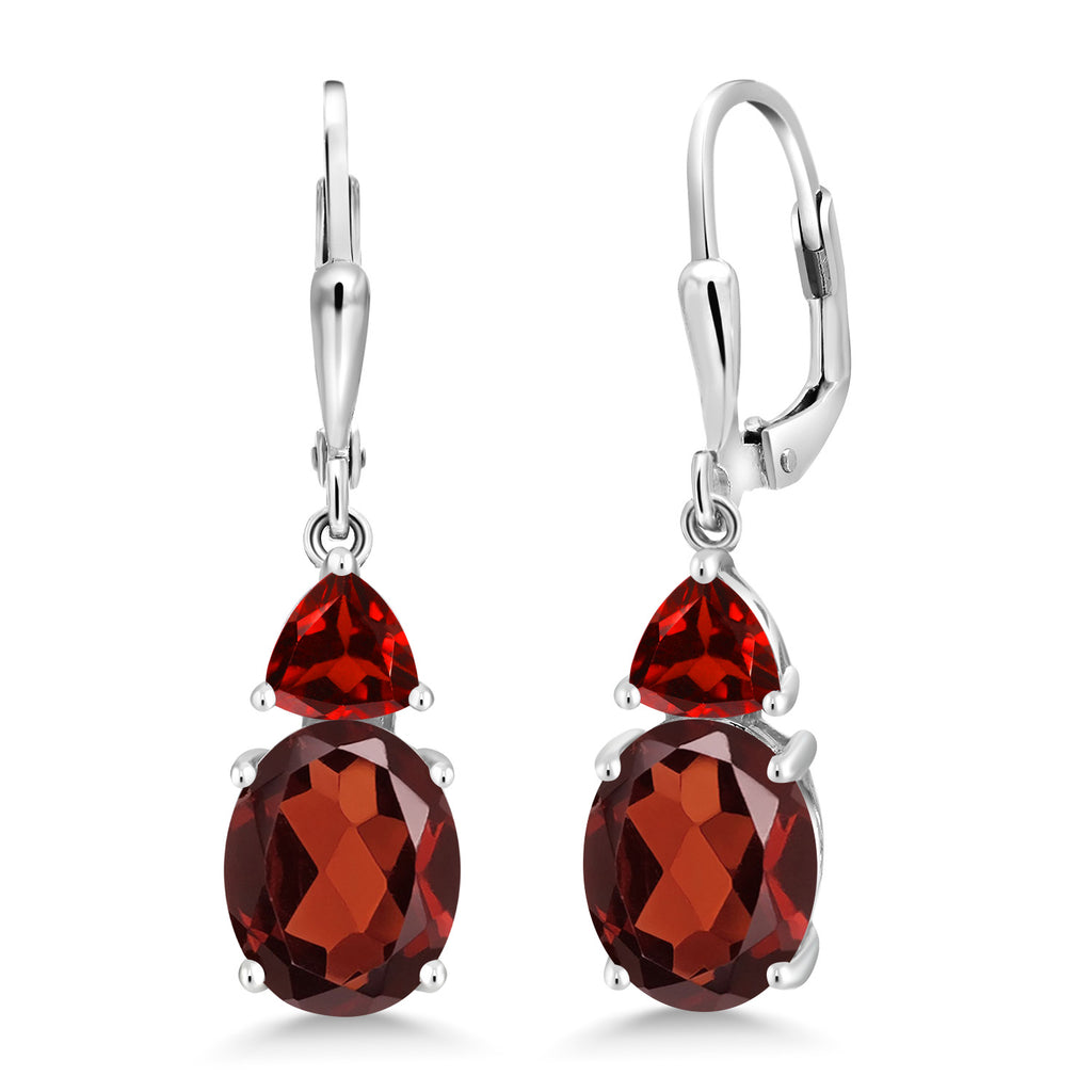 ELEGANT GEMSTONE DANGLES: Elevate your style with our exquisite 925 Sterling Silver Red Garnet Dangle Earrings. Featuring a total of 6.68 Cttw, these earrings showcase stunning Oval 10X8MM and Trillion 5MM Red Garnet gemstones that sway gracefully with every movement.