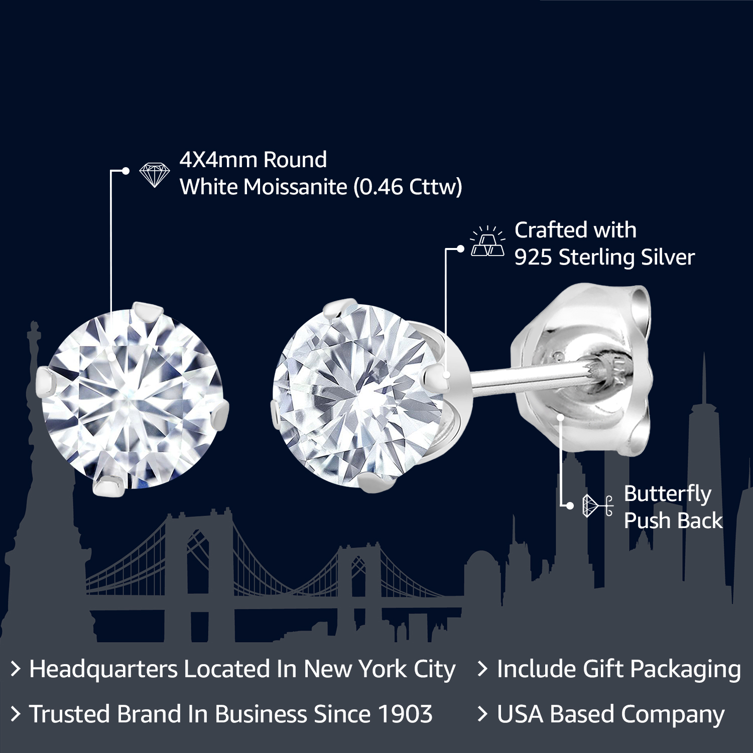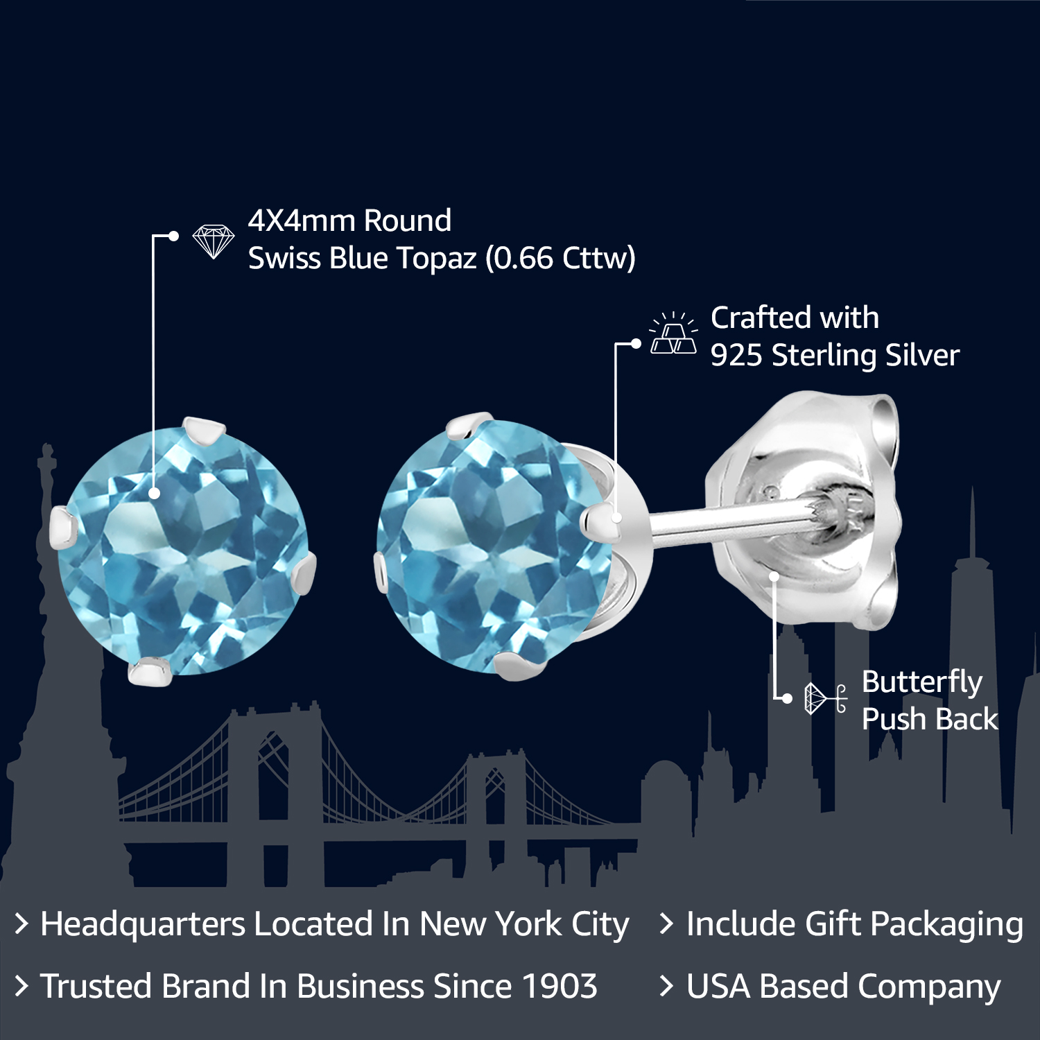 925 Sterling Silver Round 4MM Gemstone Birthstone Stud Earrings For Women Men