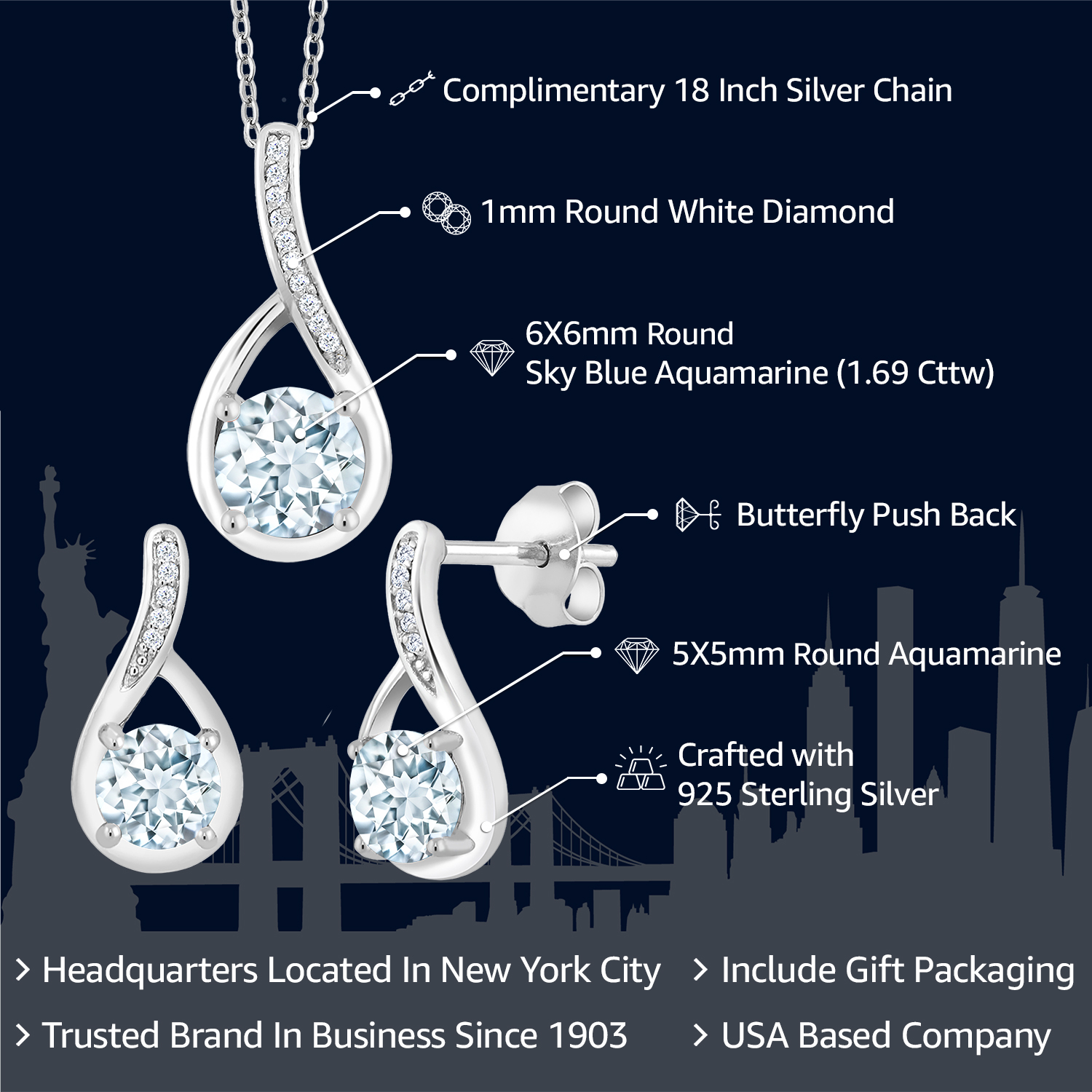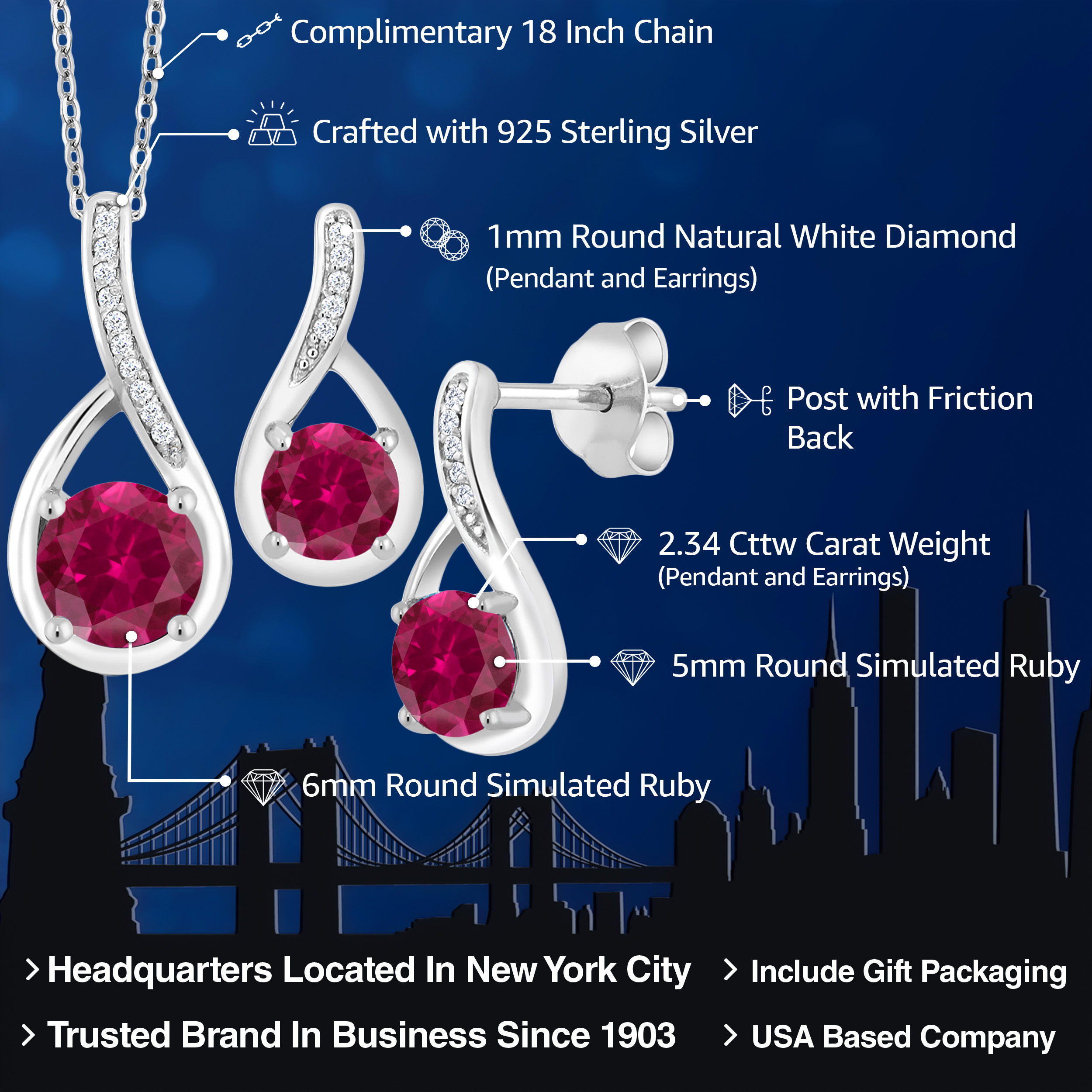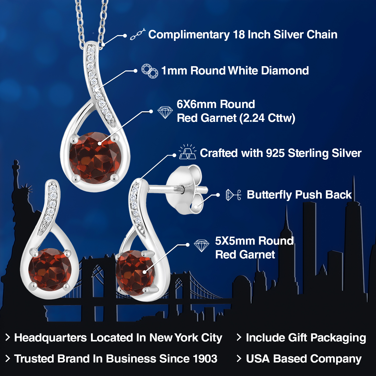ROUND GEMSTONE OPTIONS: Celebrate meaningful moments with a 6MM round gemstone in the pendant and 5MM rounds in the earrings, available in various birthstone options. Each stone is precision-cut to maximize brilliance and clarity for timeless elegance.