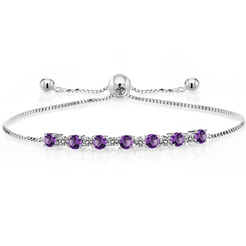CAPTIVATING TENNIS BRACELET DESIGN: Adorn your wrist with the timeless and captivating design of a tennis bracelet. Crafted in high-quality 925 sterling silver, this bracelet features a continuous line of round purple amethyst gemstones and white diamonds, creating an elegant and sophisticated look.