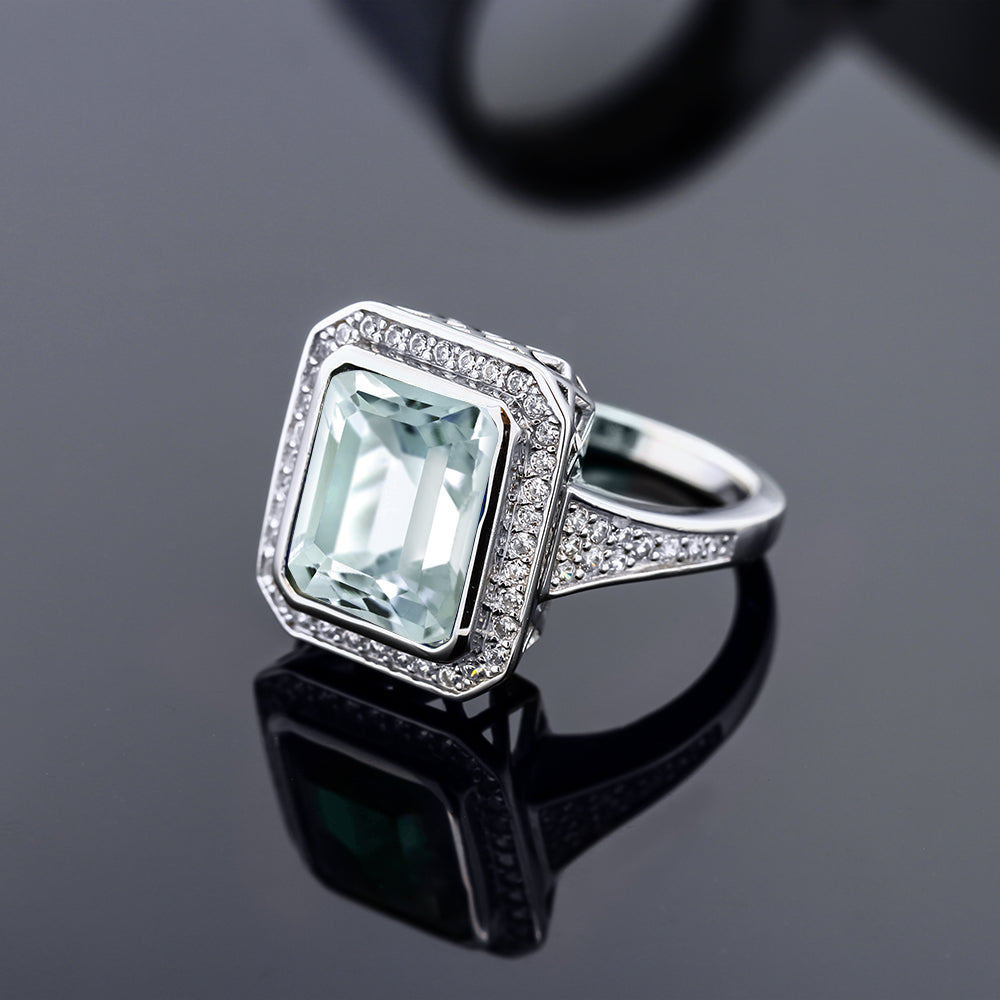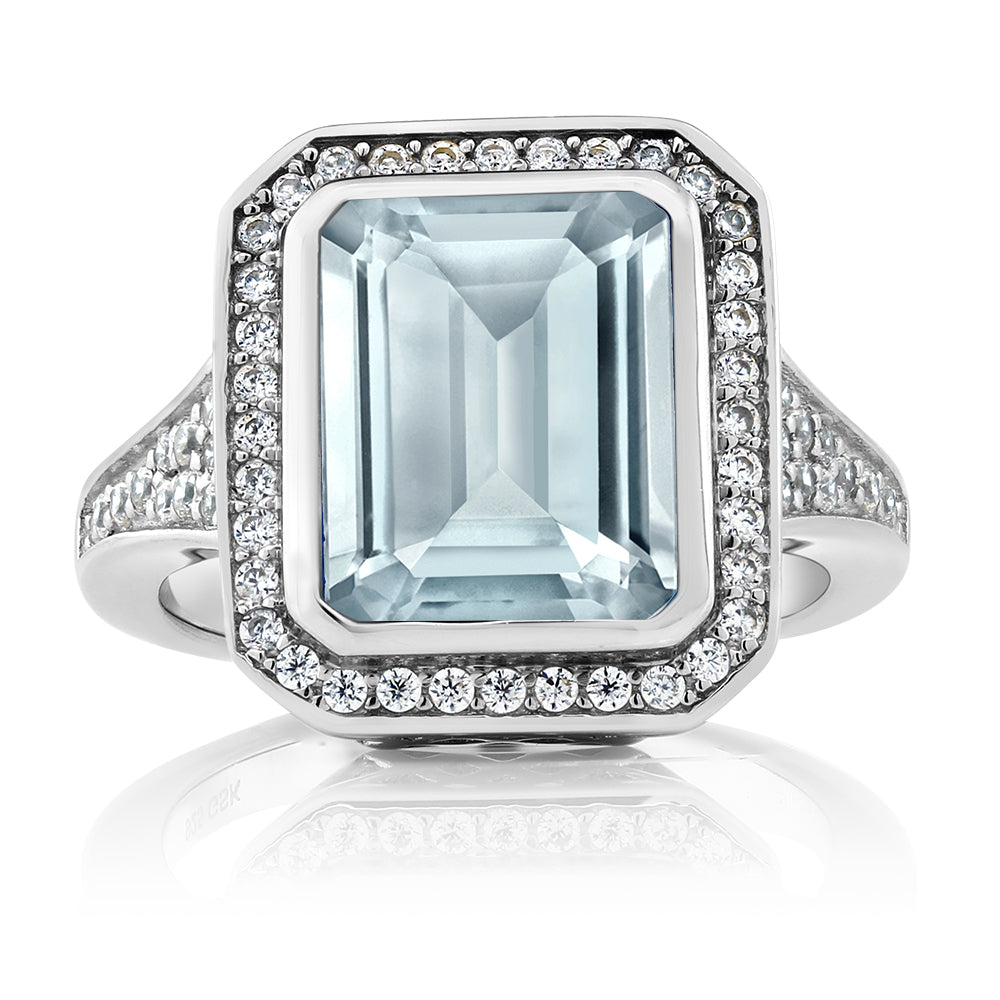 5.00 Cttw Simulated Aquamarine Ring For Women | 925 Sterling Silver | Emerald Cut 11X9MM | Wedding Engagement Anniversary Promise Ring For Women