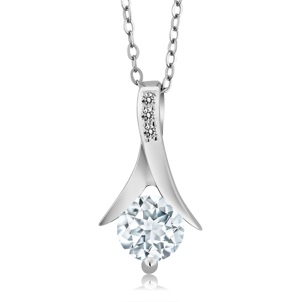 925 Sterling Silver Sky Blue Aquamarine and White Diamond Pendant Earrings Jewelry Set Gift Set For Women (2.30 Cttw, Round Cut with 18 Inch Silver Chain)