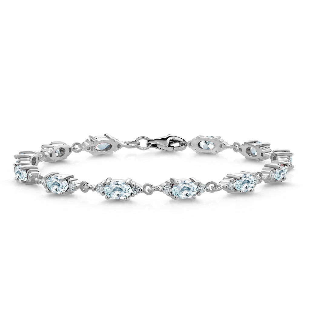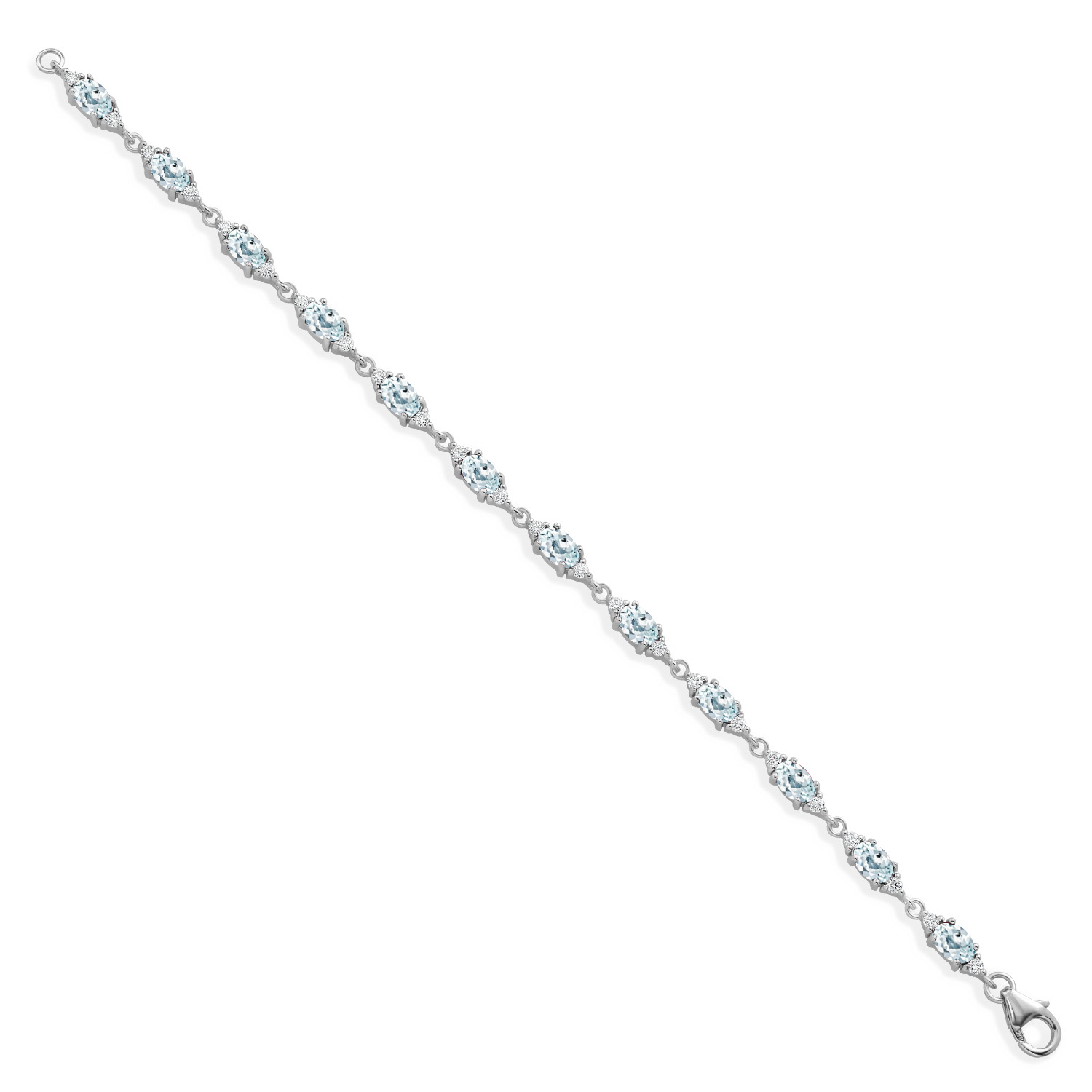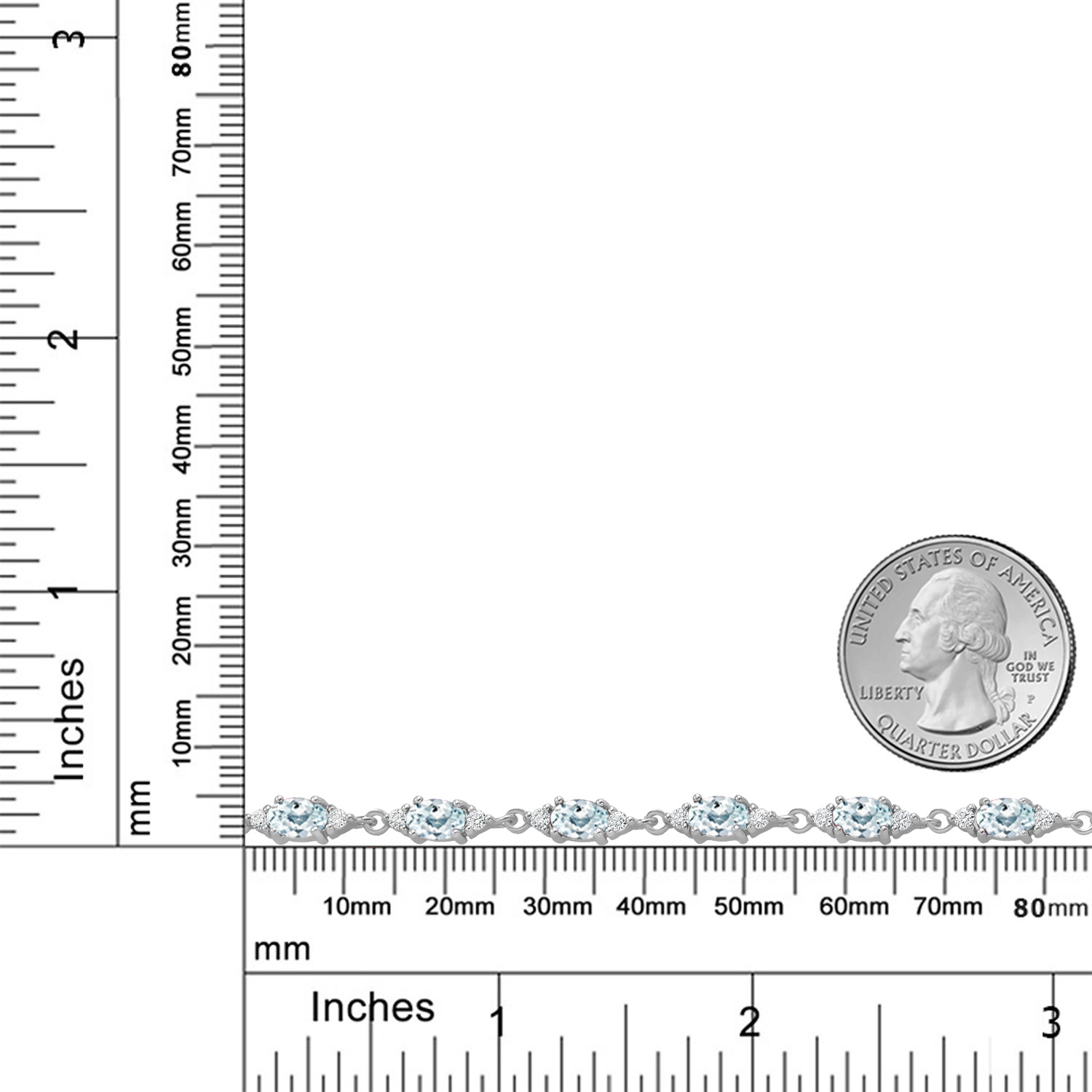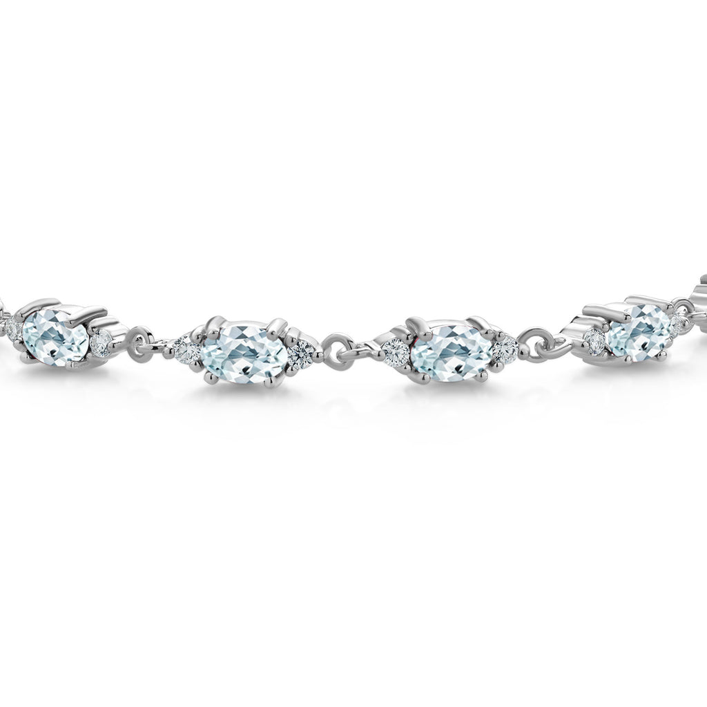 MEASUREMENTS: 6x4mm Oval Heat-Treated Sky Blue Aquamarine, 2x2mm Round Near Colorless (GH) Moissanite. Total Carat Weight is 6.91 cttw