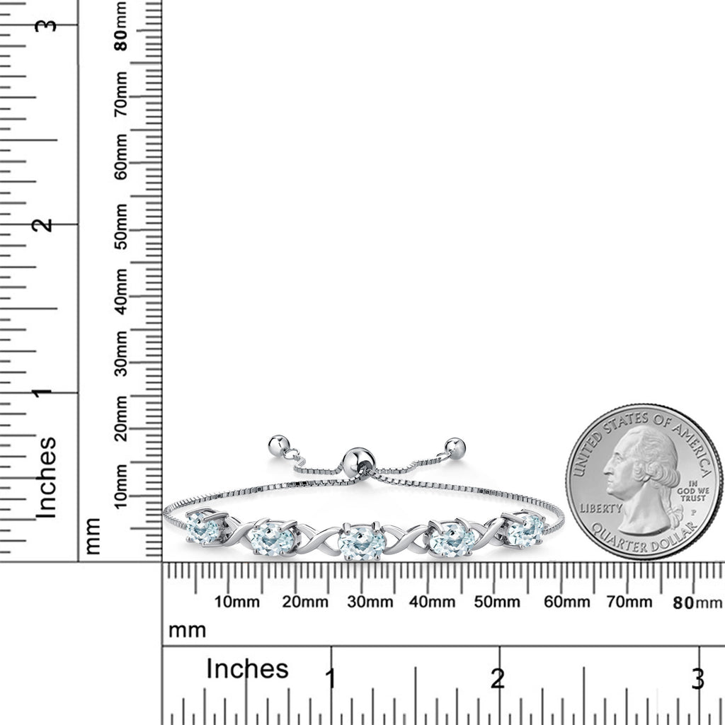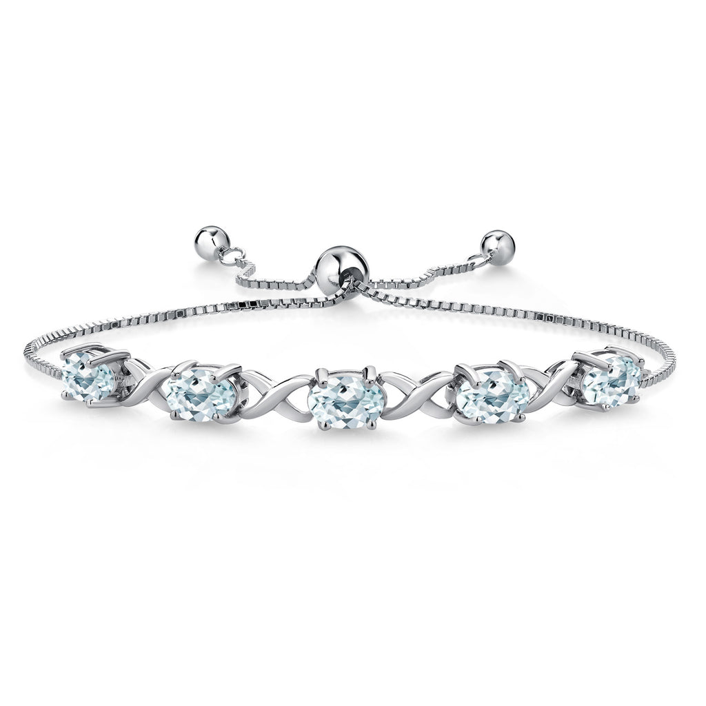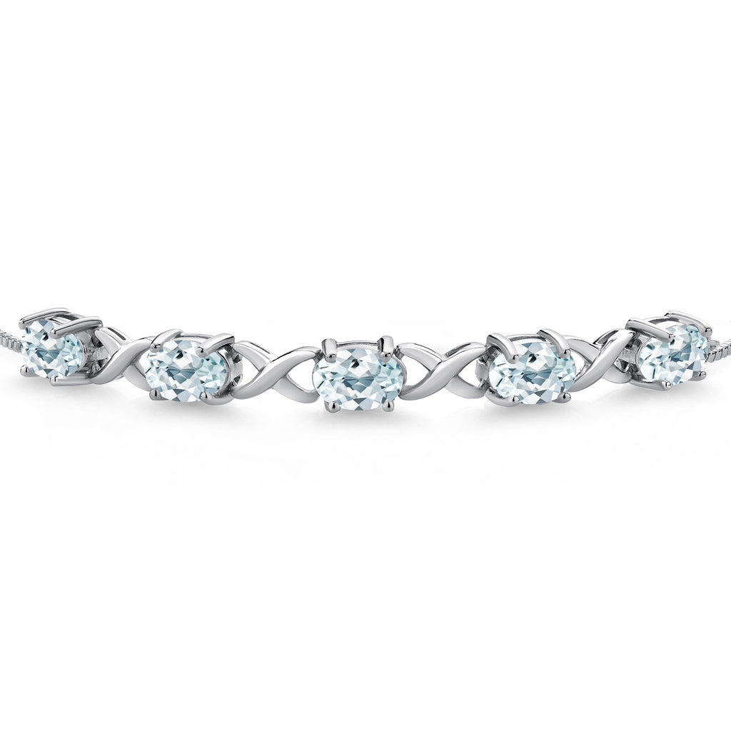 ELEGANT AND VERSATILE DESIGN: This 925 sterling silver bracelet features 3.75 Cttw of Sky Blue Aquamarine gemstones in classic oval cuts (7X5MM), creating a timeless and sophisticated look perfect for any occasion.