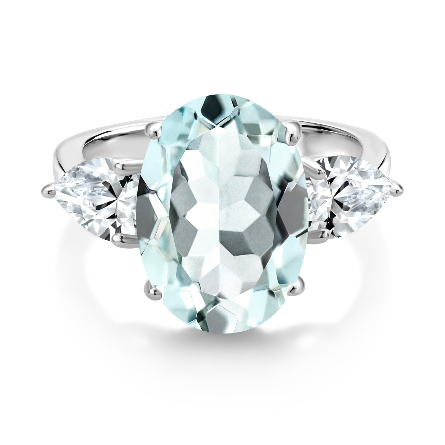MESMERIZING GEMSTONE DUO: Elevate your style with the mesmerizing allure of this ring. Featuring a total weight of 7.70 Cttw with a 14X10MM Oval Sky Blue Simulated Aquamarine and 7X5MM Pear Shape White Created Sapphire gemstones, it radiates elegance and brilliance.