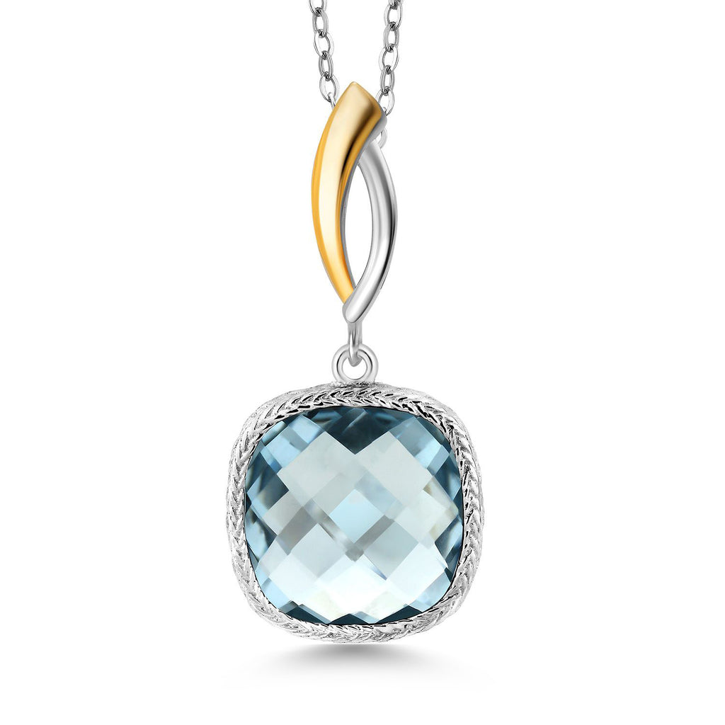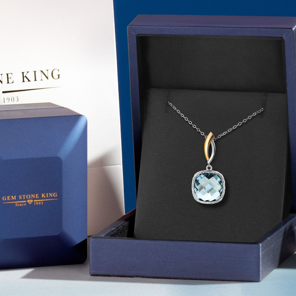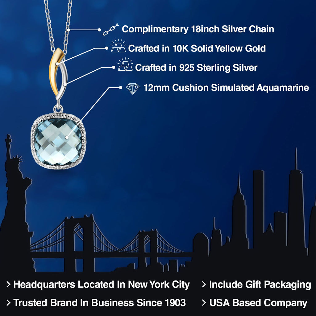 925 Sterling Silver Sky Blue Simulated Aquamarine Pendant Necklace for Women | 6.00 Cttw | Gemstone March Birthstone | Cushion 12MM | With 18 Inch Chain