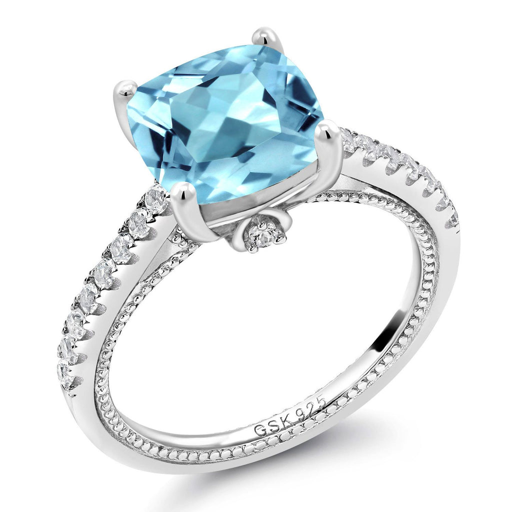 CUSHION-CUT FOR TIMELESS APPEAL: The cushion-cut design of the sky blue topaz enhances the ring's timeless appeal. This classic and versatile cut showcases the gemstone's brilliance and allows it to catch and reflect light beautifully.