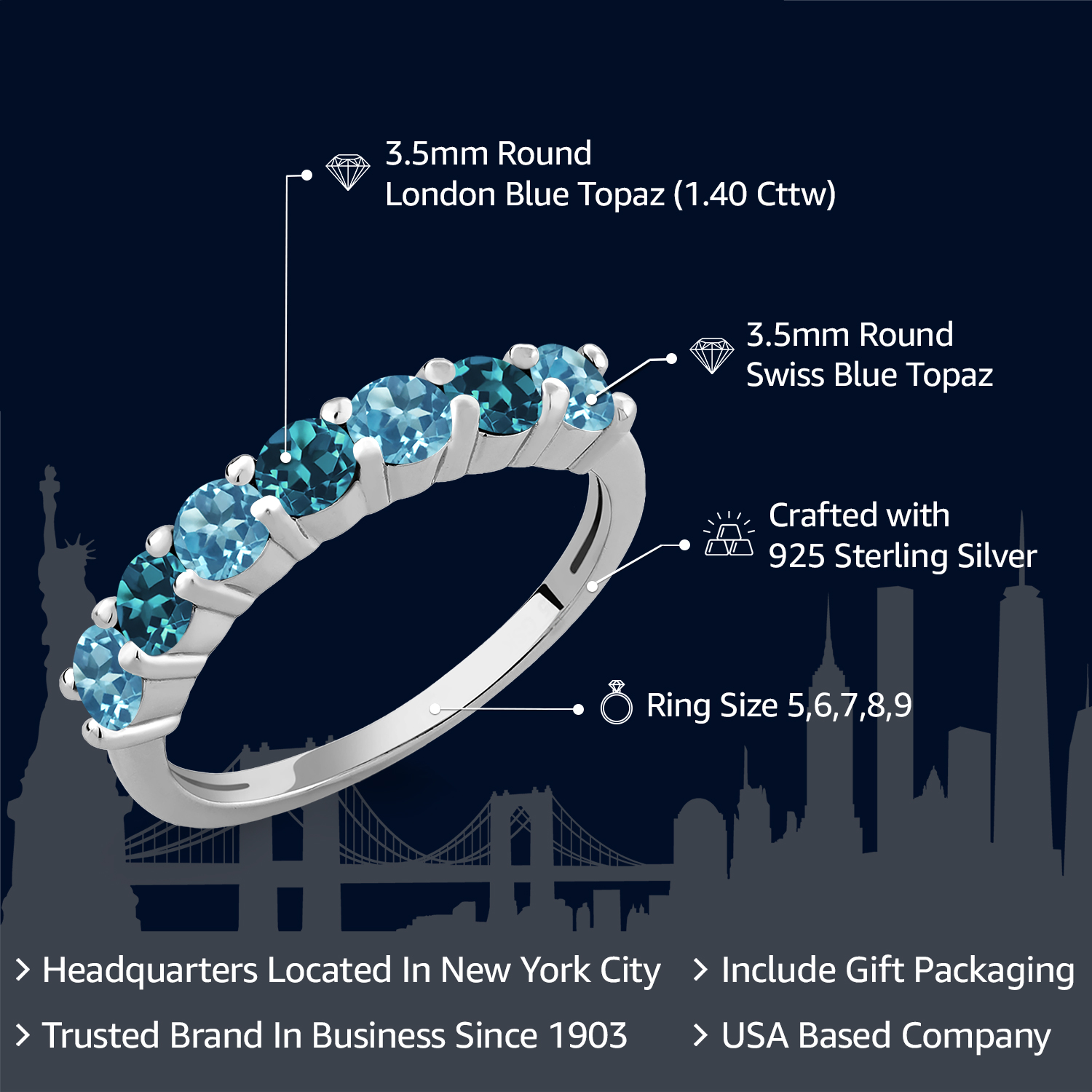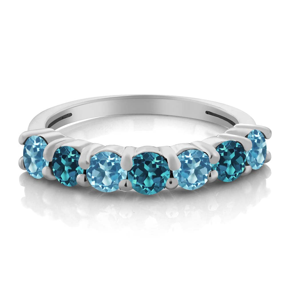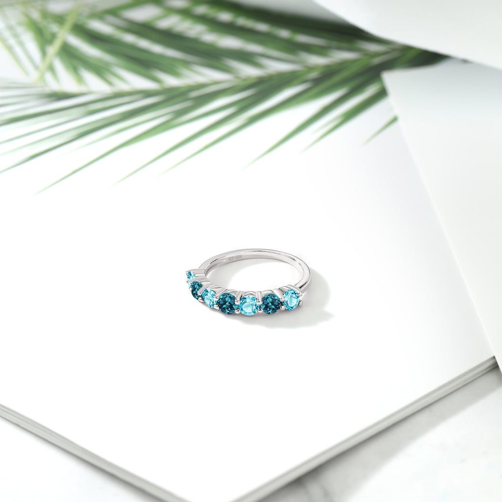 DUAL GEMSTONE ELEGANCE: Unique anniversary ring featuring both Swiss Blue Topaz and London Blue Topaz gemstones, creating a stunning contrast. The combination of the two blue hues adds depth and sophistication to the design, making it a standout piece.