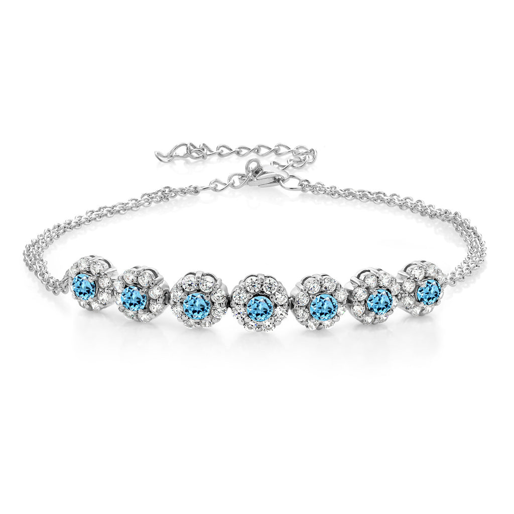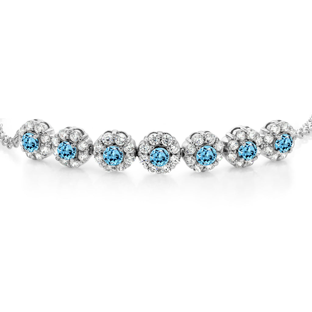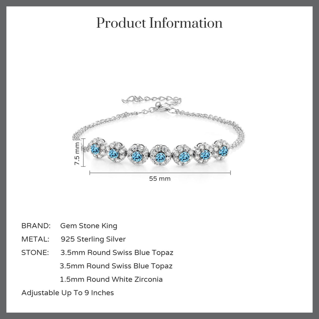 VIBRANT SWISS BLUE TOPAZ BIRTHSTONE: This tennis bracelet features 2.24 Cttw of Swiss blue topaz gemstones, the captivating November birthstone, known for its bright and vivid blue color that adds a pop of elegance to any outfit.