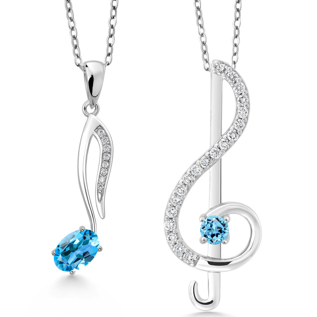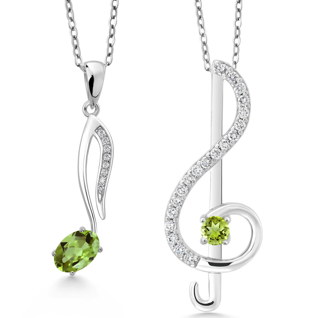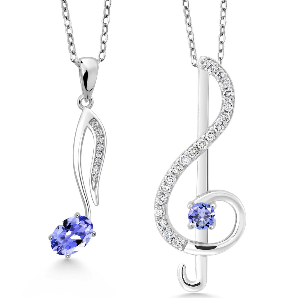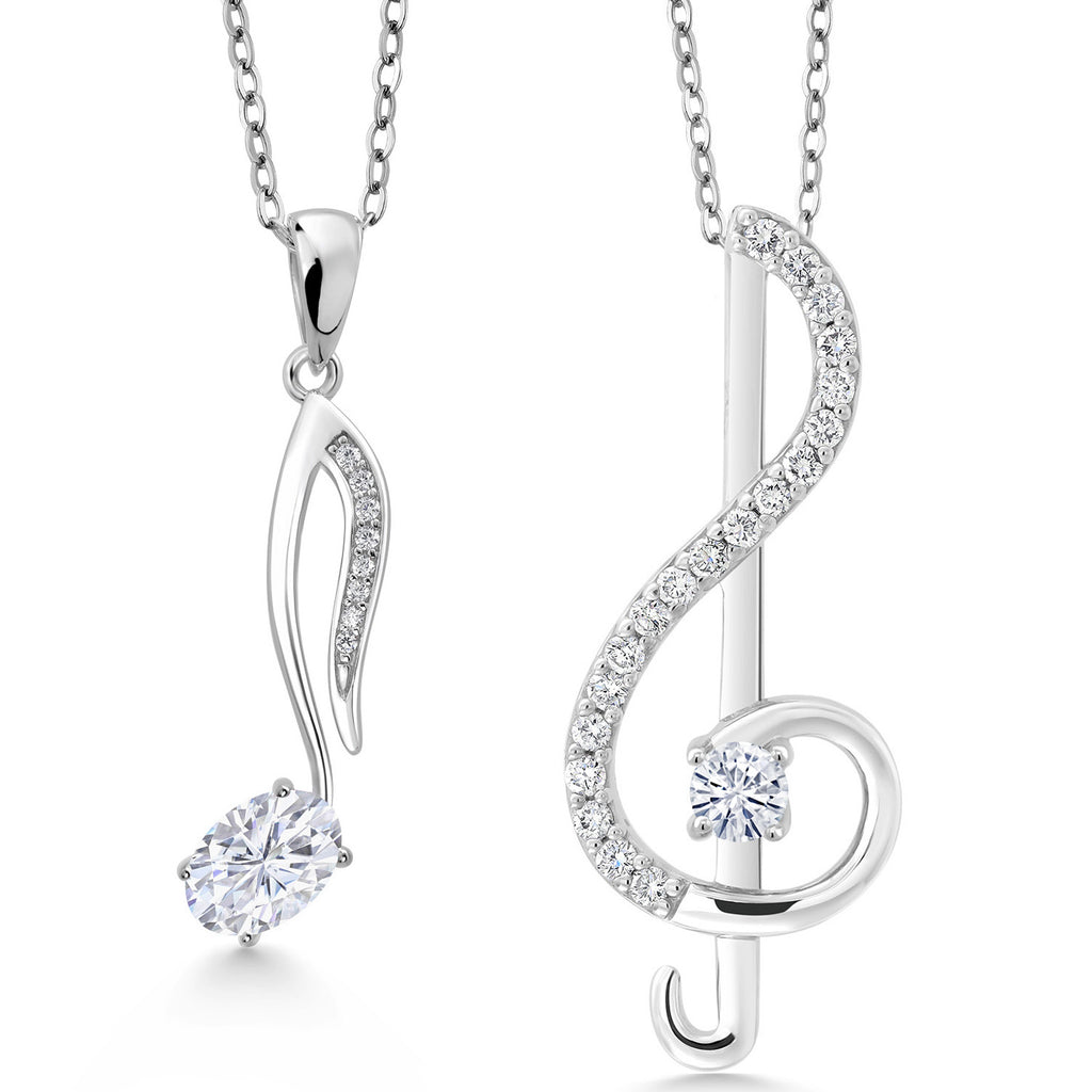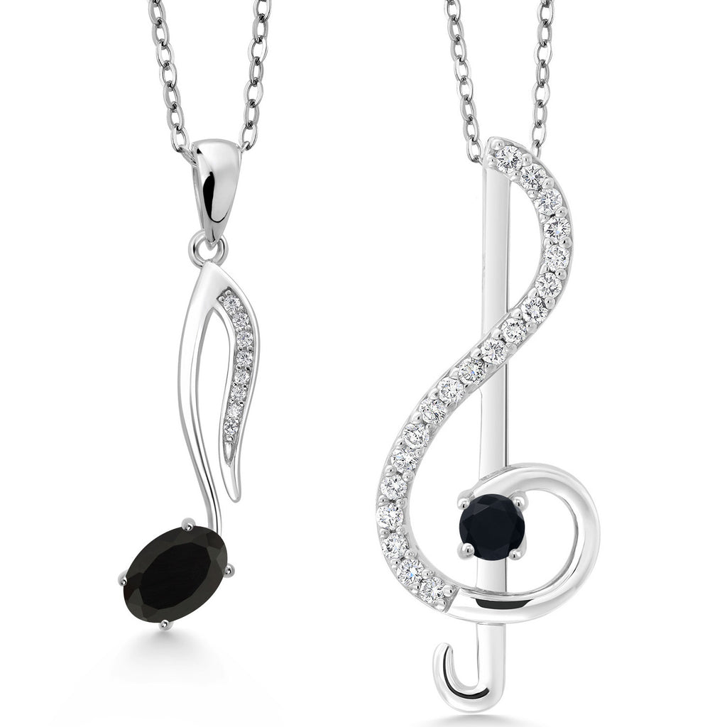 Treble Clef and Eighth Note 2 Pcs Music Pendant Necklace Jewelry Set For Women By Keren Hanan | 925 Sterling Silver | Oval 6X4MM | Round 3MM | With 18 Inch Chain