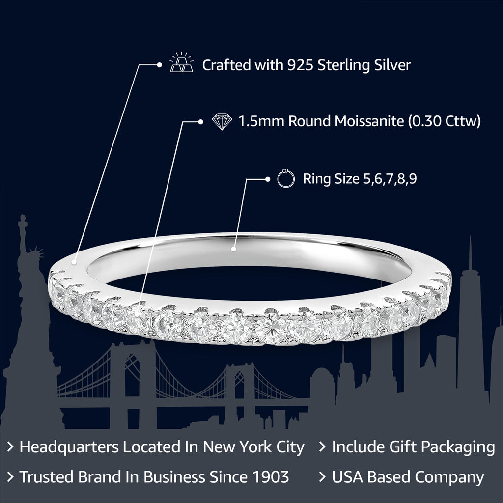 Stackable White Moissanites Half Eternity Wedding Band Ring For Women | 925 Sterling Silver | 0.30 Cttw | Available in Size 5,6,7,8,9 | Fine Jewelry Gifts for Her Mom Women Wife