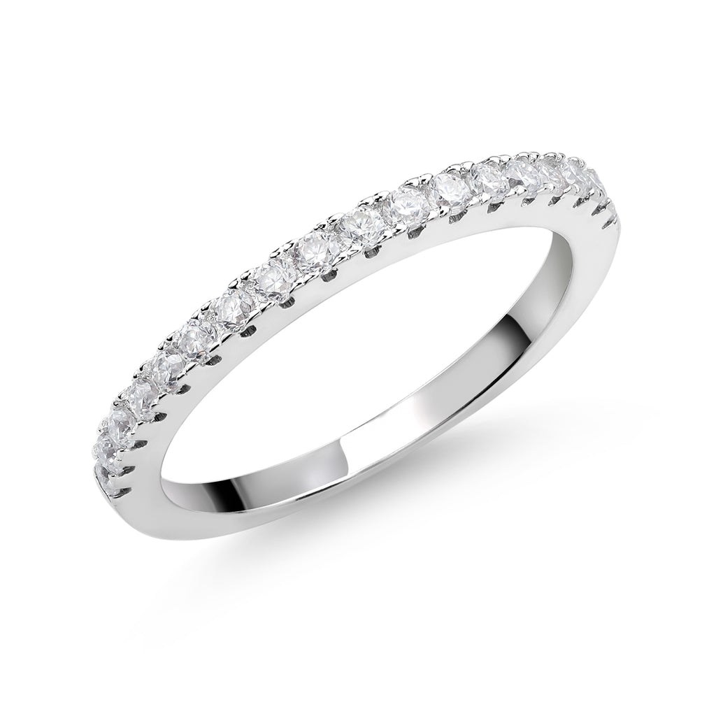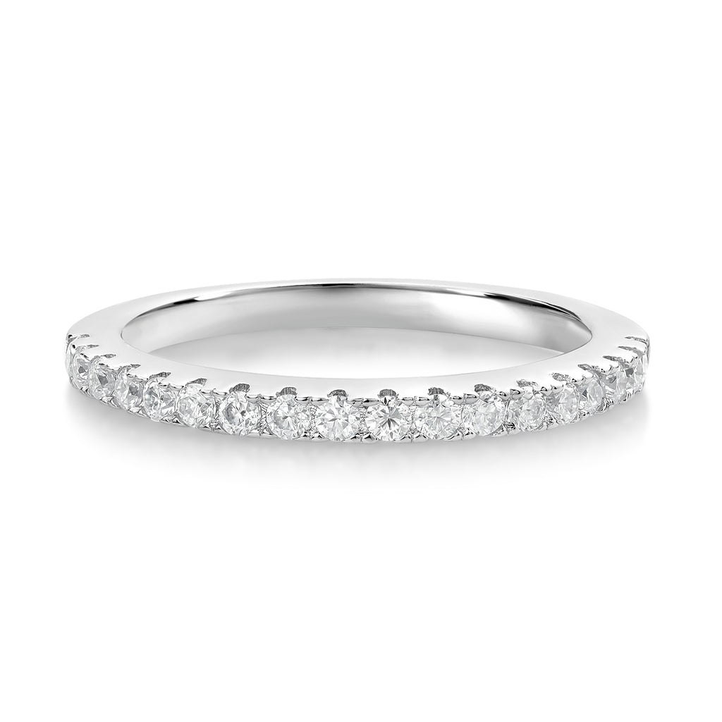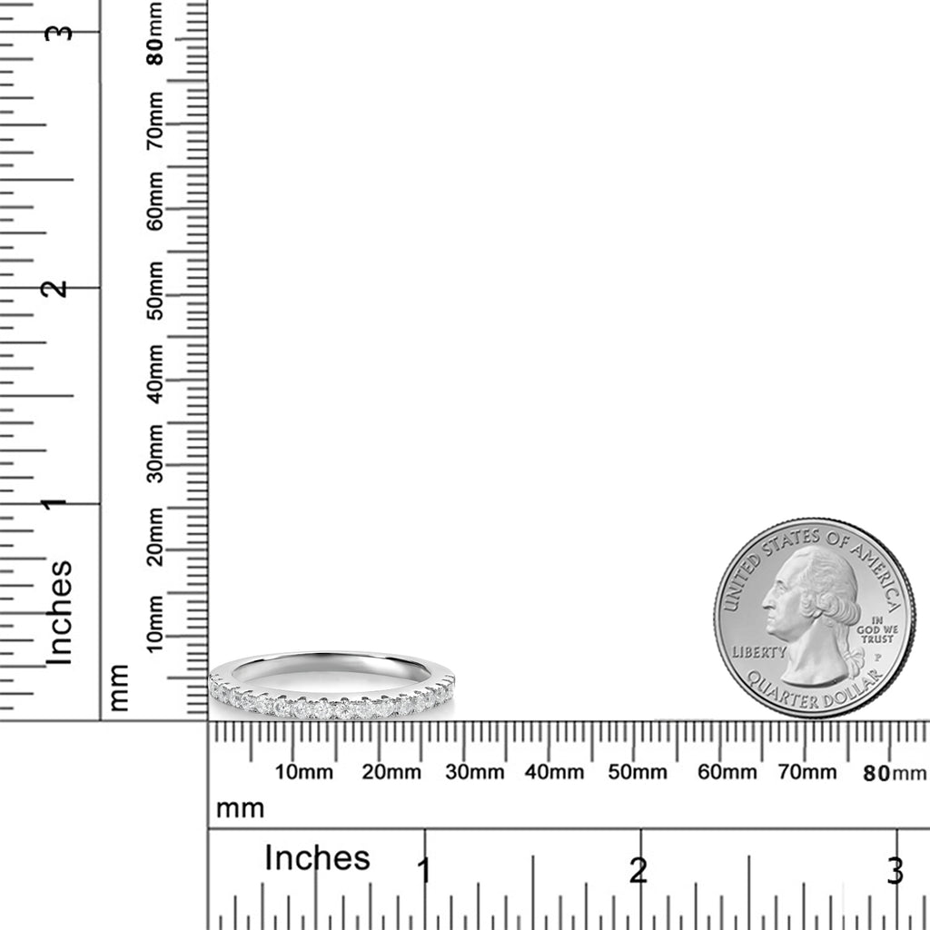 Exquisite White Created Moissanites - This elegant half eternity ring is adorned with sparkling white created moissanites, totaling 0.30 carats. Each moissanite is carefully selected to ensure G-H color quality, providing the brilliance and clarity that rival natural diamonds at a fraction of the cost.