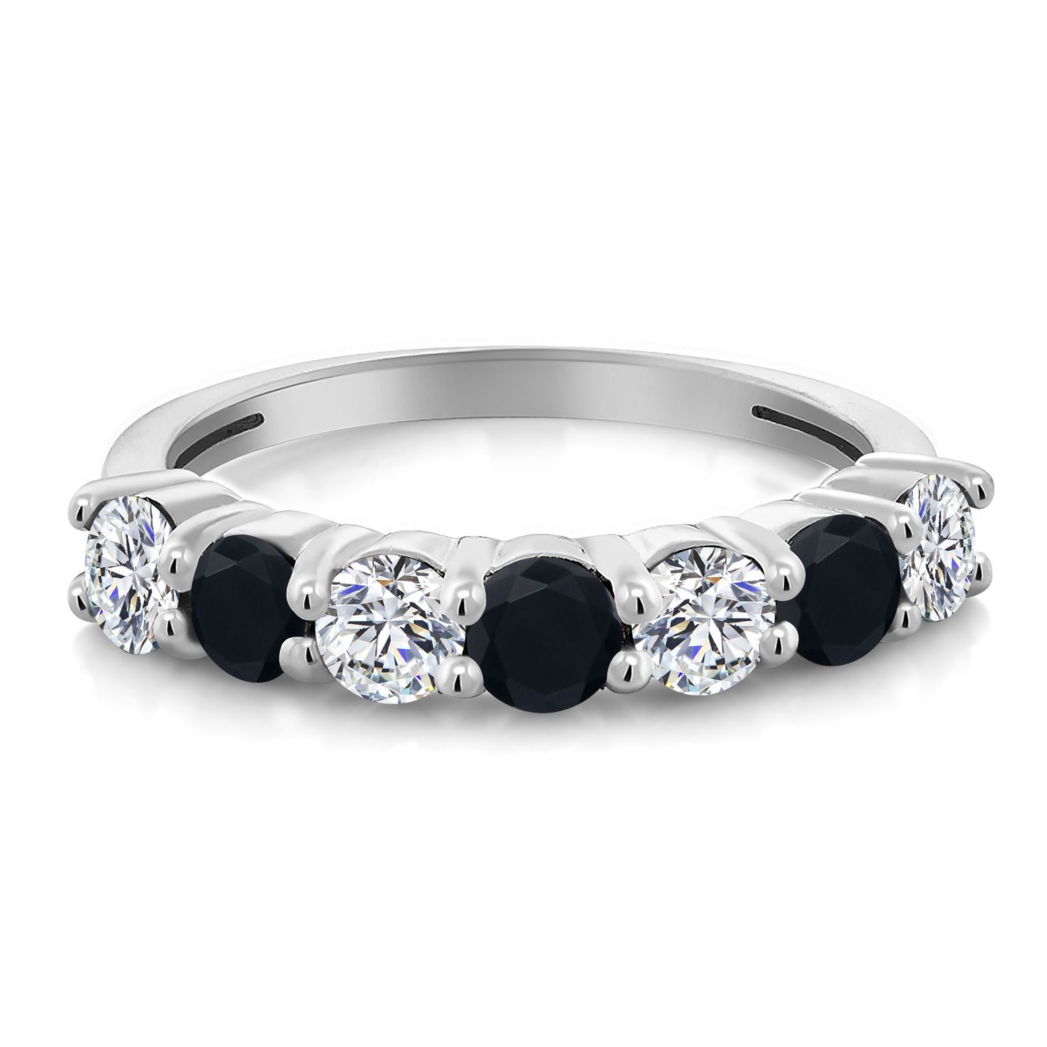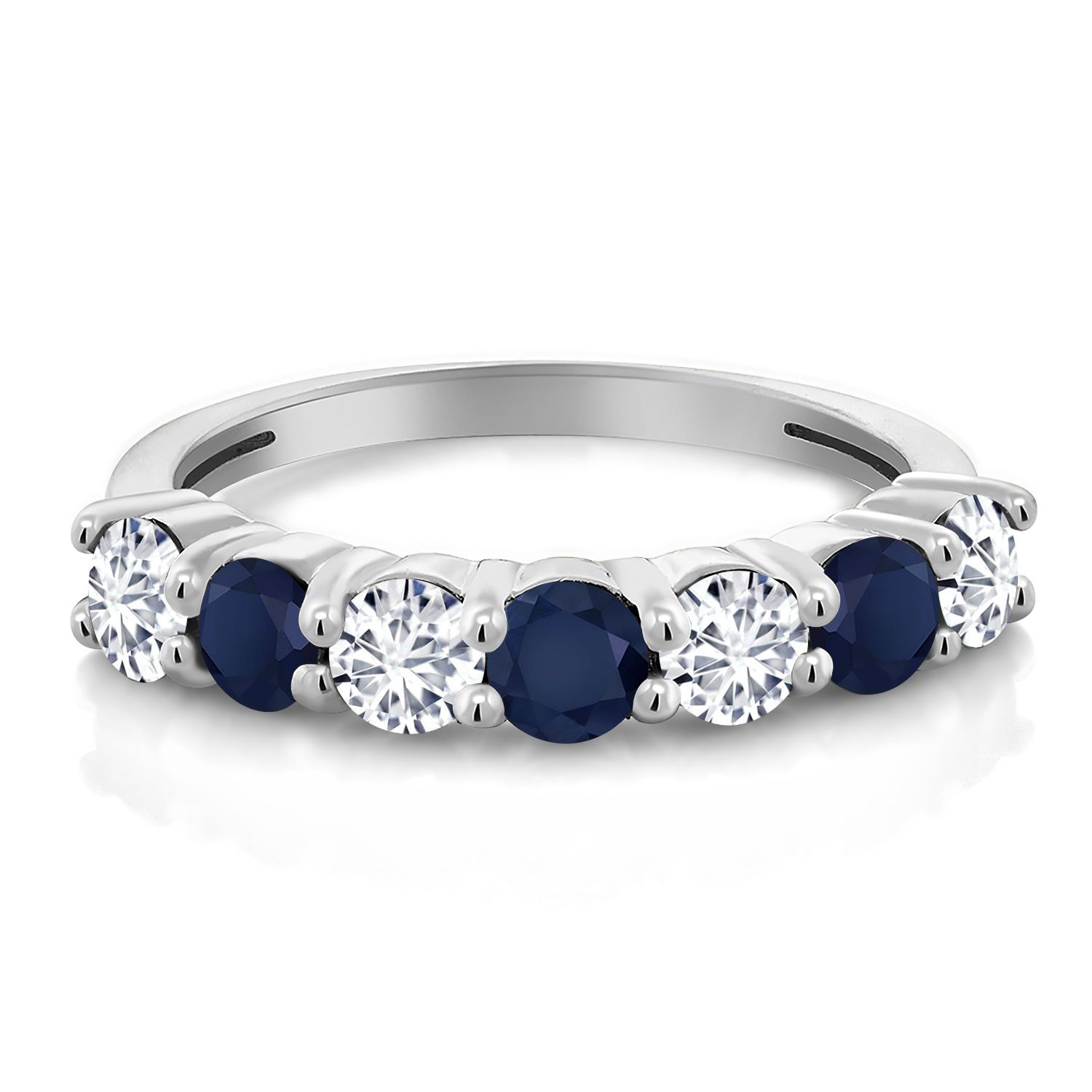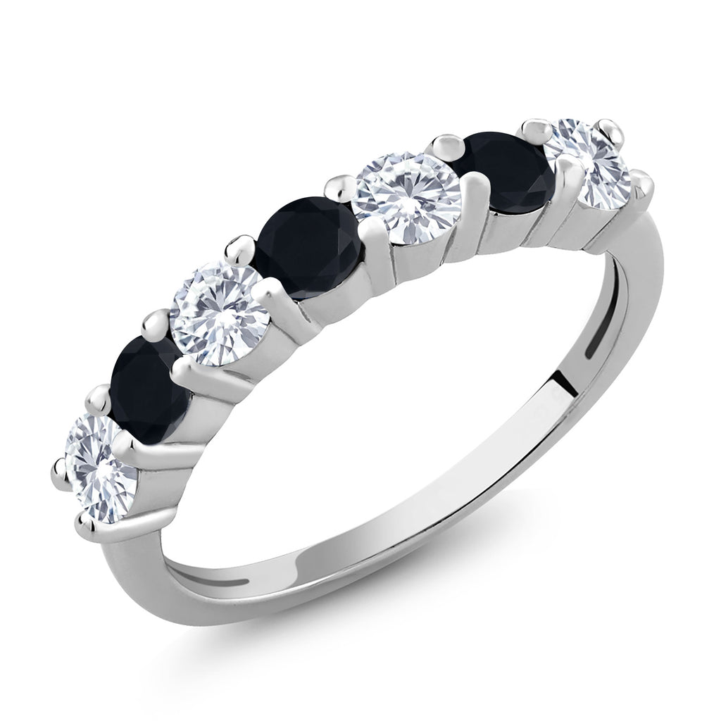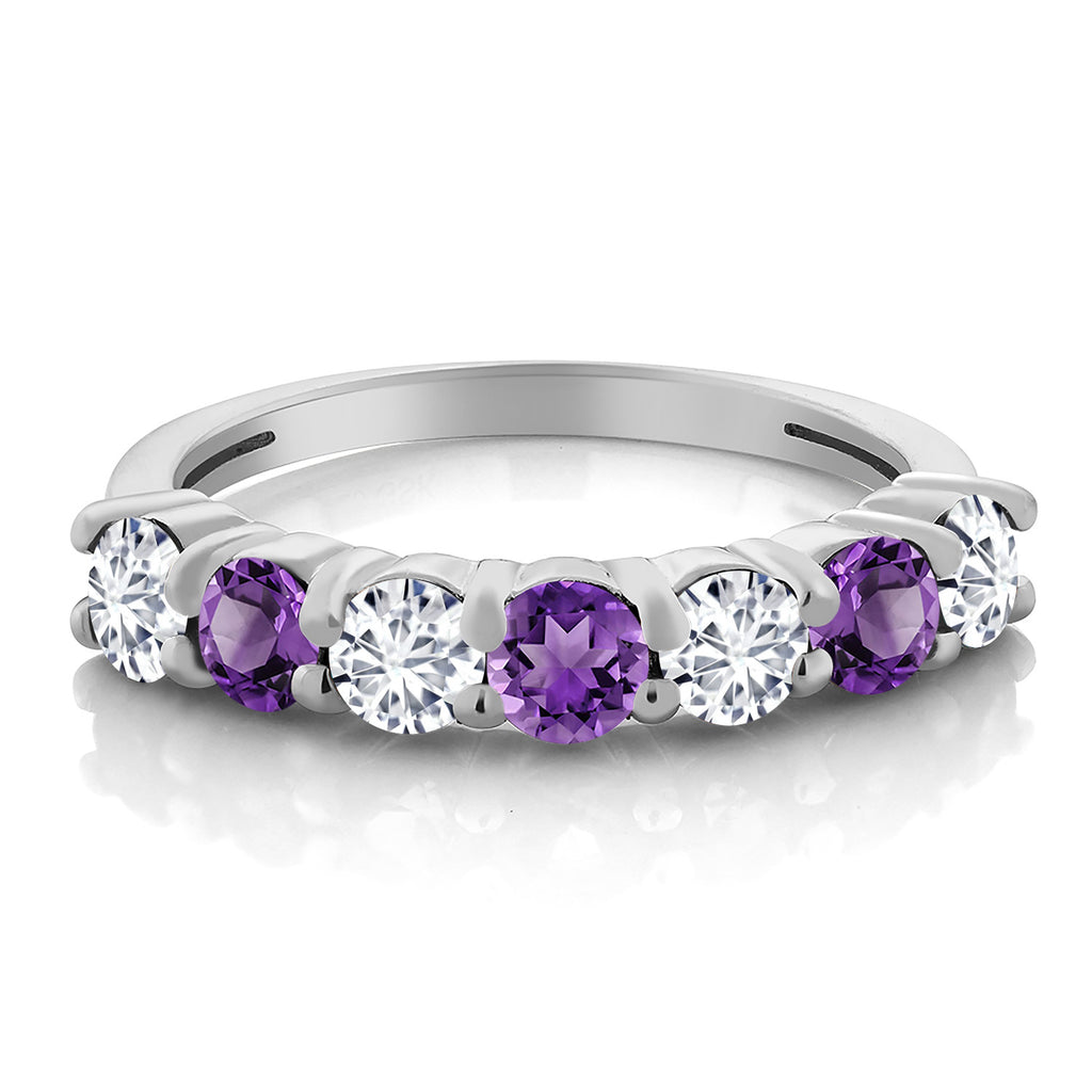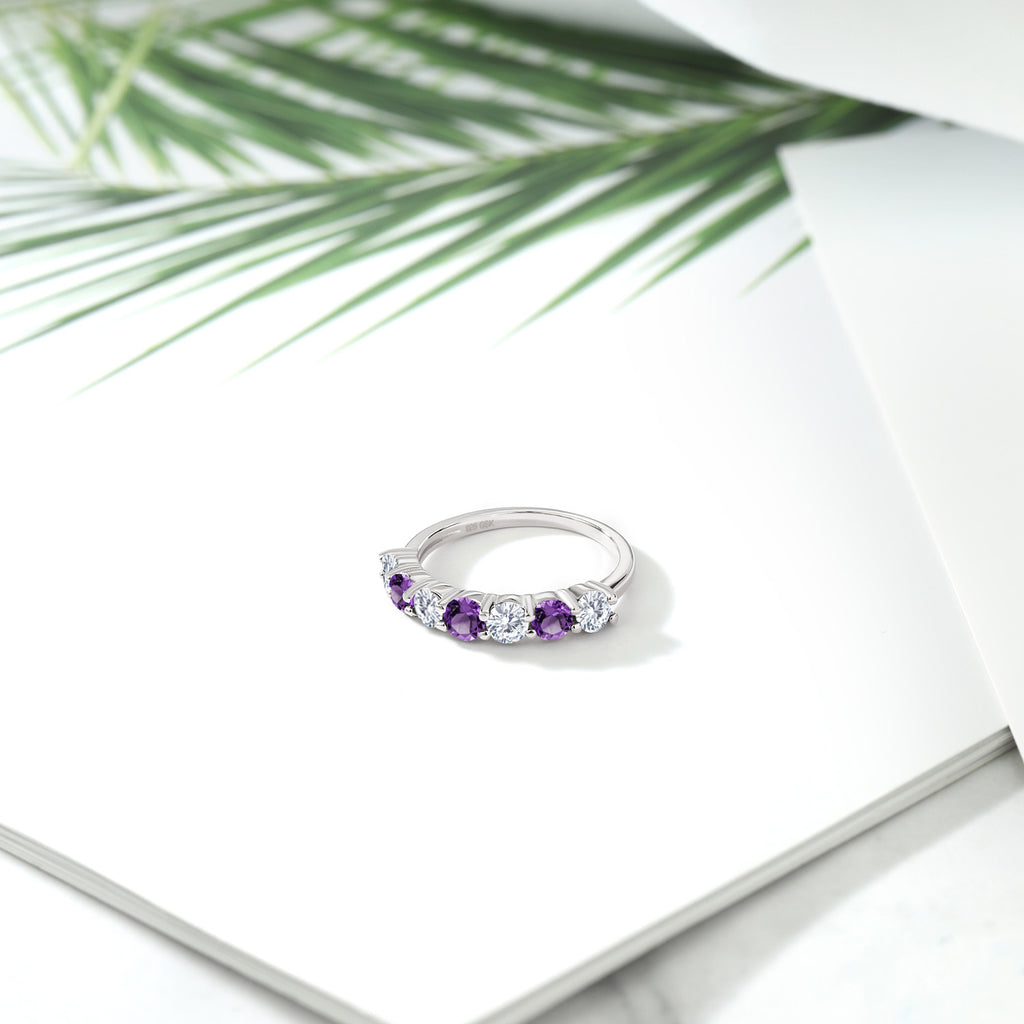 925 Sterling Silver White Lab Grown Diamond and Gemstone Birthstone Wedding Band Engagement Anniversary Ring | Round 3.5MM | 7 Stone Promise Ring For Women