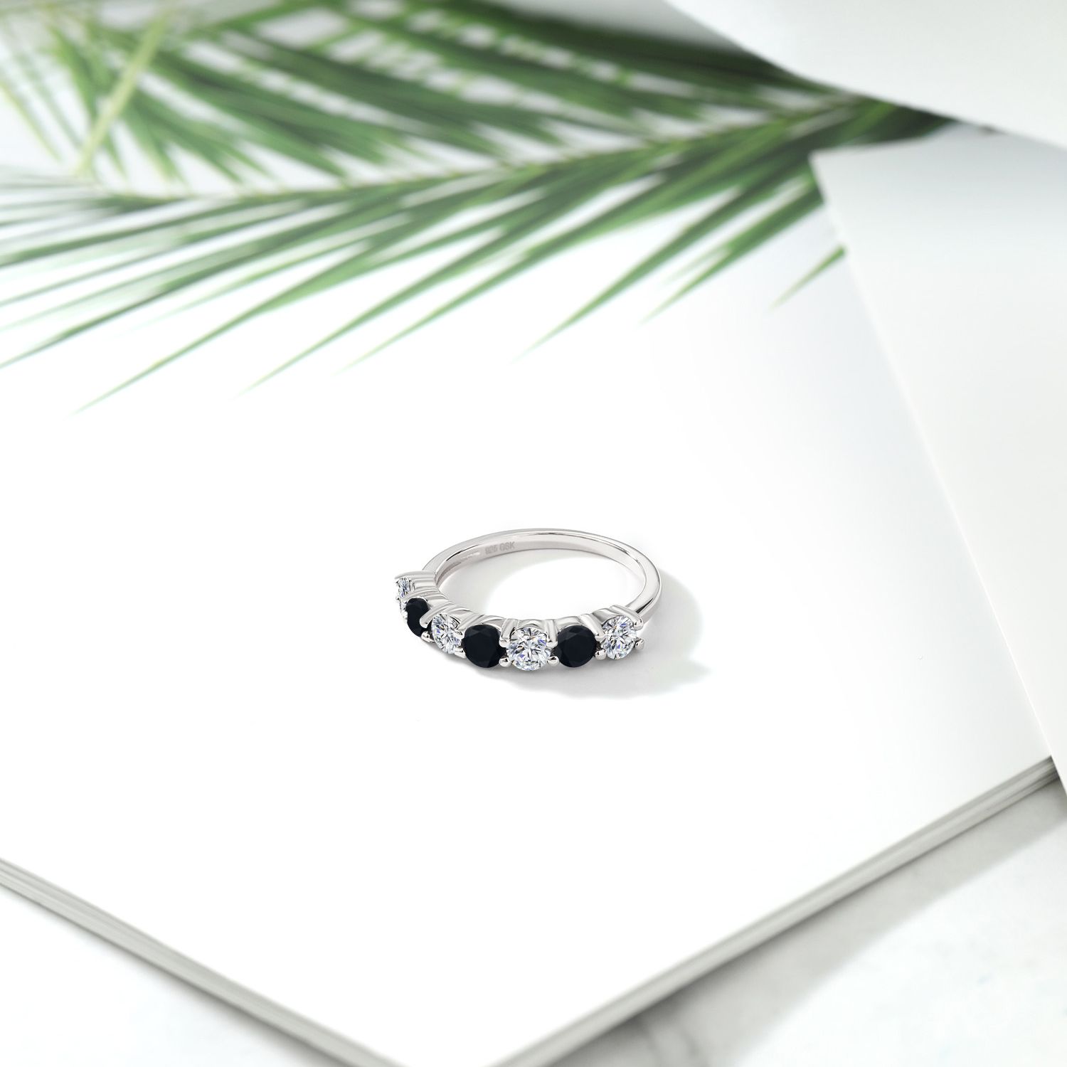 ARTISTIC DESIGN AND PRECISION: The alternating gemstone and diamond pattern reflects meticulous craftsmanship and attention to detail. Each stone is securely set to ensure longevity and durability, making this ring perfect for everyday wear. The seamless integration of stones and metal creates a smooth, comfortable fit, allowing the ring to glide effortlessly onto the finger, embodying grace and sophistication.