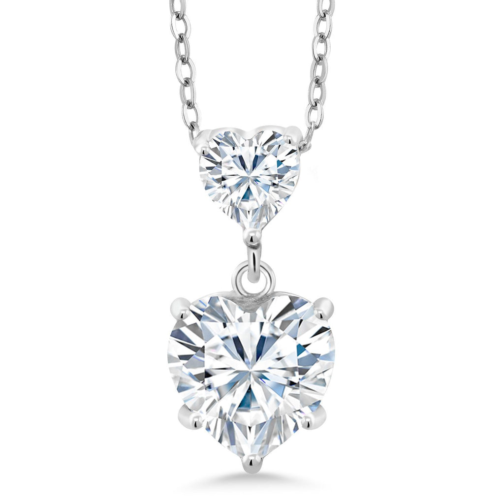 ROMANTIC DOUBLE HEART DESIGN: Express your love with this romantic pendant necklace featuring a double heart design. The necklace showcases two hearts, one larger heart measuring 8mm and one smaller heart measuring 5mm, both adorned with sparkling white moissanite gemstones. The hearts symbolize love and affection, making it a perfect gift for a loved one.