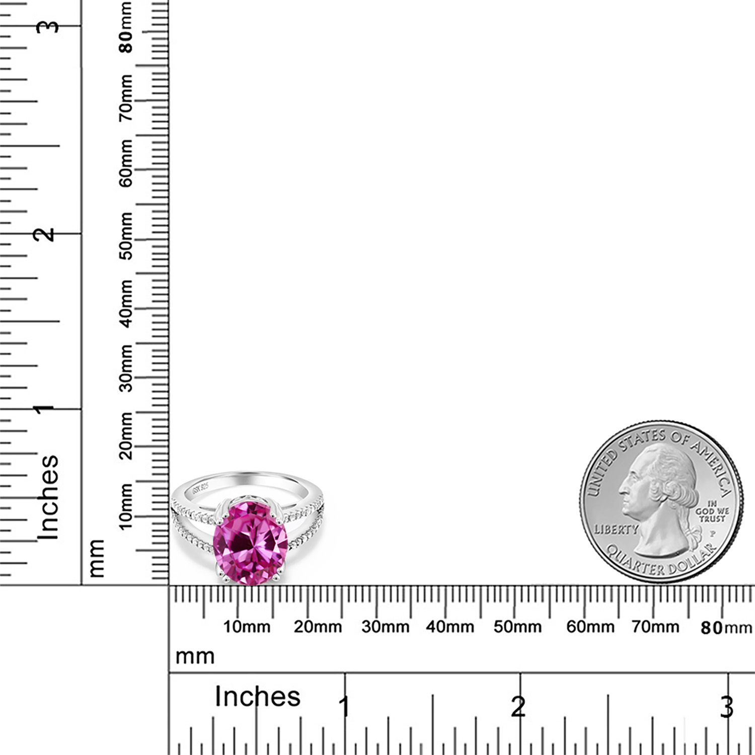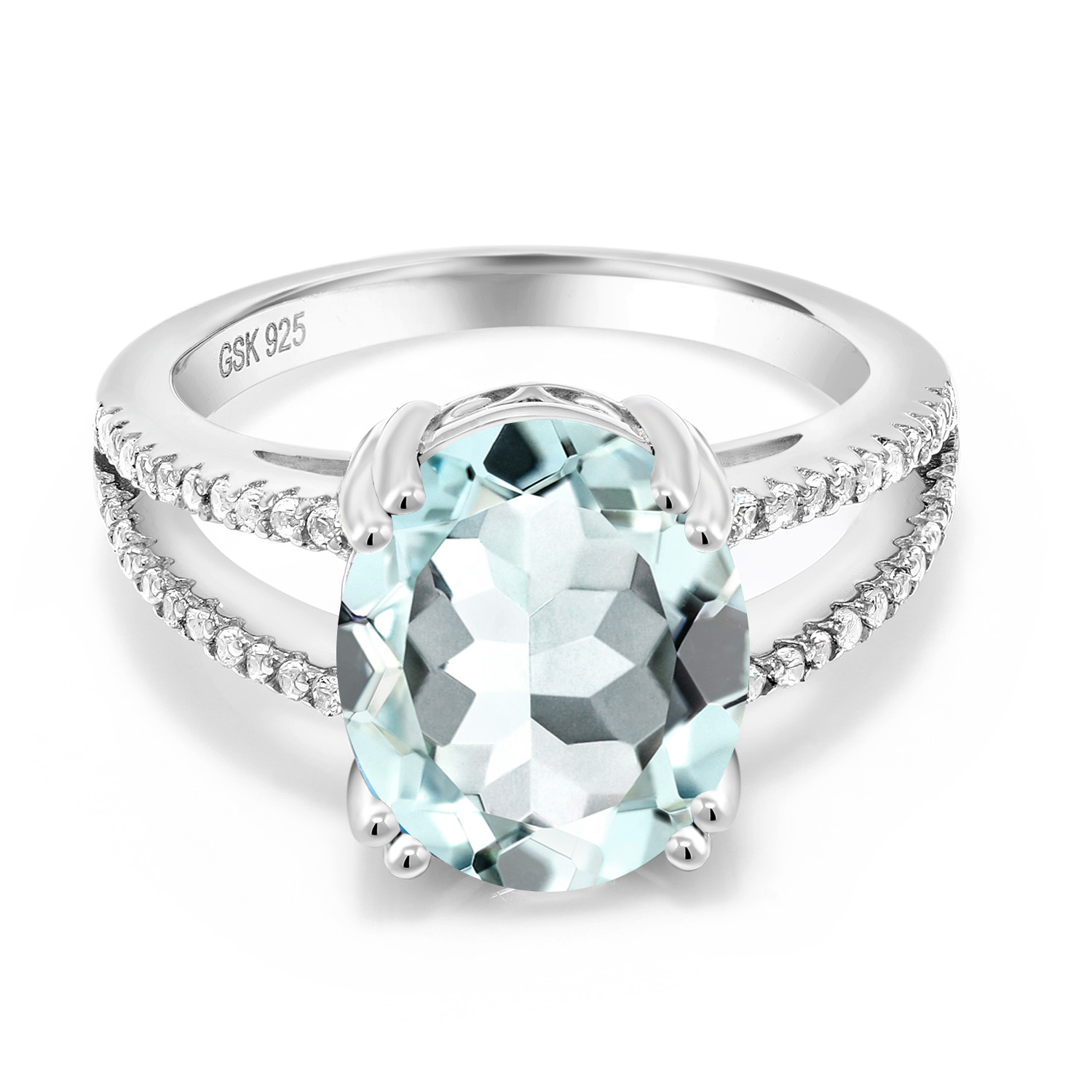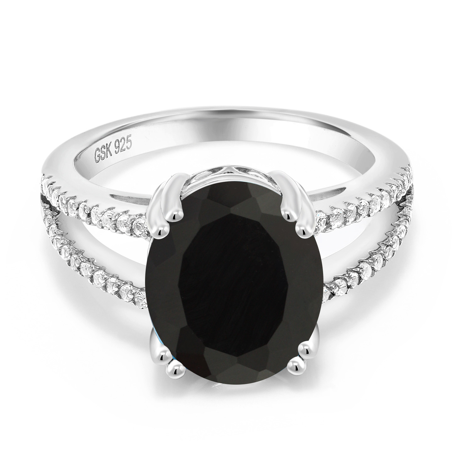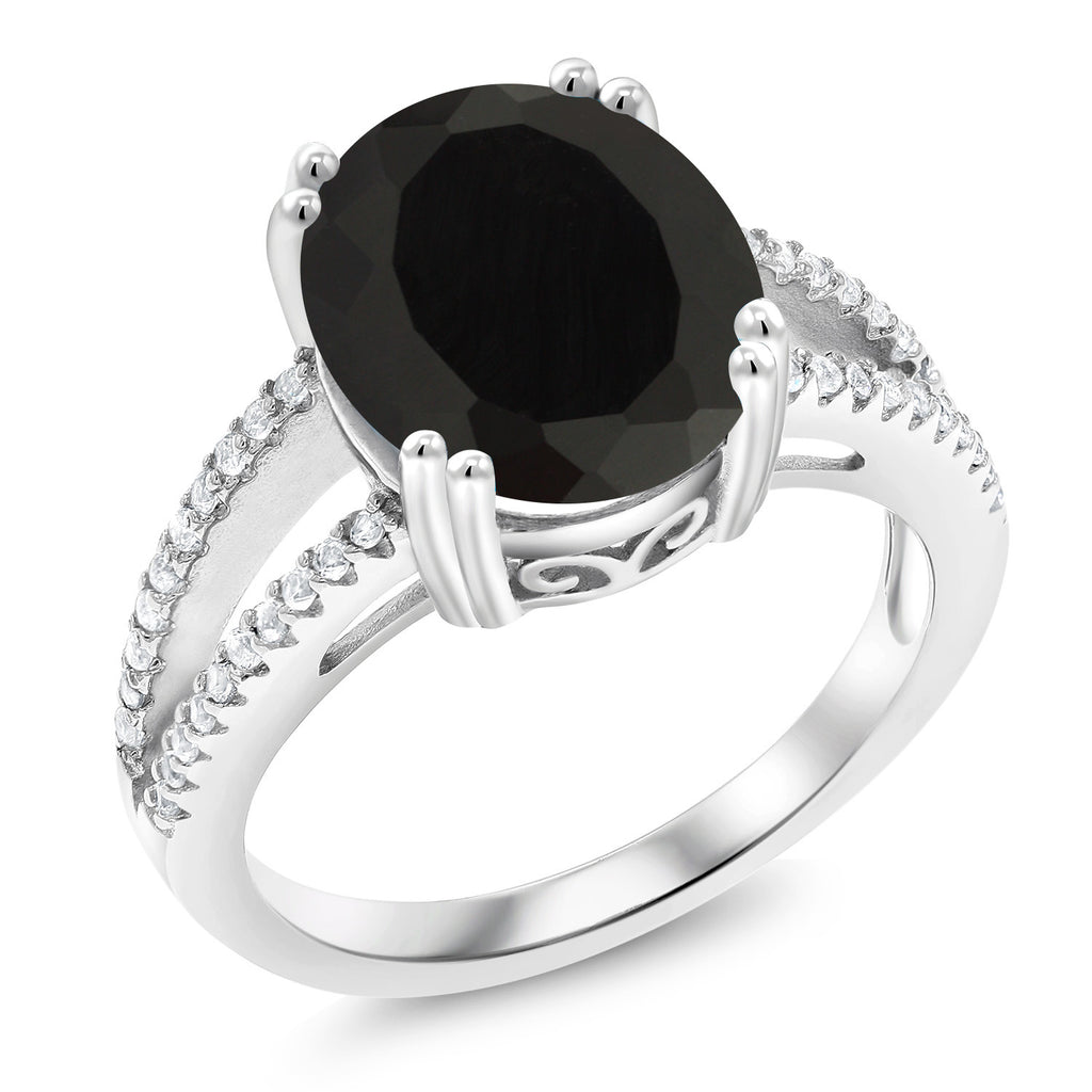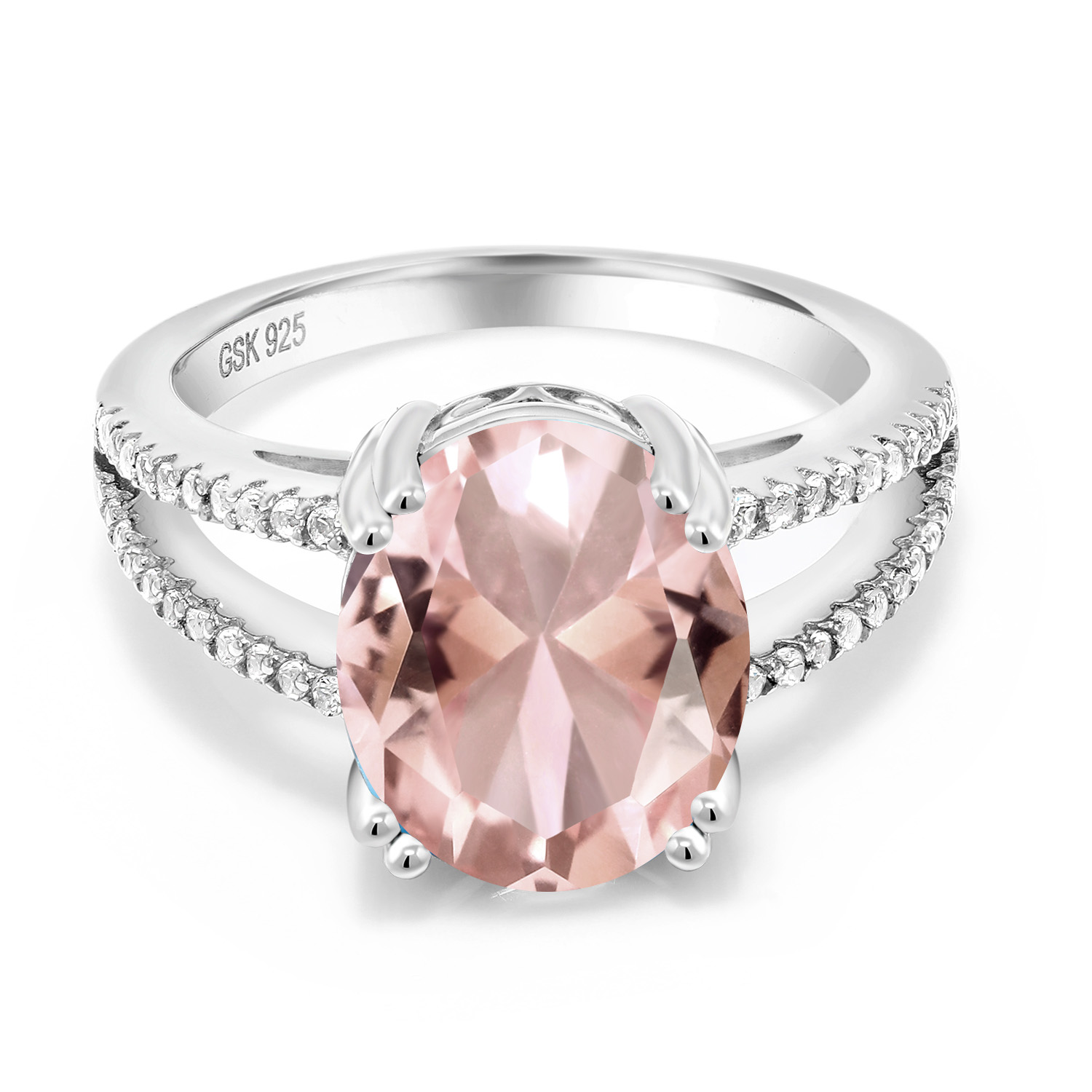 INTRICATE DESIGN ACCENT STONES: The ring features a split band adorned with round accent stones, enhancing its sophisticated charm. The elegant design creates a captivating interplay of light and shadow, perfectly complementing the central gemstone's brilliance.