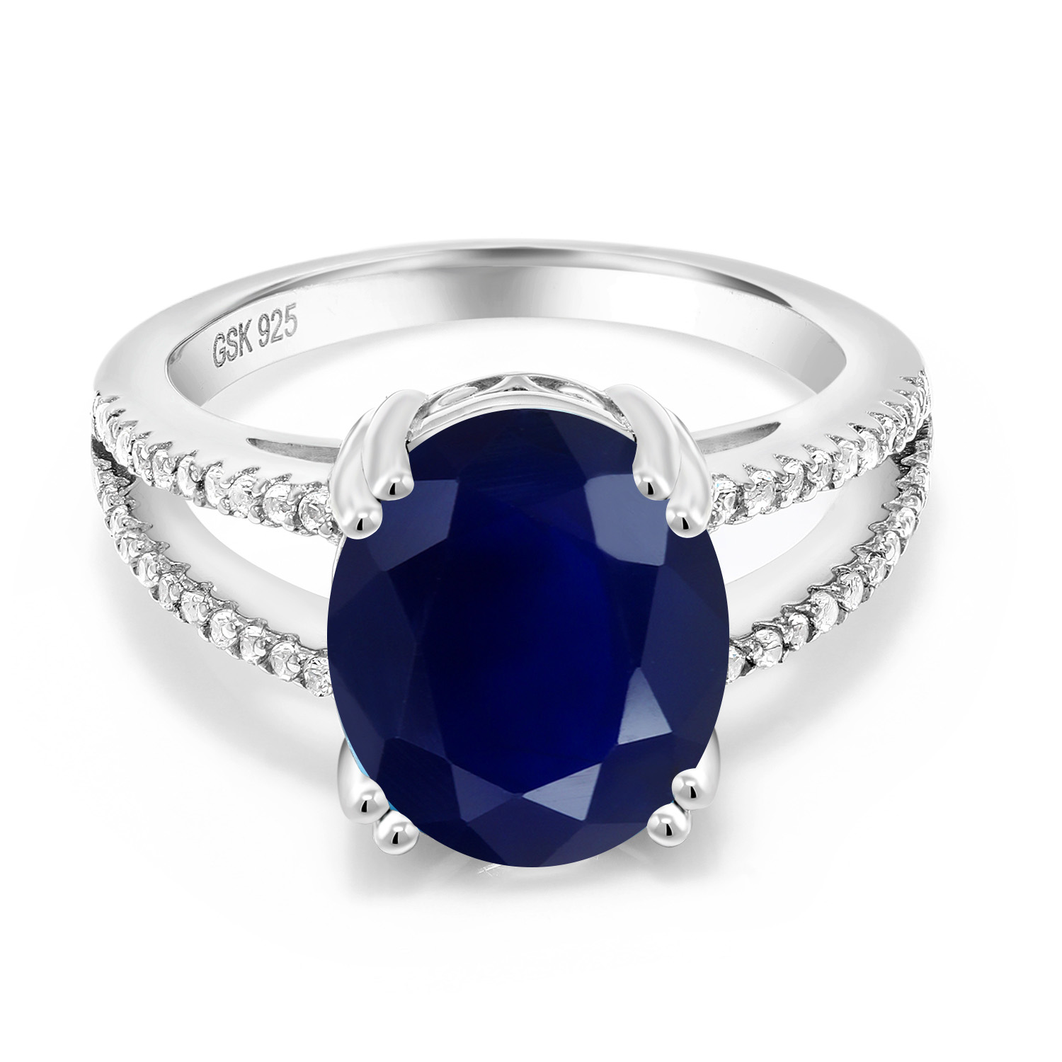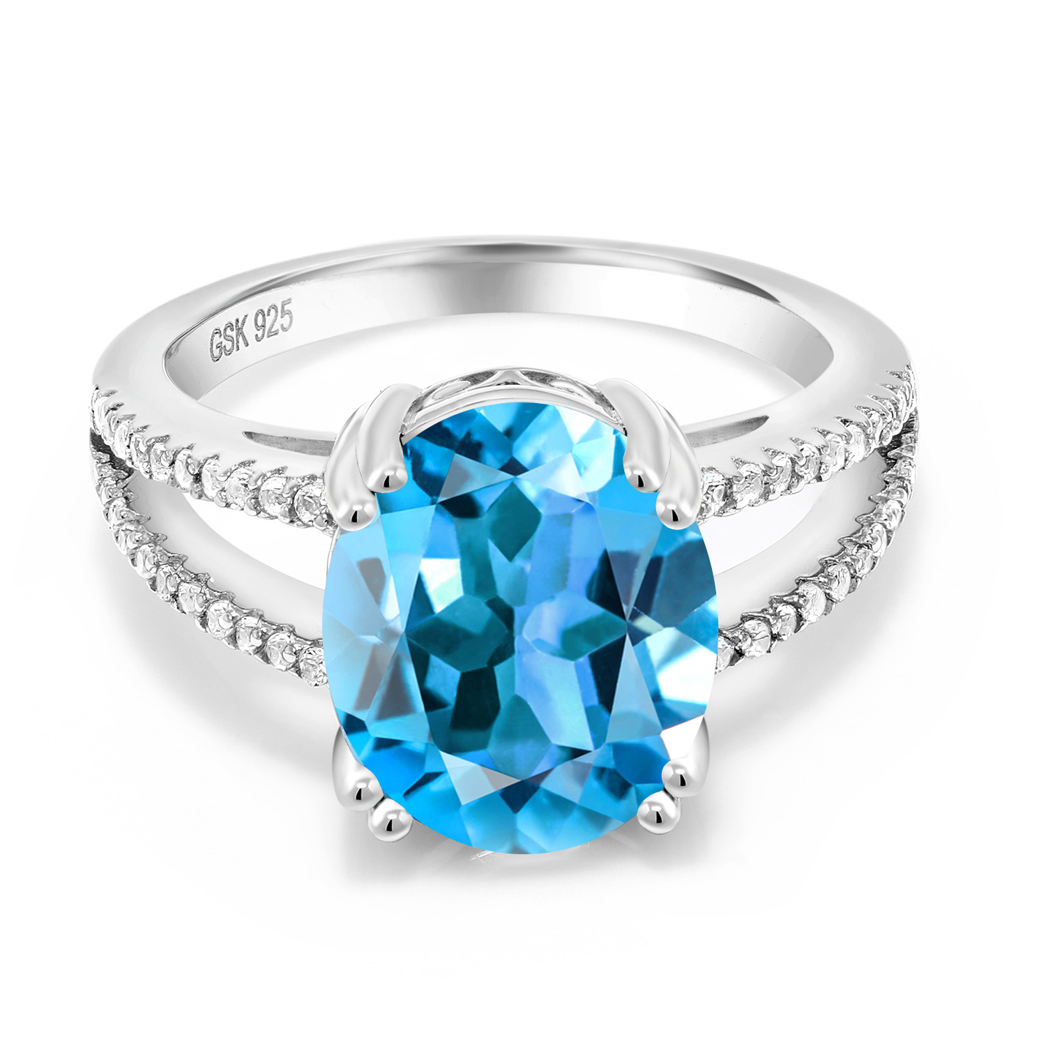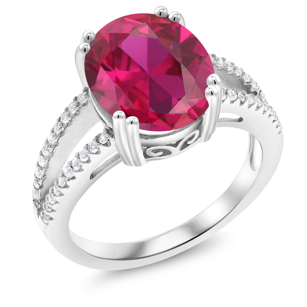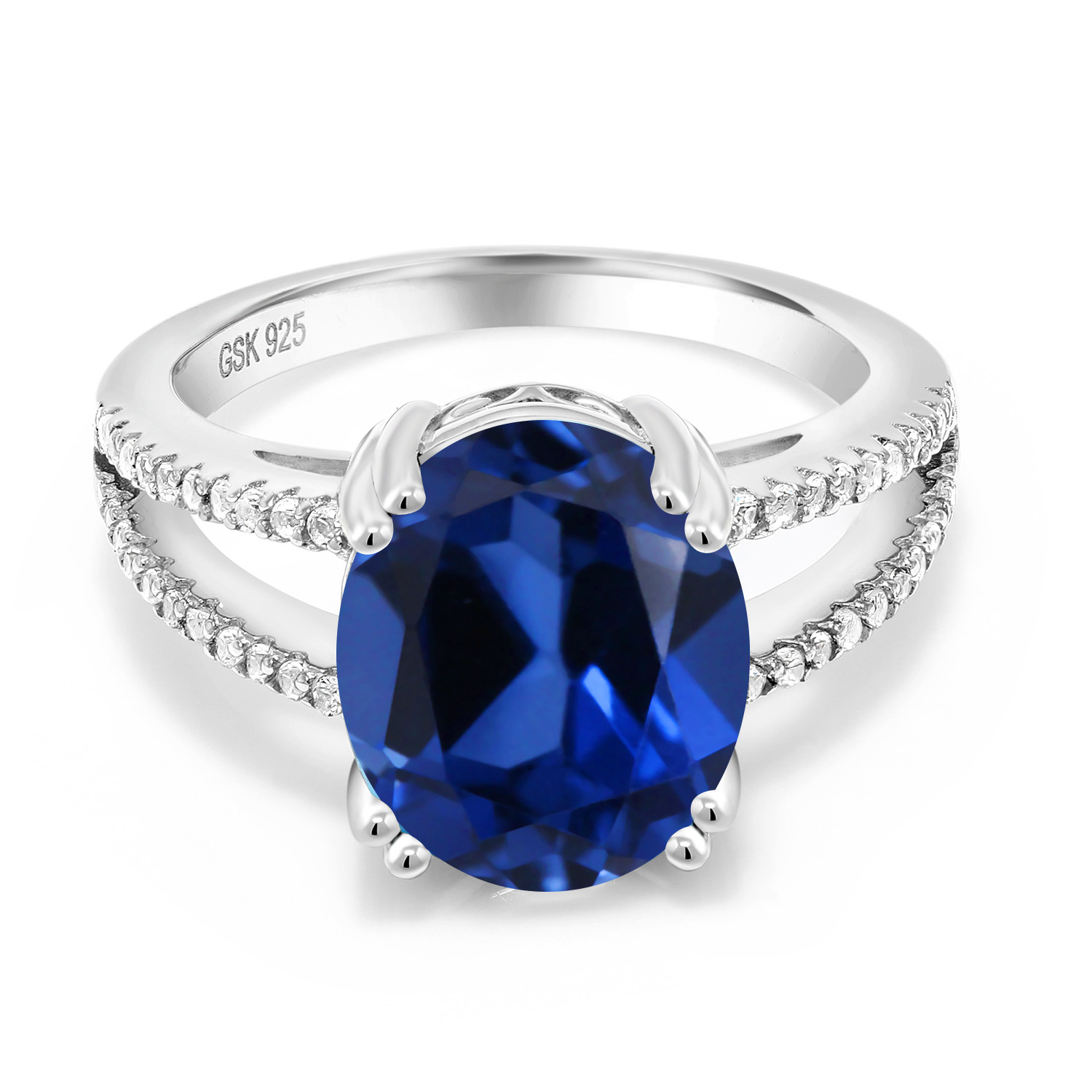 INTRICATE DESIGN ACCENT STONES: The ring features a split band adorned with round accent stones, enhancing its sophisticated charm. The elegant design creates a captivating interplay of light and shadow, perfectly complementing the central gemstone's brilliance.