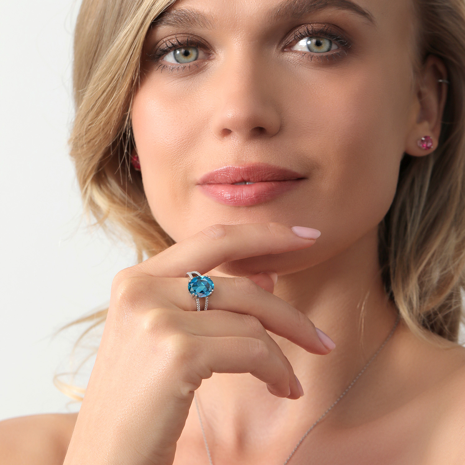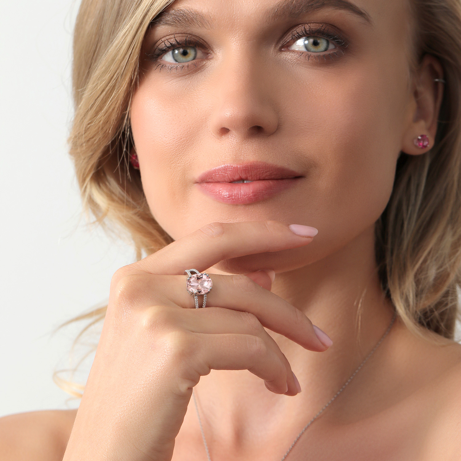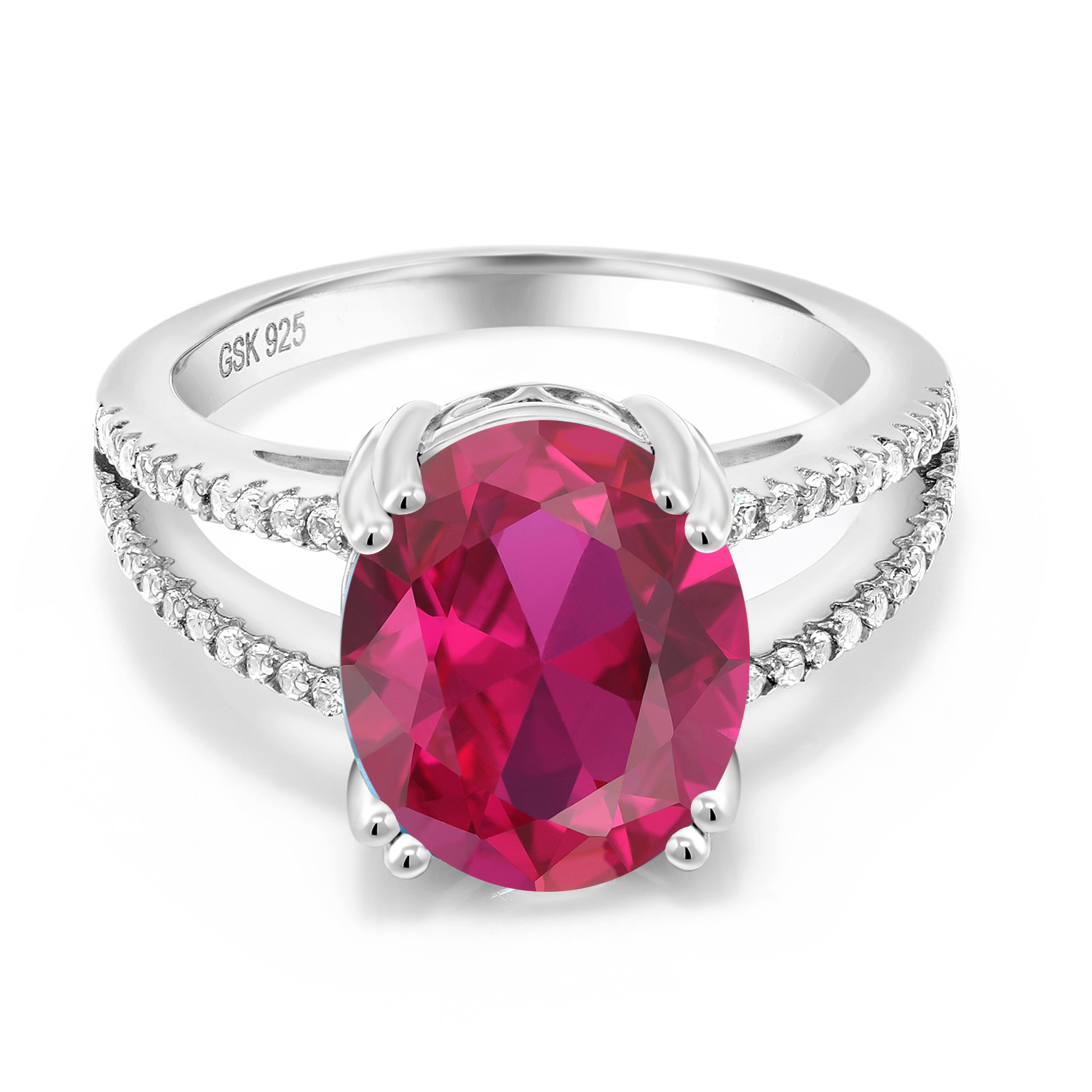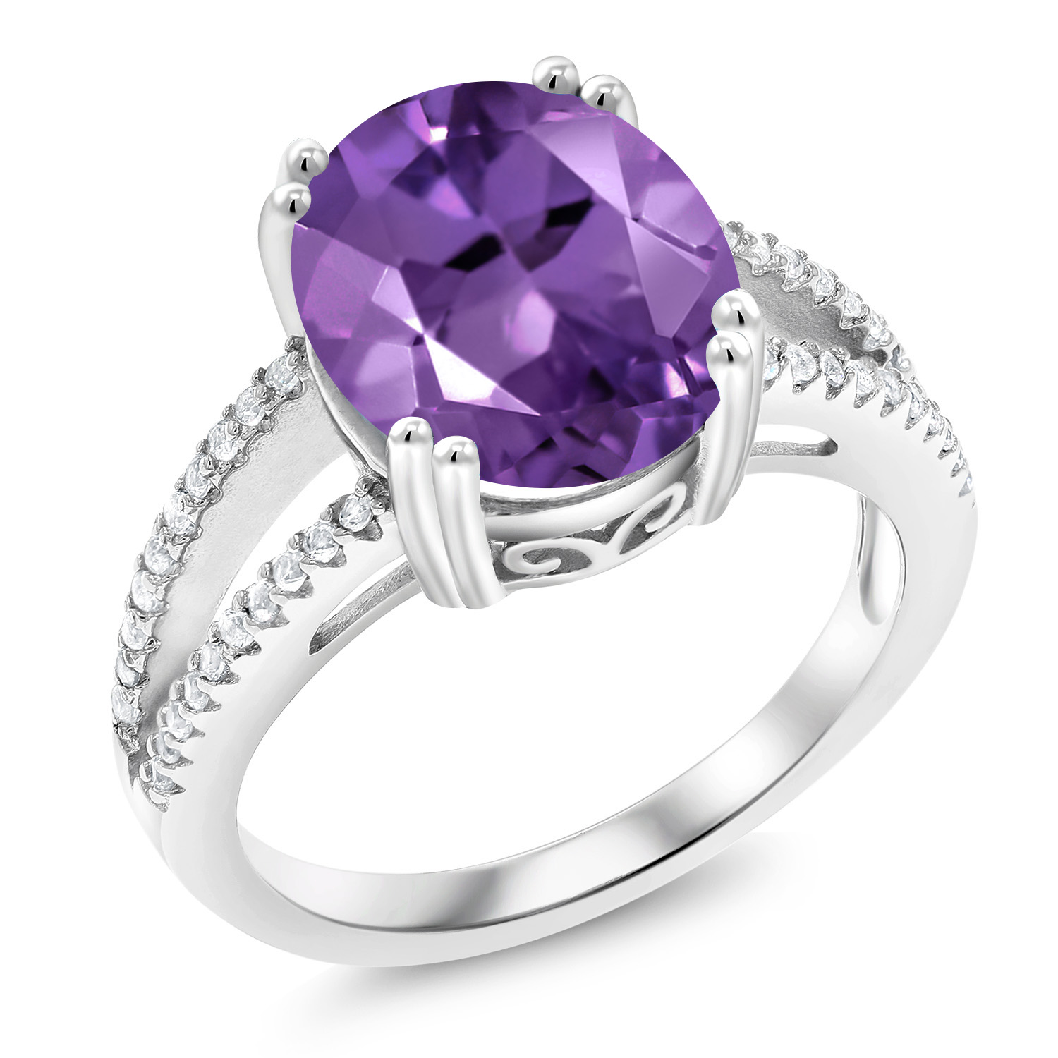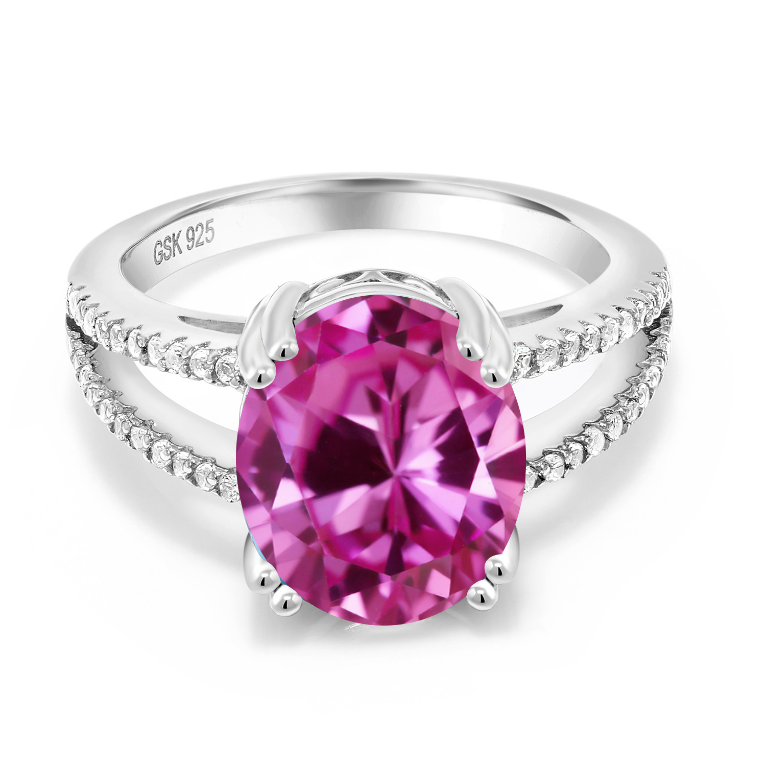 INTRICATE DESIGN ACCENT STONES: The ring features a split band adorned with round accent stones, enhancing its sophisticated charm. The elegant design creates a captivating interplay of light and shadow, perfectly complementing the central gemstone's brilliance.