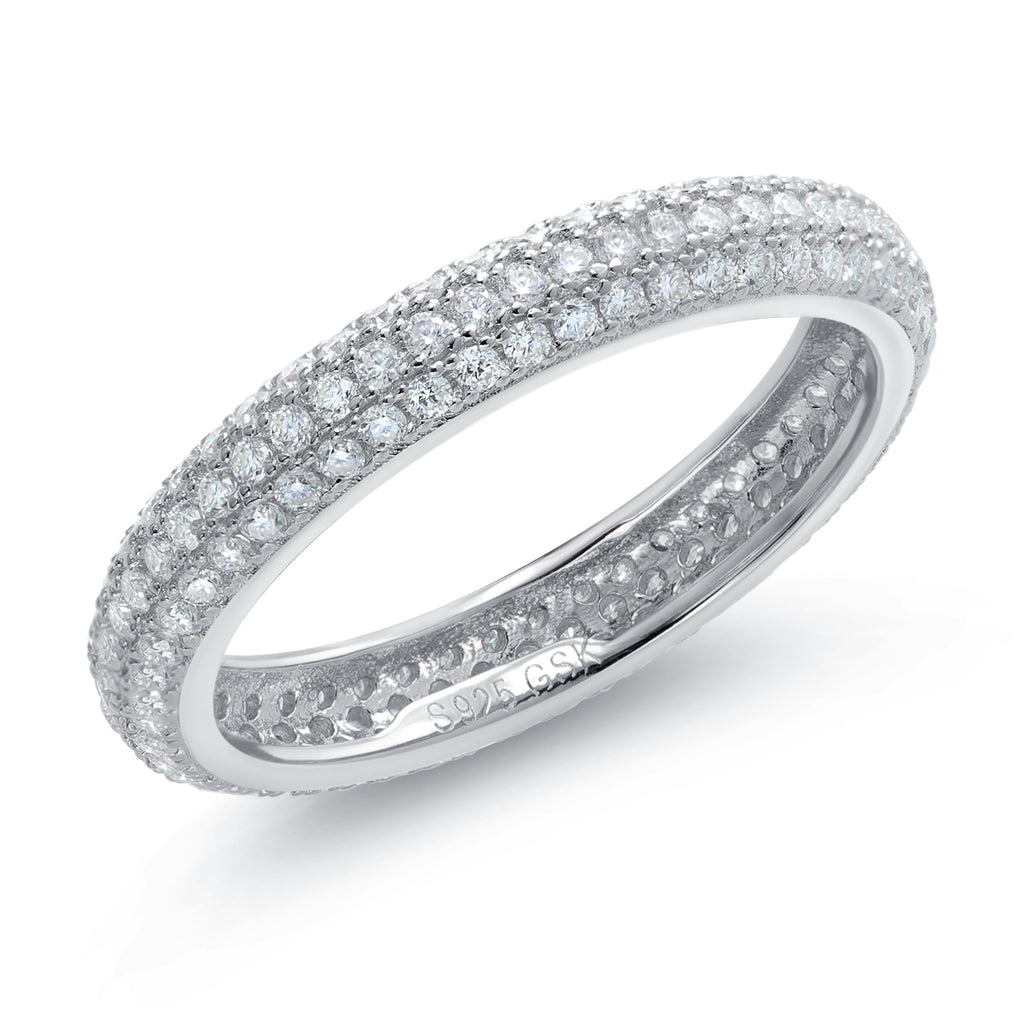 White Moissanite Ring For Women | 925 Sterling Silver | 3 Rows Micro Pave Wedding Stackable Eternity Band | 1.08 Cttw | Available In Size 5, 6, 7, 8, 9
