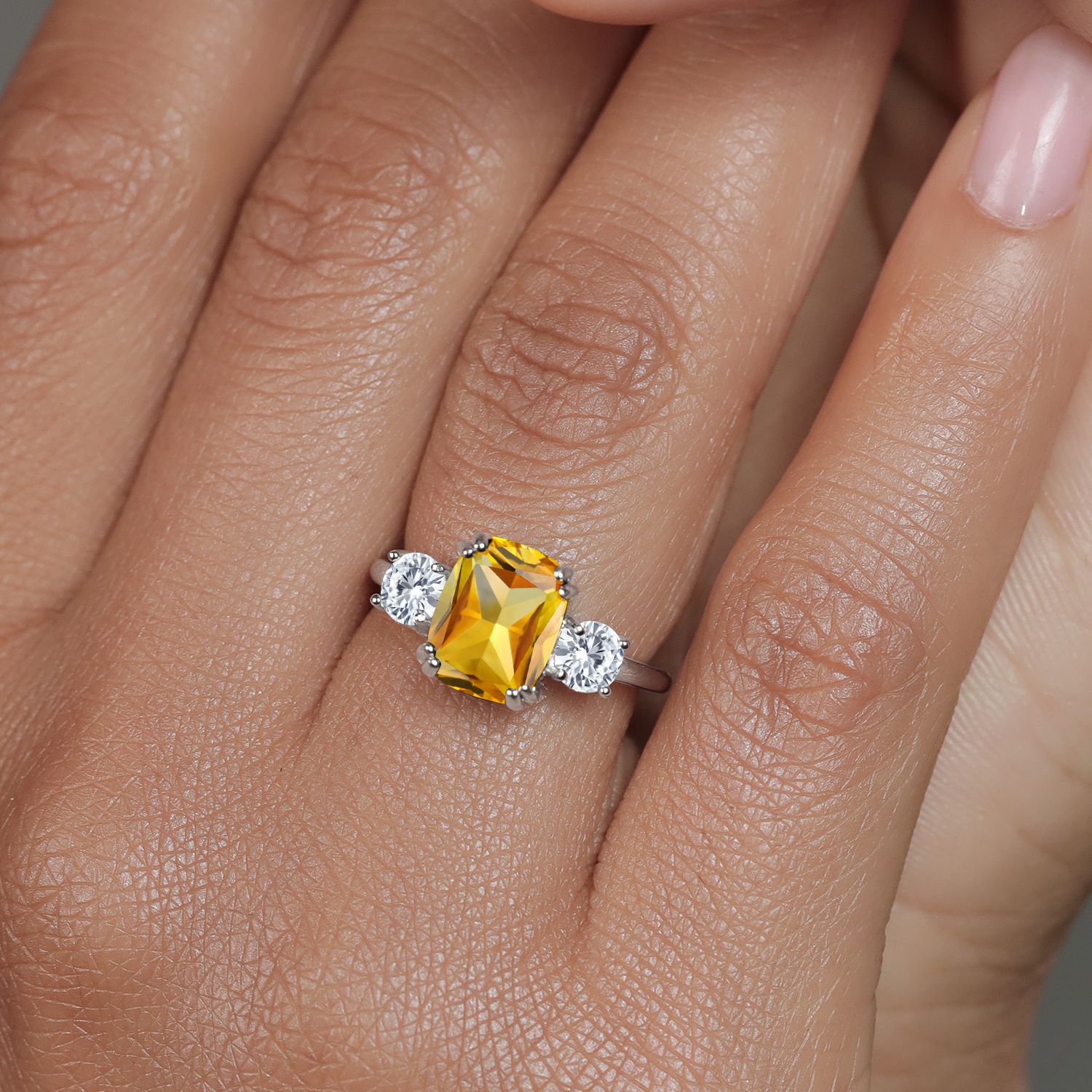 VERSATILE ELEGANCE: Whether it's a special occasion or a casual outing, this citrine and moissanite 3 stone ring effortlessly adds a touch of sophistication and glamour to your ensemble. It's suitable for any event.