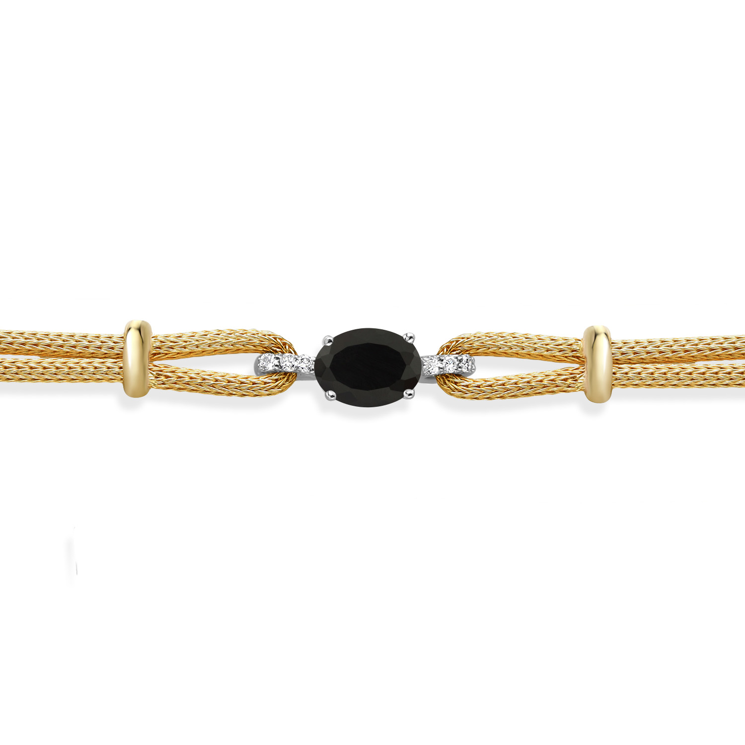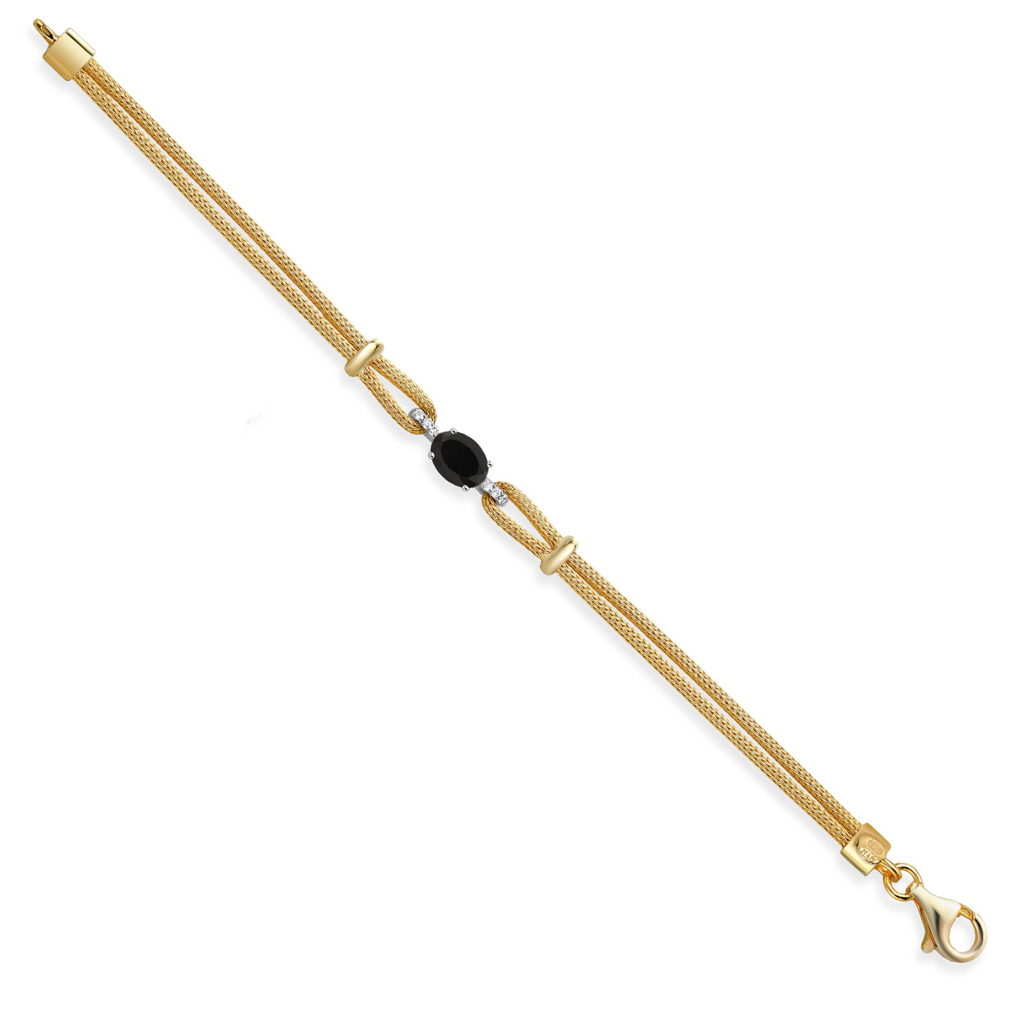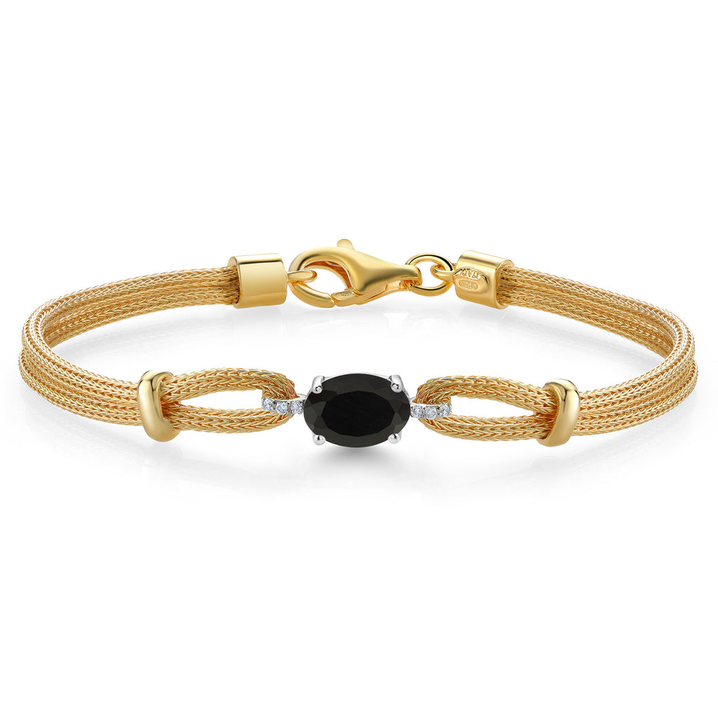 925 Two Tone Sterling Silver Black Onyx & White Lab Grown Diamond Bracelet For Women | 1.64 Cttw | Gemstone Birthstone | Oval 8X6MM | 6.5/7/7.5 Inches, Made In Italy