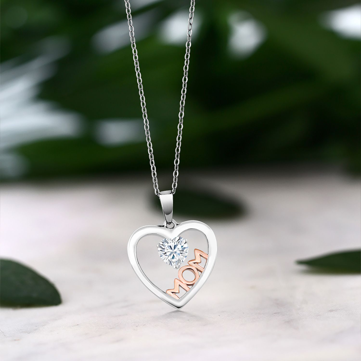 SYMBOL OF LOVE AND MOTHERHOOD: This exquisite necklace features a two-tone sterling silver heart adorned with a dazzling gemstone, symbolizing the eternal maternal bond, making it an ideal gift for moms on any occasion.