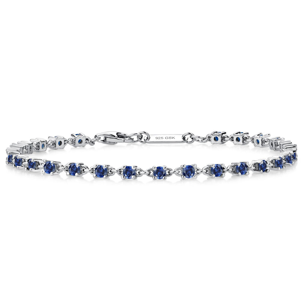 ELEGANT BLUE SAPPHIRE TENNIS BRACELET: Adorn your wrist with this exquisite tennis bracelet featuring 1.76 Cttw of stunning blue created sapphires. The 2.5MM round gemstones are set in high-quality 925 sterling silver or with an 18k gold plated finish, creating a timeless and sophisticated piece that adds a touch of elegance to any ensemble.
