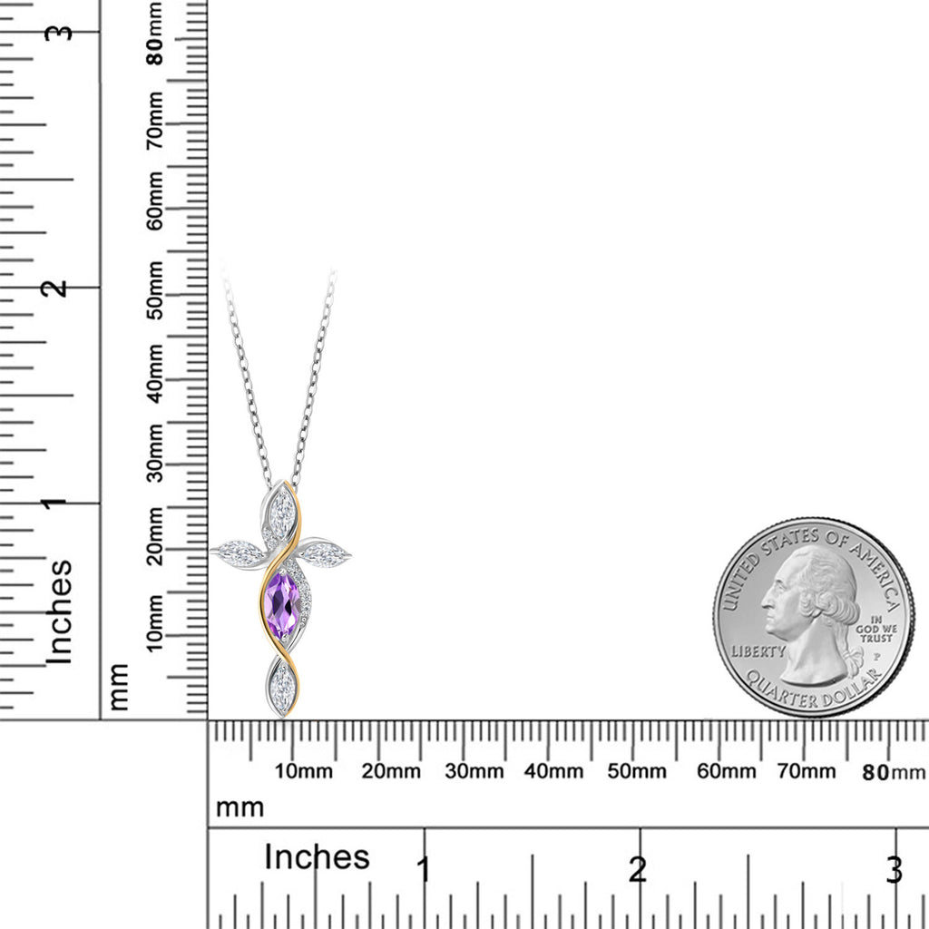 Cross Necklace For Women In 925 Silver and 10K Yellow Gold with Purple Amethyst and White Moissanite | 1.22 Cttw | Jesus Christian Religious Crucifix | Marquise 8X4MM | With 18 Inch Chain