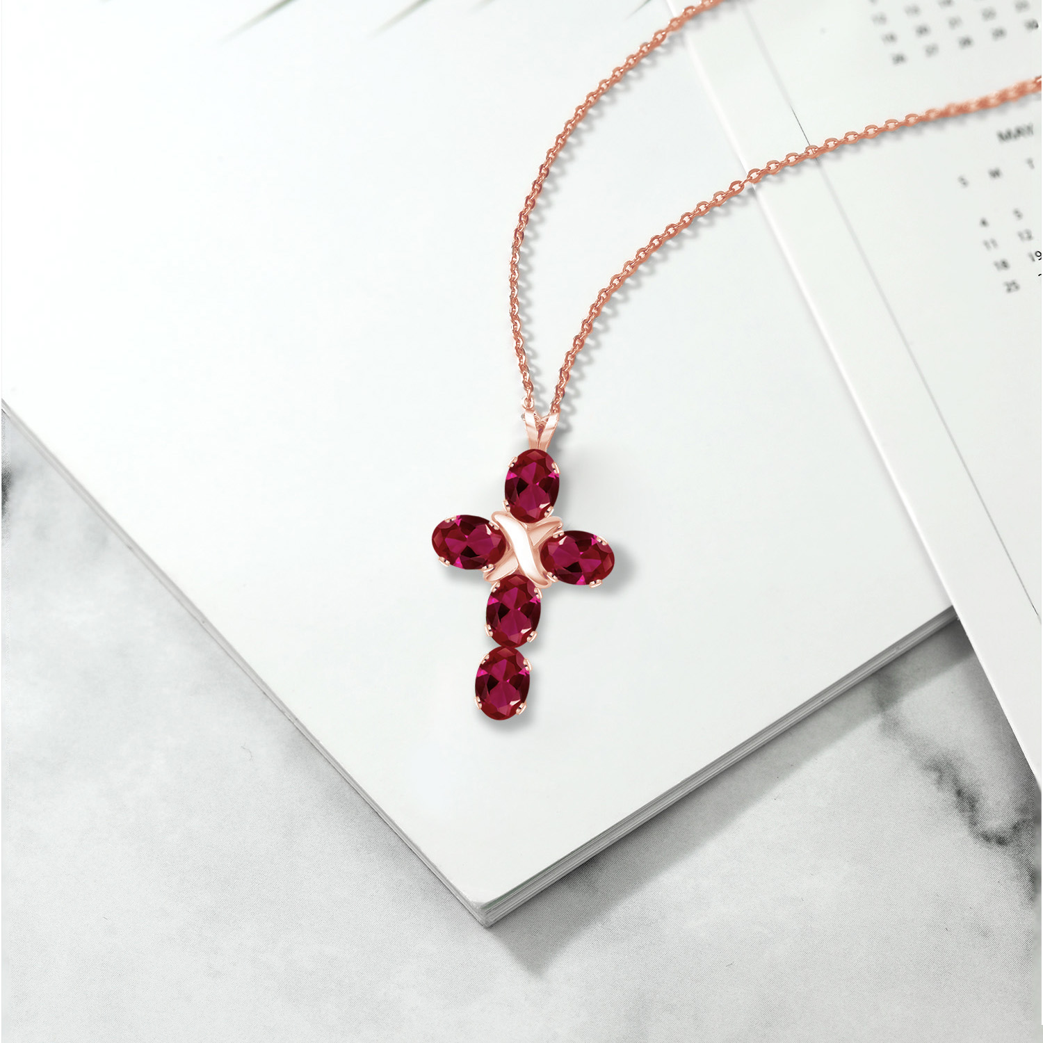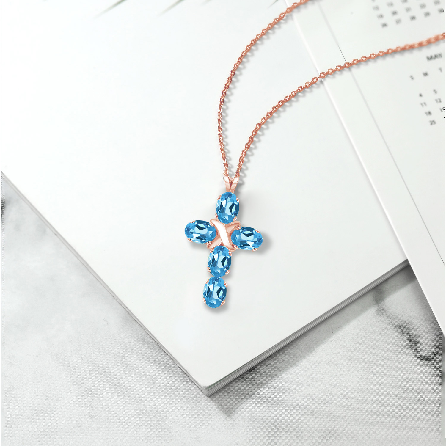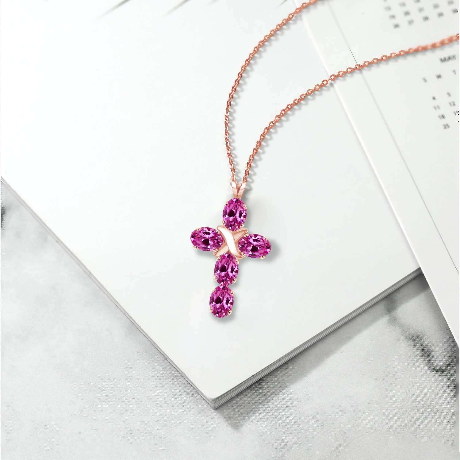 ELEGANT AND SPIRITUAL: This stunning cross necklace features a beautifully crafted 18K rose gold plated silver pendant with a 6X4MM oval gemstone birthstone, symbolizing both faith and elegance, making it a meaningful addition to any jewelry collection.