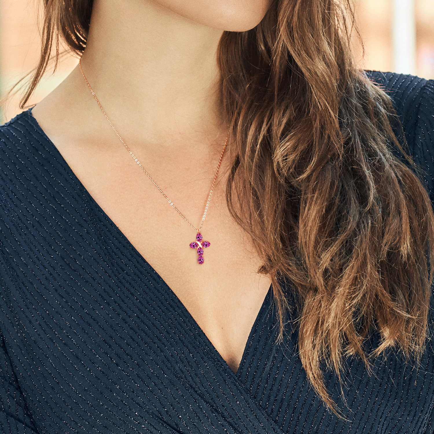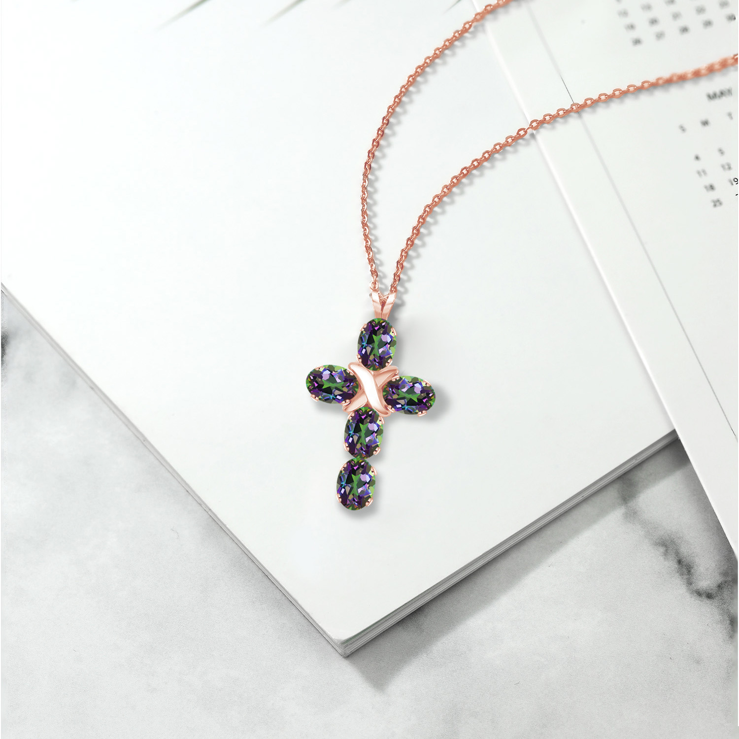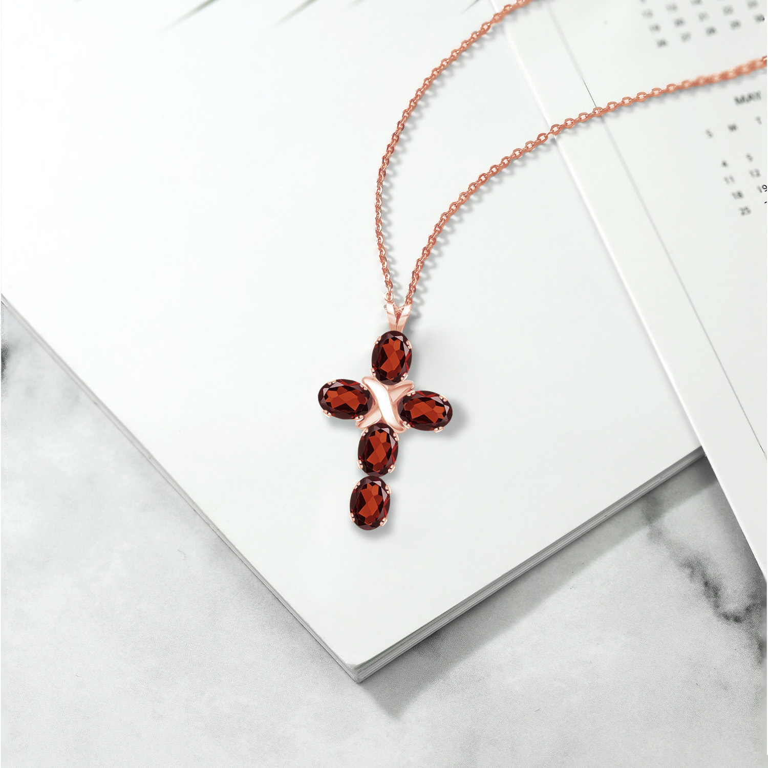 ELEGANT AND SPIRITUAL: This stunning cross necklace features a beautifully crafted 18K rose gold plated silver pendant with a 6X4MM oval gemstone birthstone, symbolizing both faith and elegance, making it a meaningful addition to any jewelry collection.