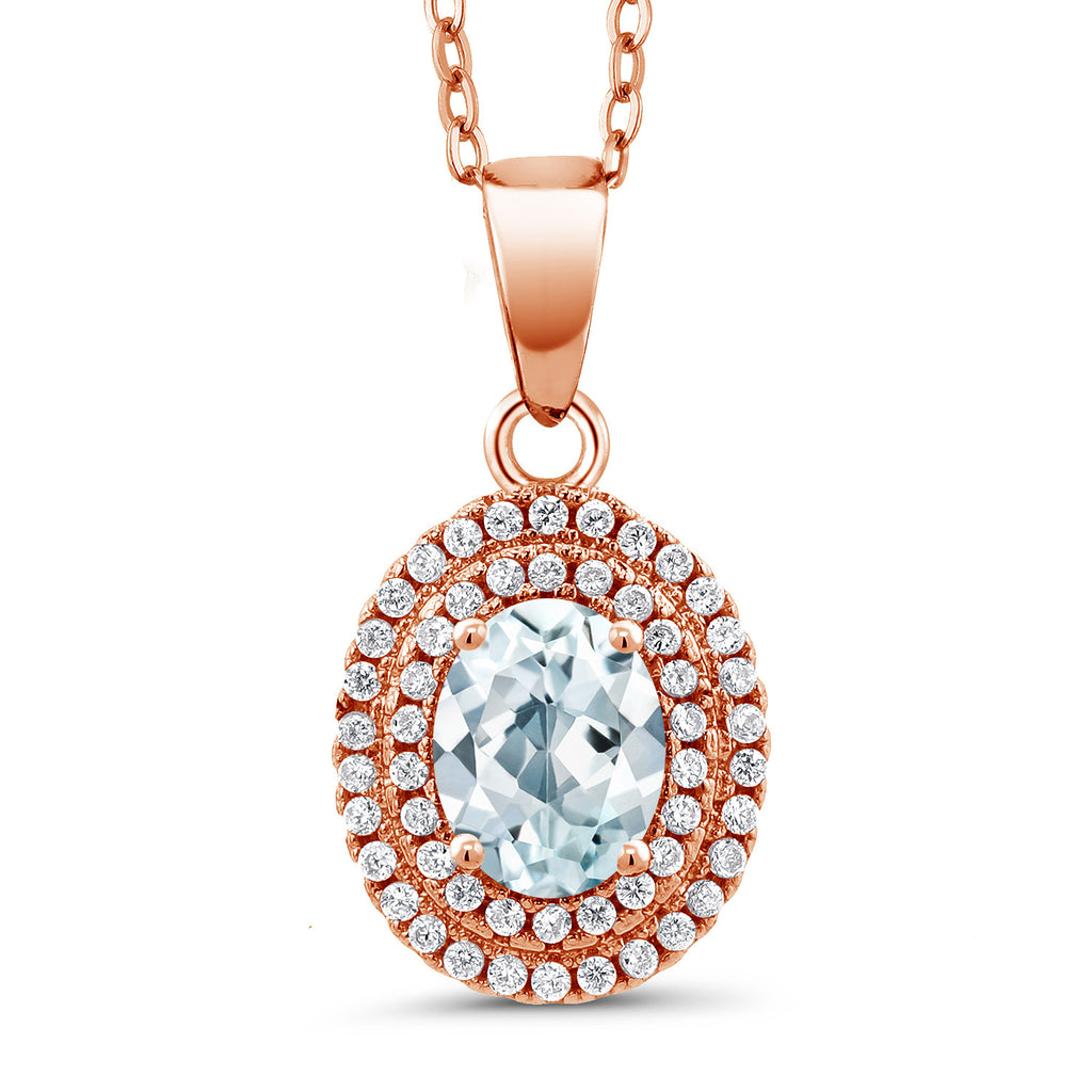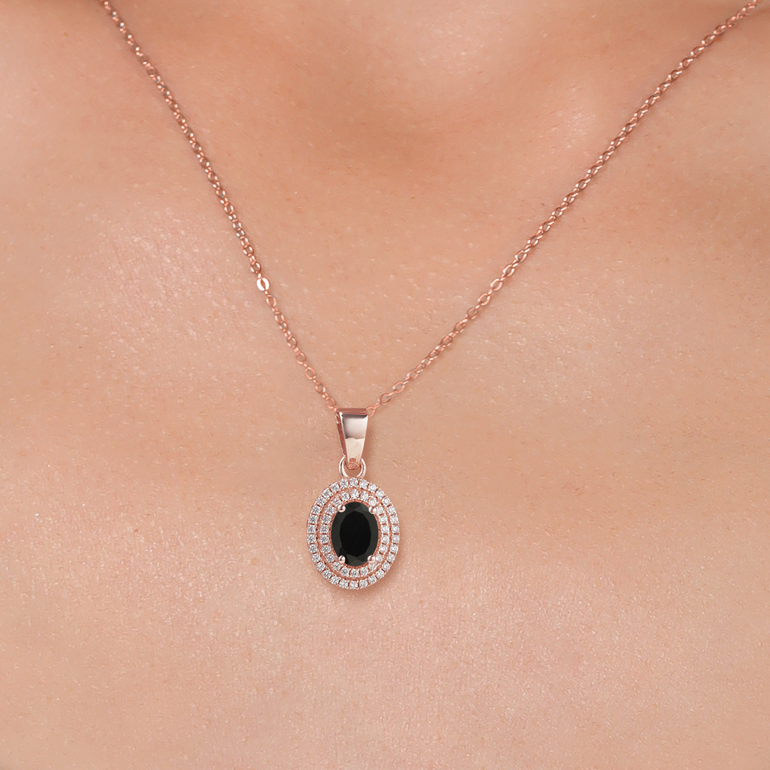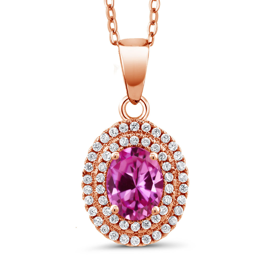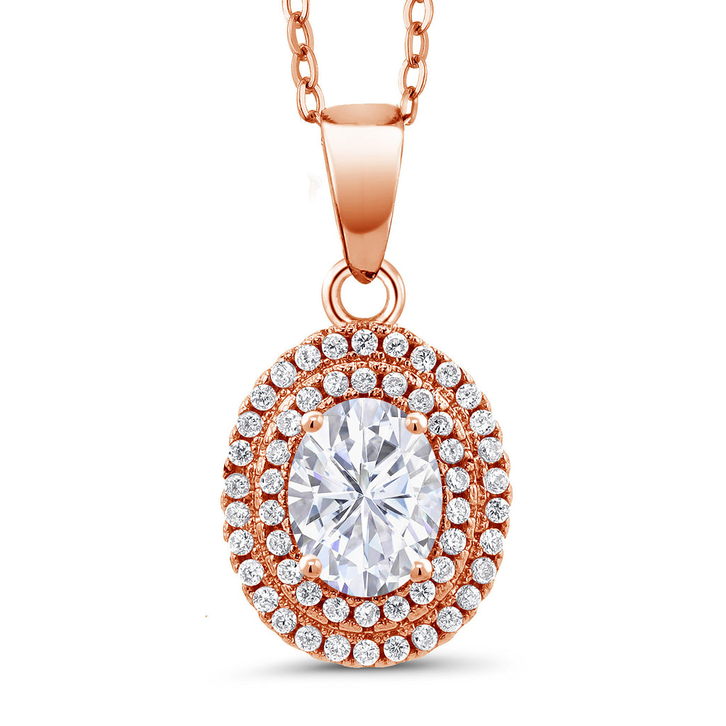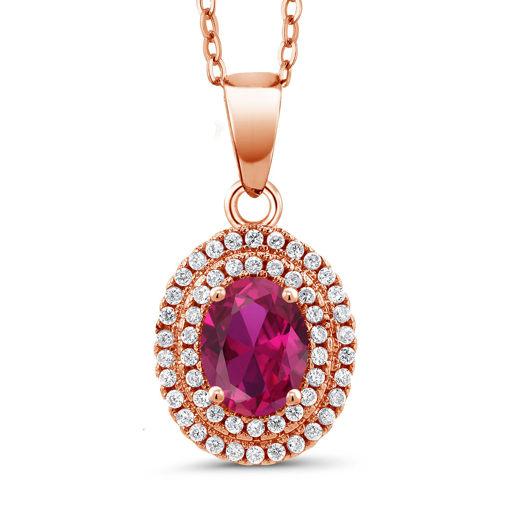 Double Halo Pendant Necklace For Women in 18K Rose Gold Plated Silver | 7X5MM Oval Gemstone Birhtstone with Accent Stones | 18-Inch Chain | Fine Jewelry Gifts for Her Mom Women Wife
