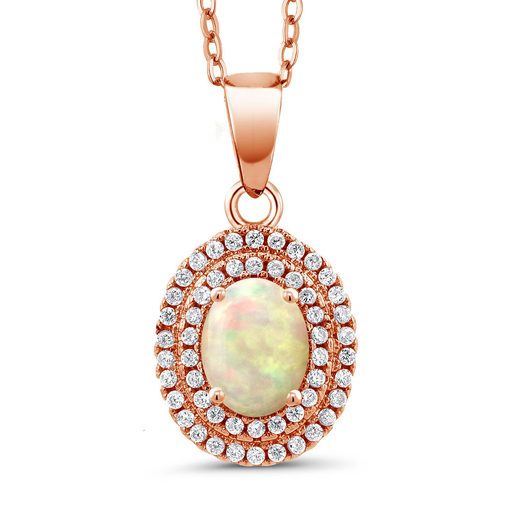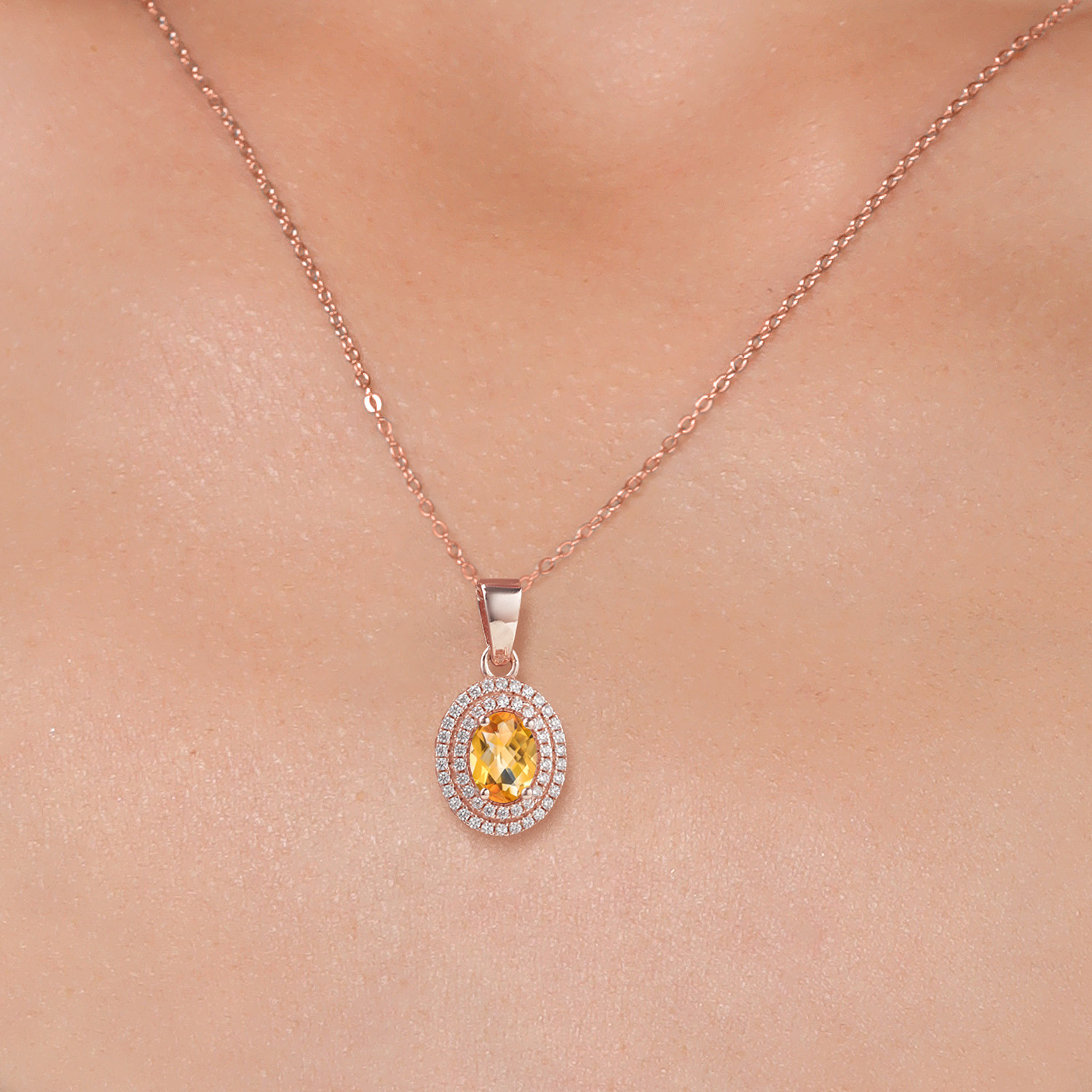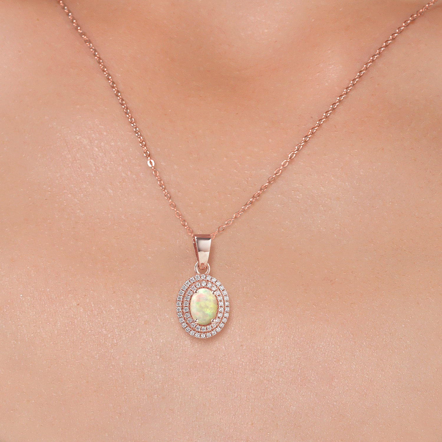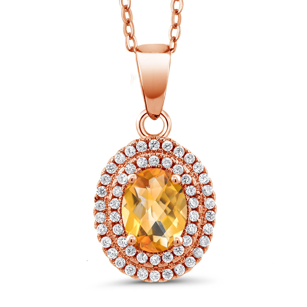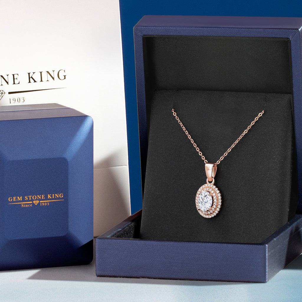 Double Halo Pendant Necklace For Women in 18K Rose Gold Plated Silver | 7X5MM Oval Gemstone Birhtstone with Accent Stones | 18-Inch Chain | Fine Jewelry Gifts for Her Mom Women Wife