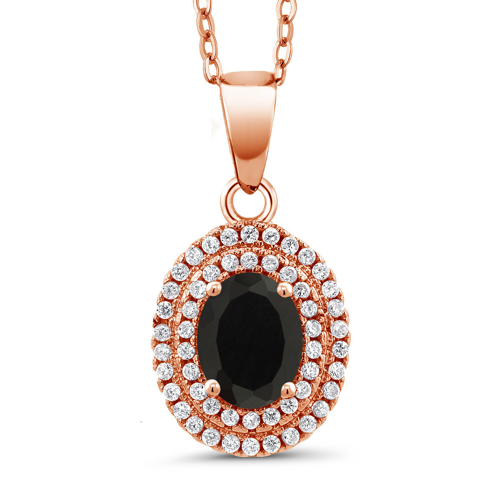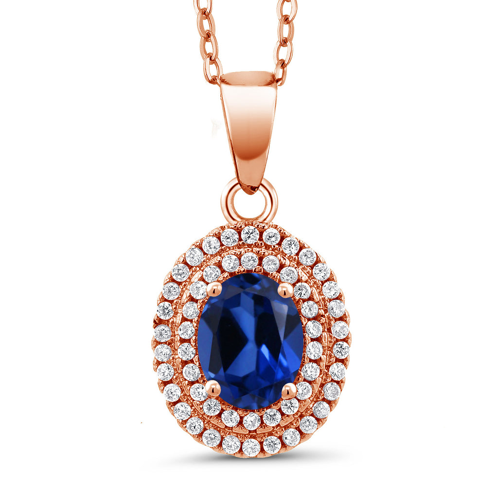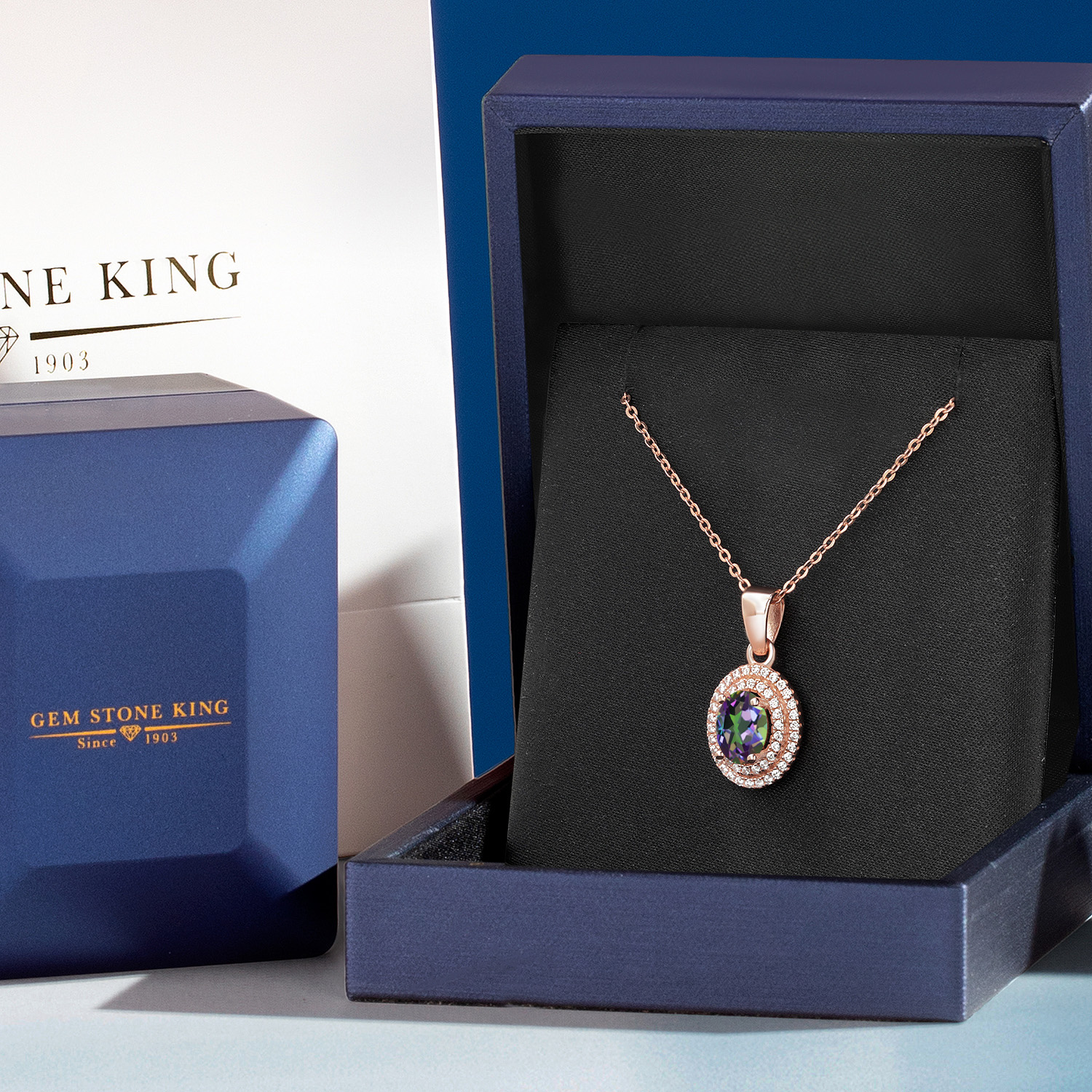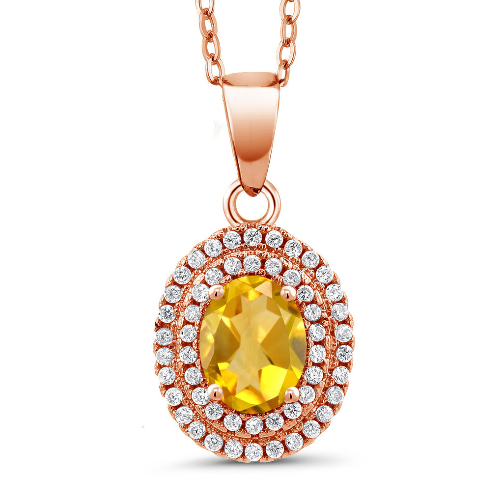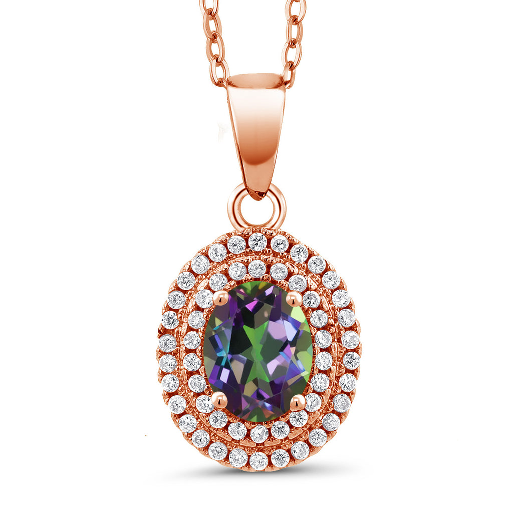 Double Halo Pendant Necklace For Women in 18K Rose Gold Plated Silver | 7X5MM Oval Gemstone Birhtstone with Accent Stones | 18-Inch Chain | Fine Jewelry Gifts for Her Mom Women Wife