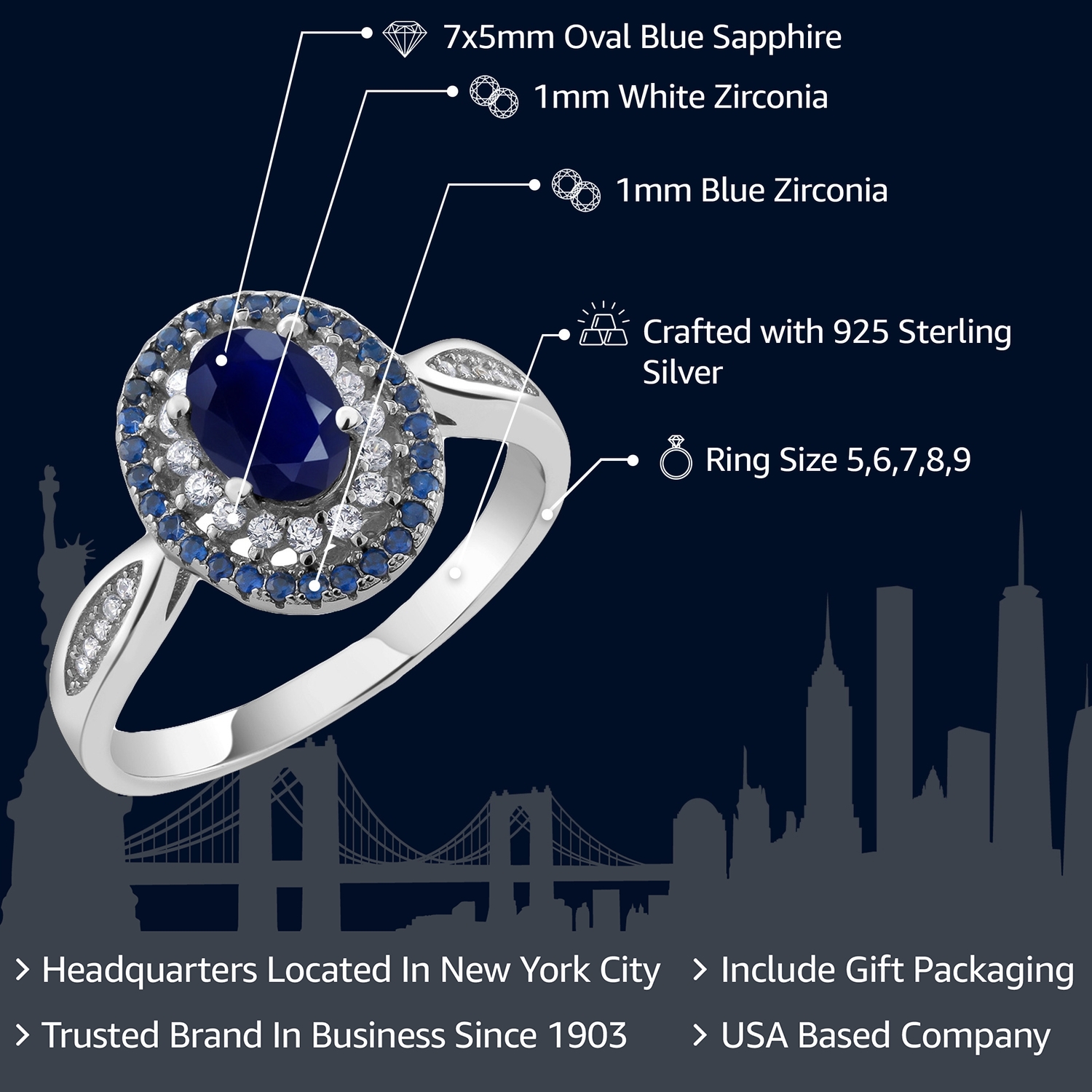 EXCEPTIONAL QUALITY AND CRAFTSMANSHIP: This exquisite ring features a beautifully cut 7X5MM oval gemstone, surrounded by a stunning double halo of sparkling stones, all set in high-quality 925 sterling silver. The superior craftsmanship ensures durability and a brilliant finish, making this ring a timeless piece in any jewelry collection.