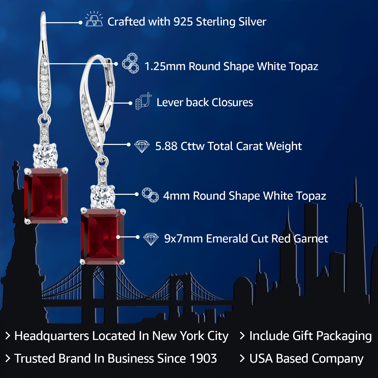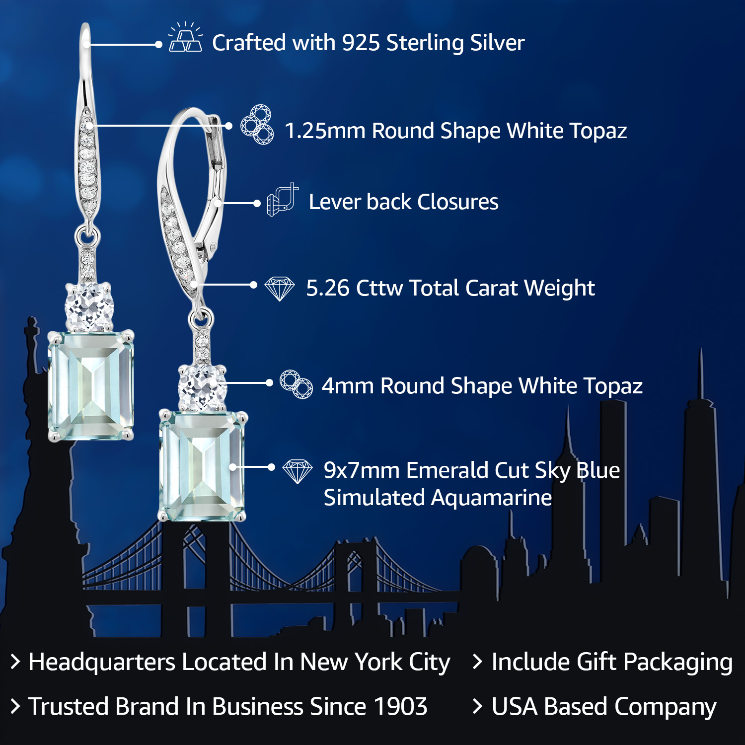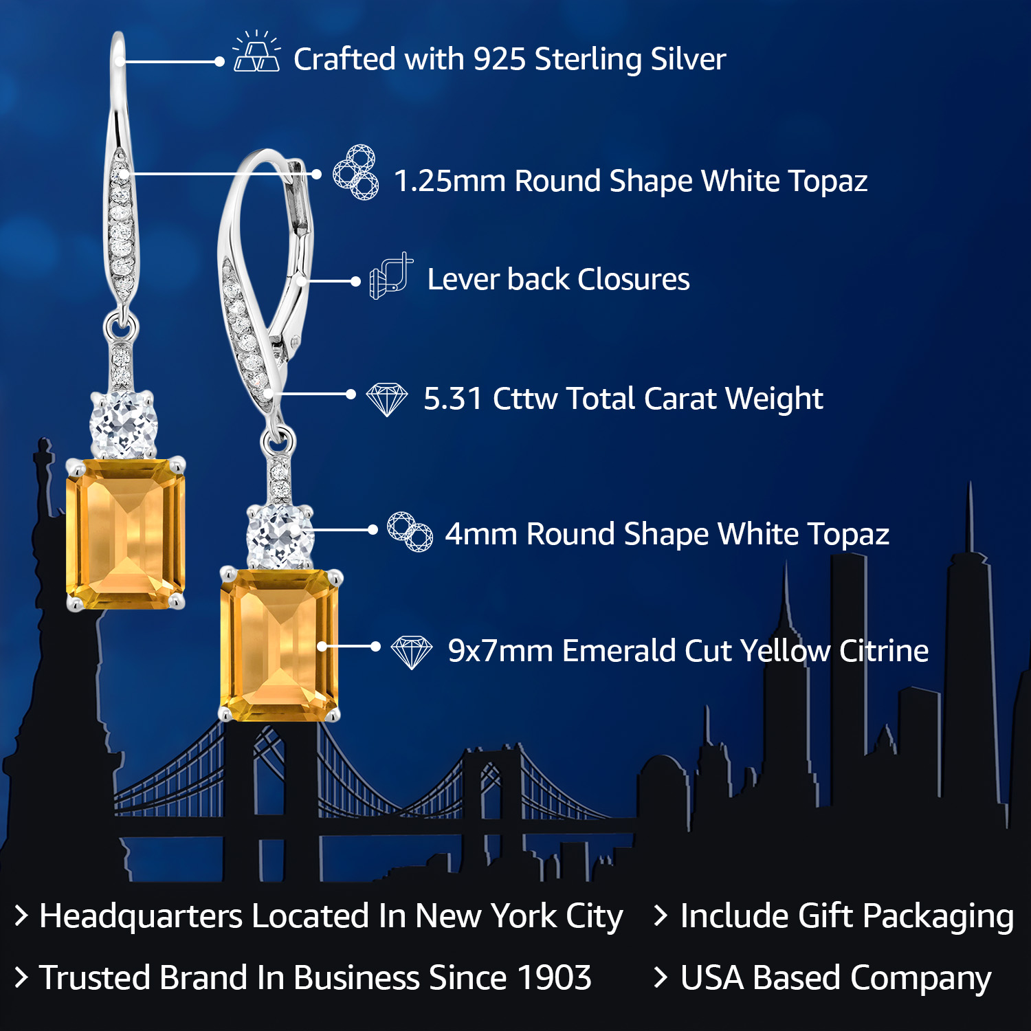 WHITE TOPAZ ACCENTS & CRAFTSMANSHIP: Each earring is adorned with dazzling white topaz accents, enhancing the grandeur of the main gemstone. The meticulous craftsmanship reflects an unwavering commitment to detail and quality, creating a harmonious blend of sparkle and elegance. The secure drop dangle style is both chic and versatile, promising a comfortable fit and a graceful sway that captures light beautifully, elevating any outfit with a touch of glamour.