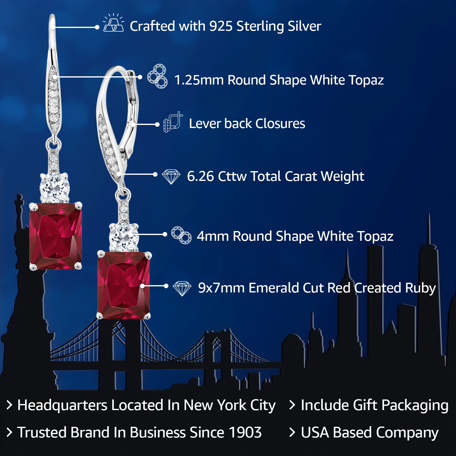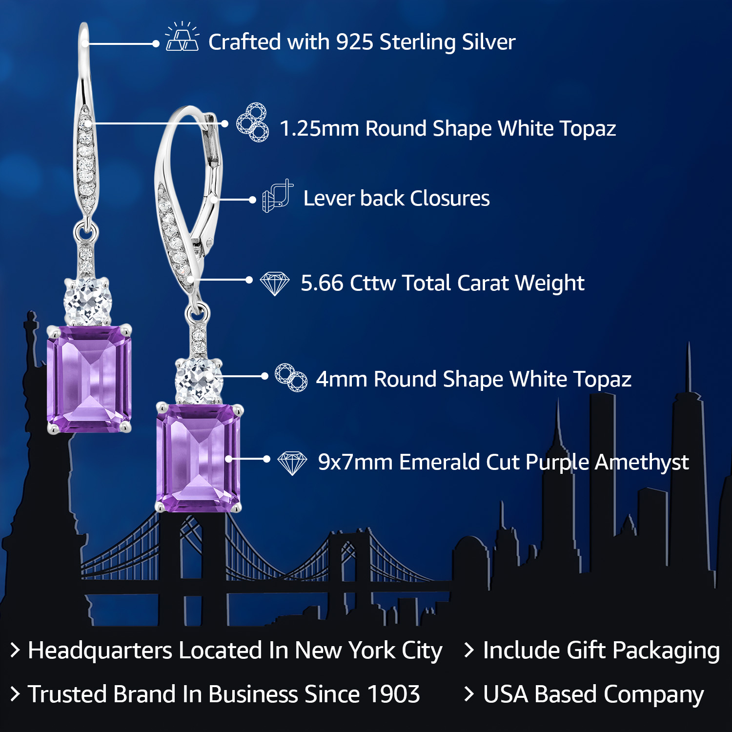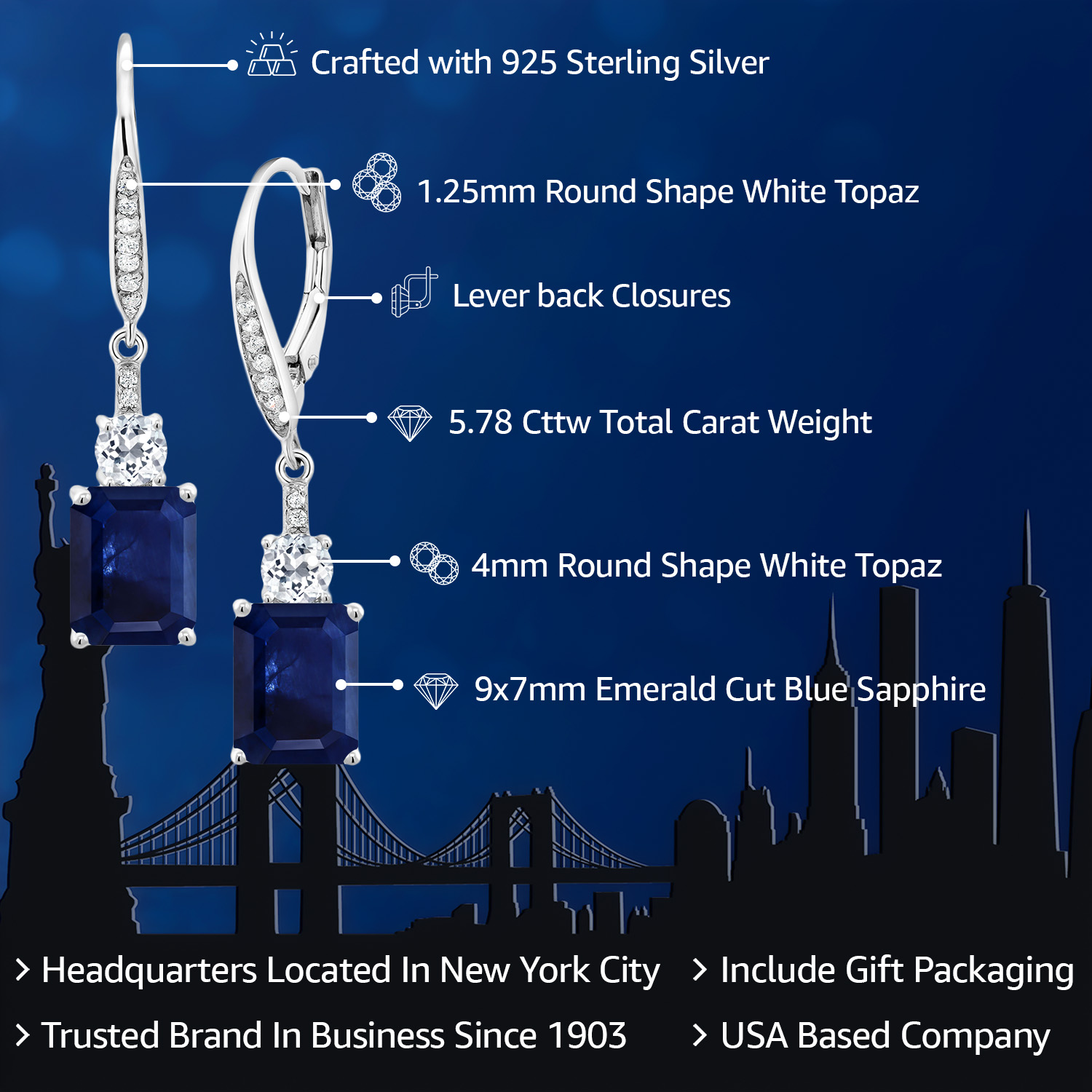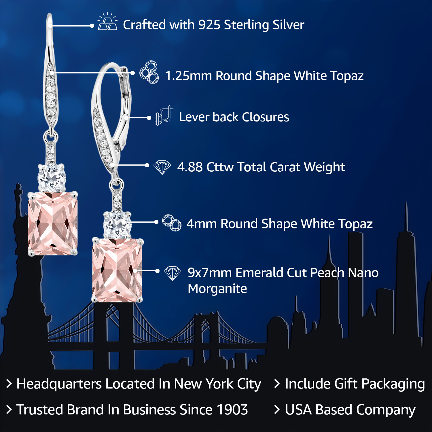 WHITE TOPAZ ACCENTS & CRAFTSMANSHIP: Each earring is adorned with dazzling white topaz accents, enhancing the grandeur of the main gemstone. The meticulous craftsmanship reflects an unwavering commitment to detail and quality, creating a harmonious blend of sparkle and elegance. The secure drop dangle style is both chic and versatile, promising a comfortable fit and a graceful sway that captures light beautifully, elevating any outfit with a touch of glamour.