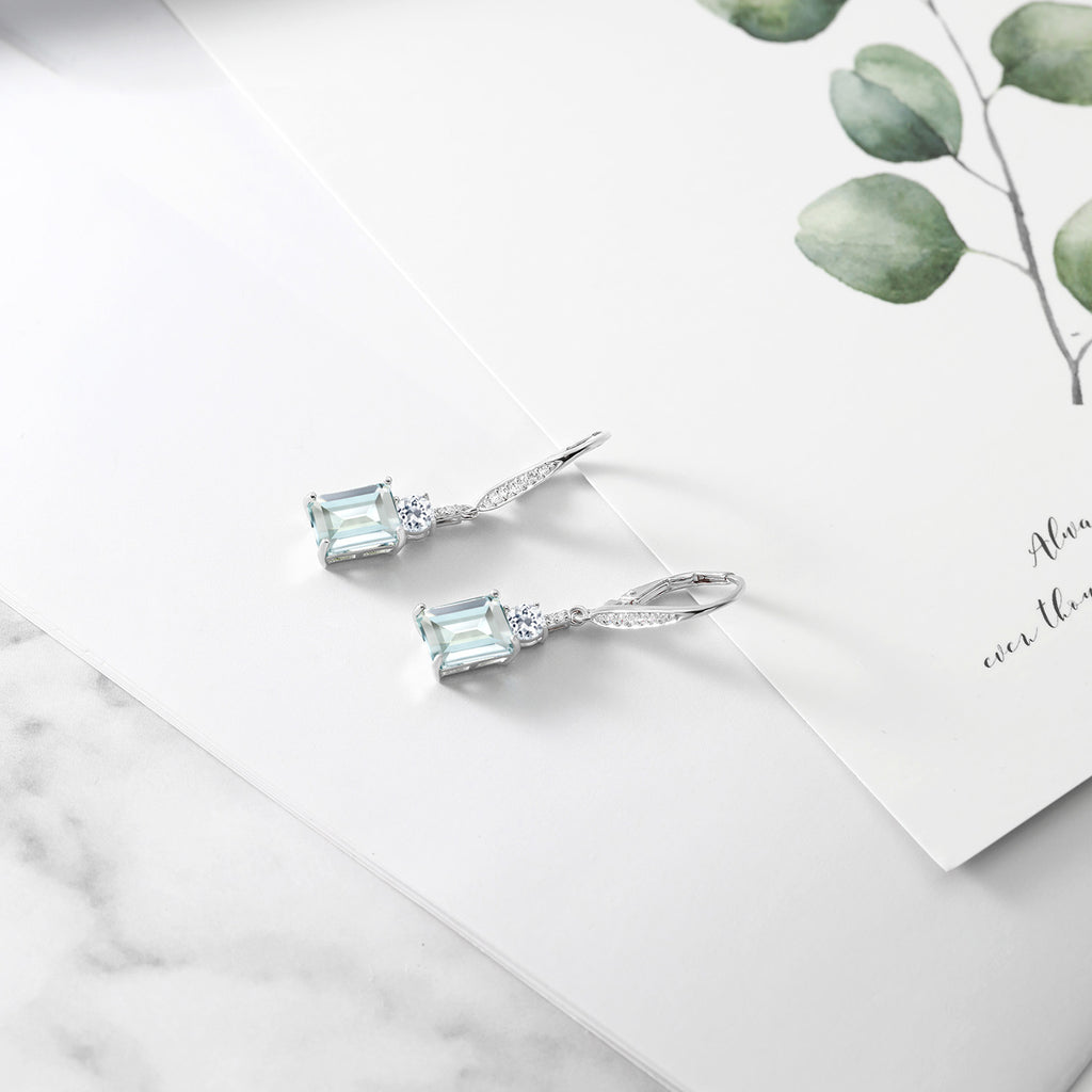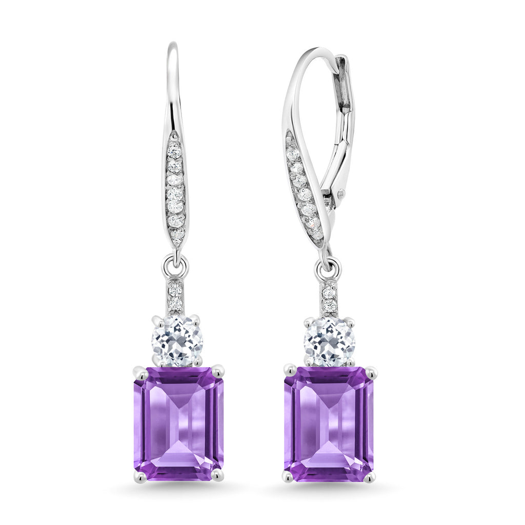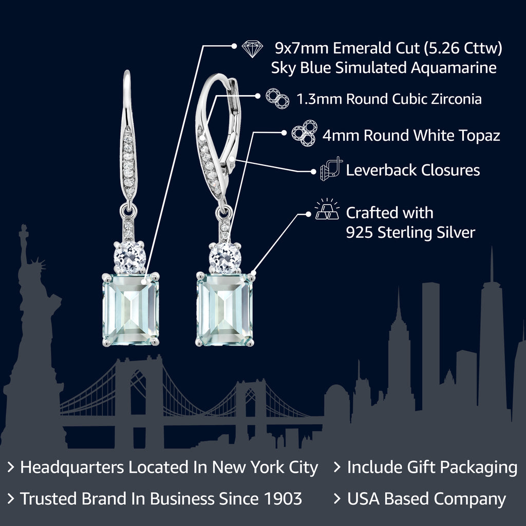 Drop Dangle Gemstone Birthstone and White Topaz Earrings for Women | 925 Sterling Silver | Emerald Cut 9X7MM | Fine Jewelry Gifts for Her Mom Anniversary Wedding