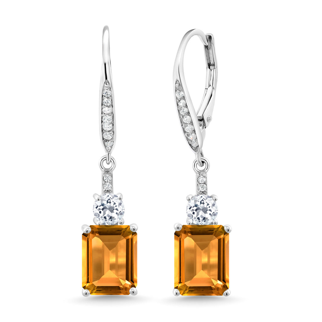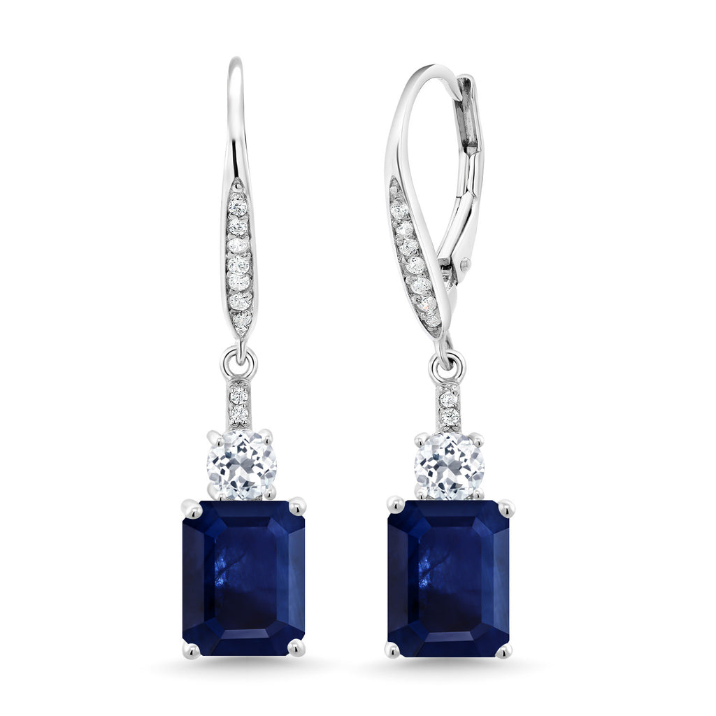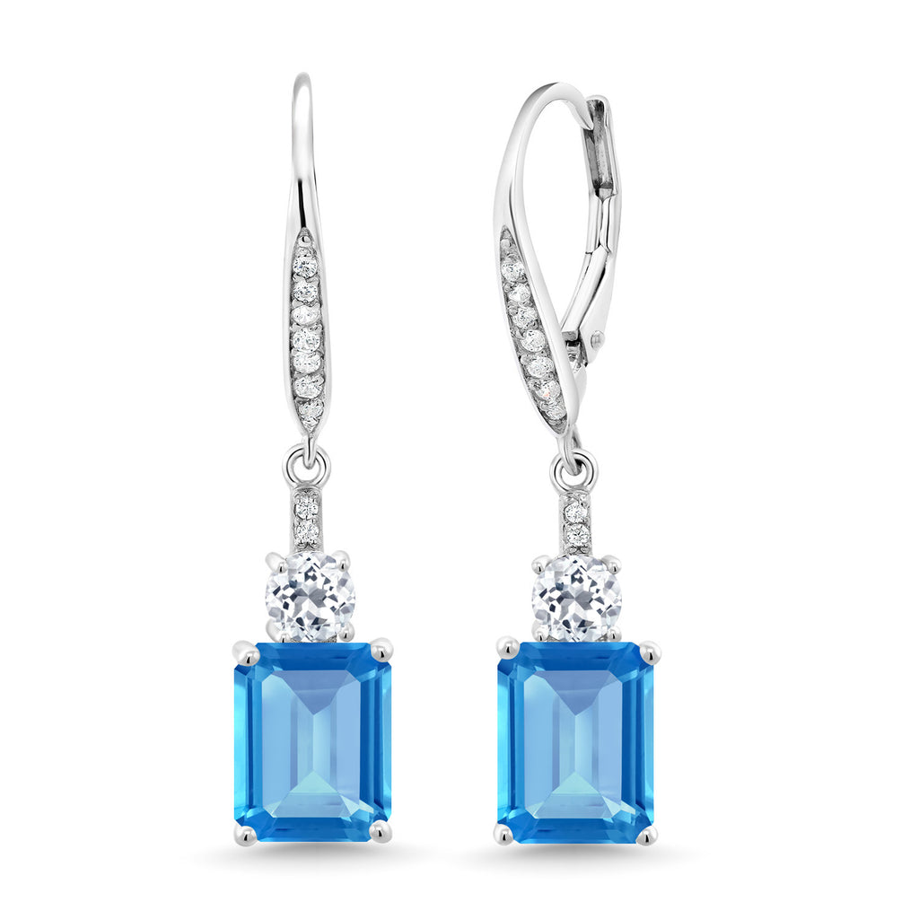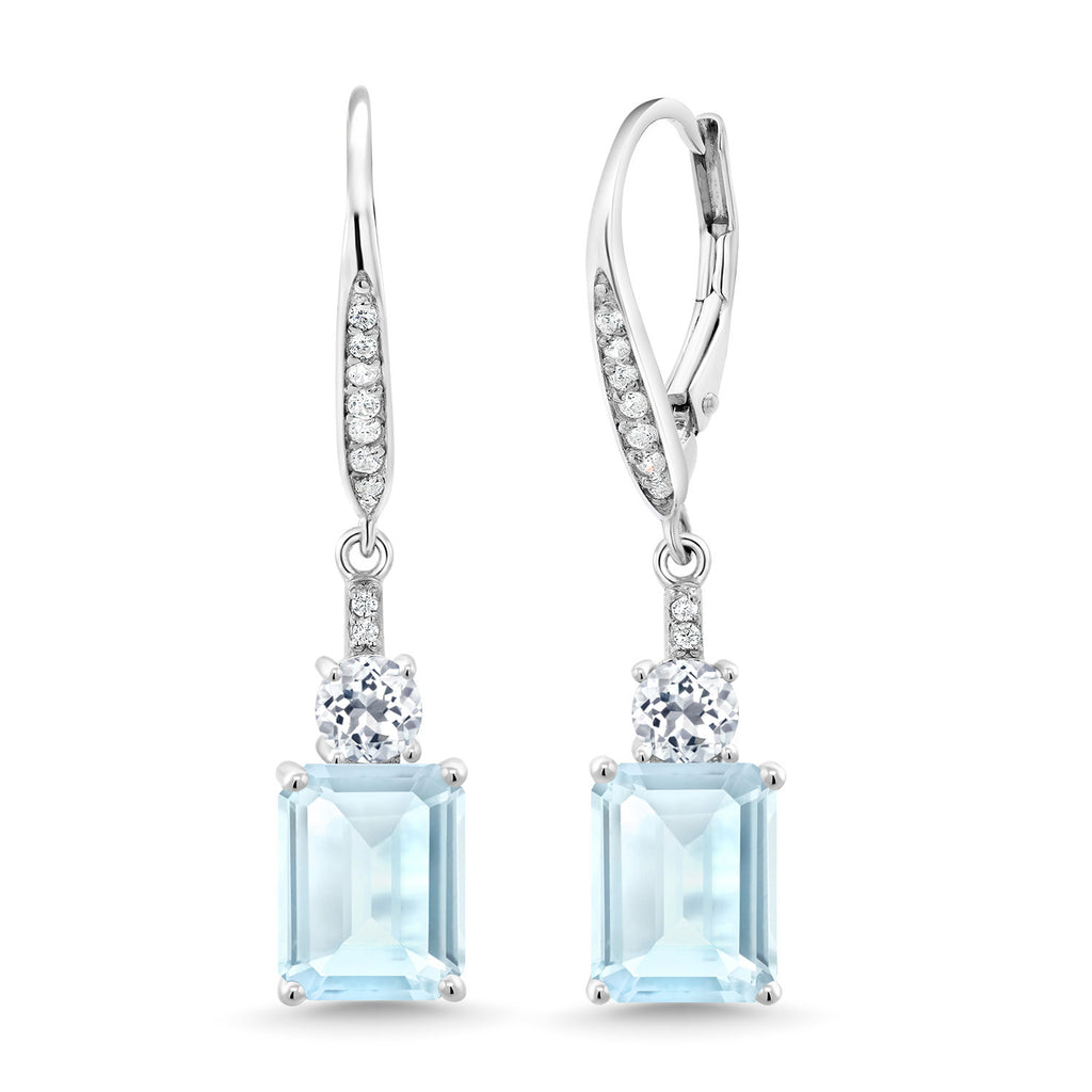 Drop Dangle Gemstone Birthstone and White Topaz Earrings for Women | 925 Sterling Silver | Emerald Cut 9X7MM | Fine Jewelry Gifts for Her Mom Anniversary Wedding
