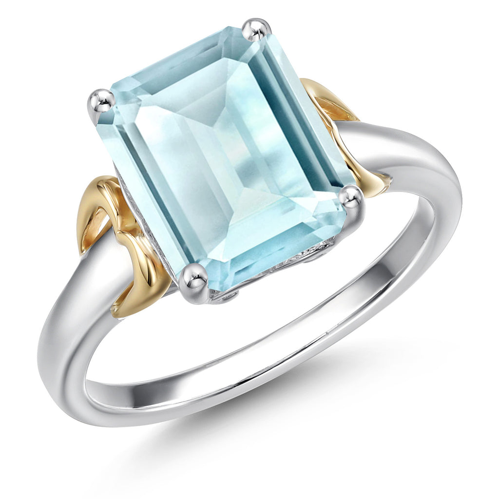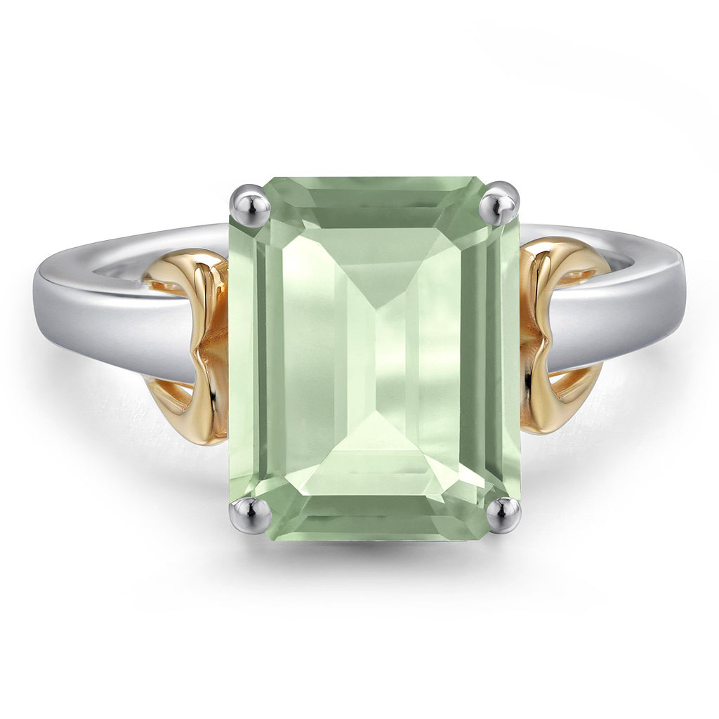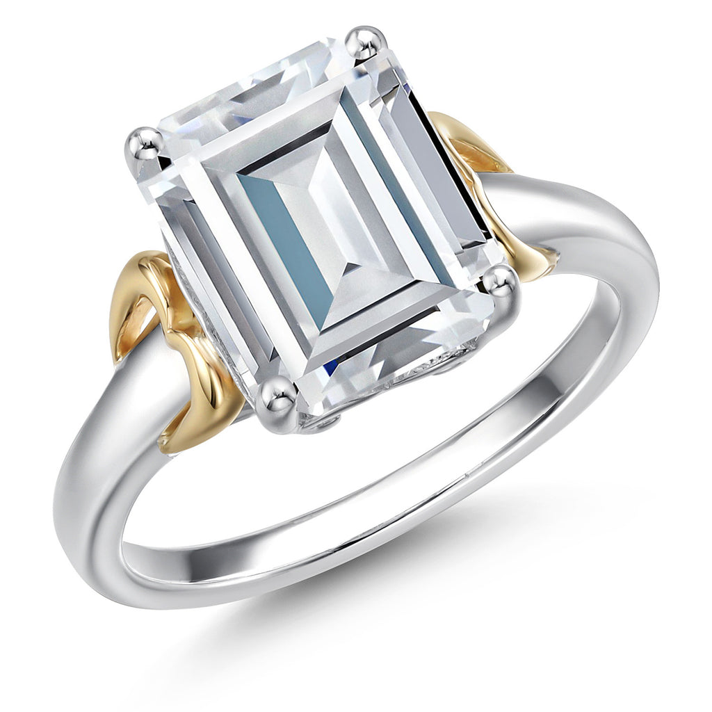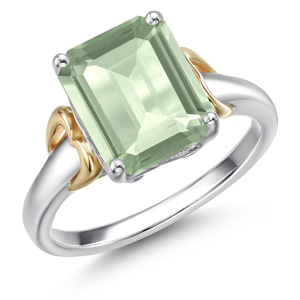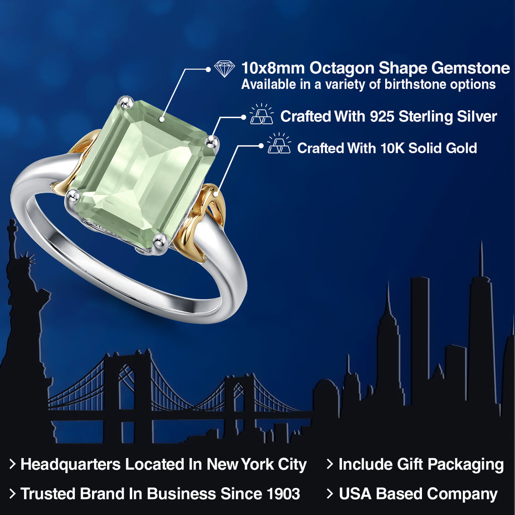 Gemstone Birthstone 2-Tone Solitaire Engagement Ring for Women | 925 Silver and 10K Yellow Gold | 10X8MM Emerald Cut | Wedding Anniversary Promise Ring