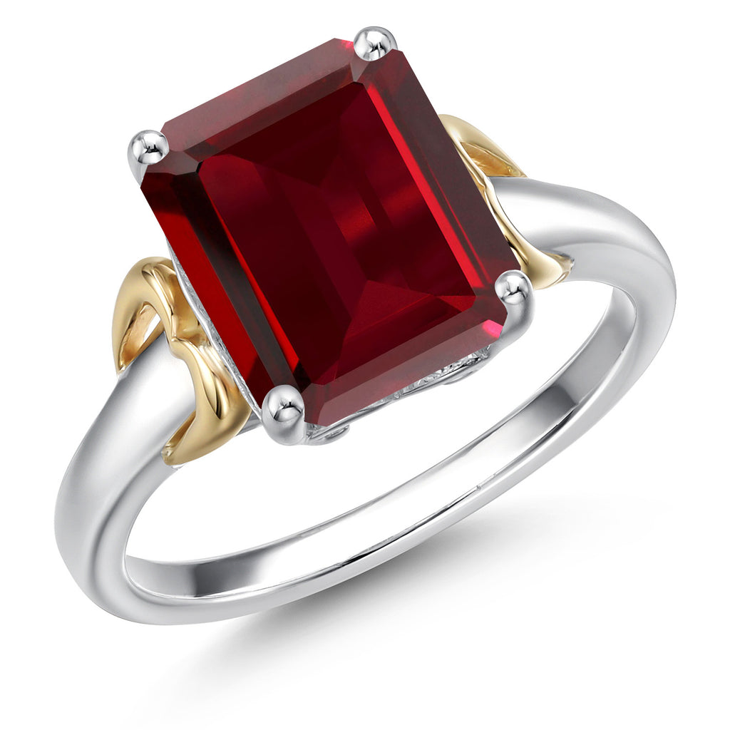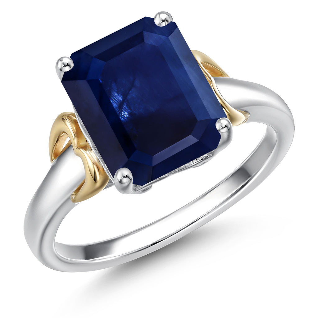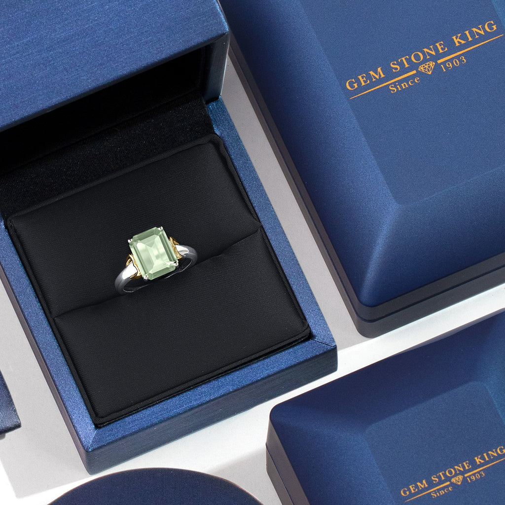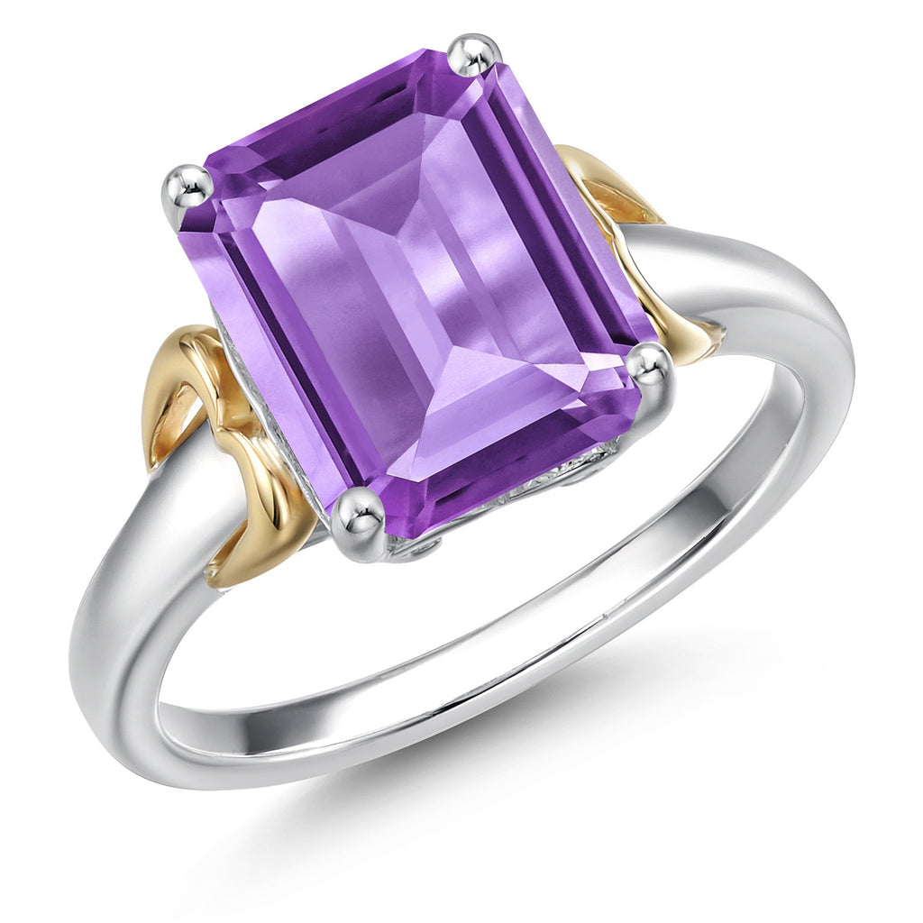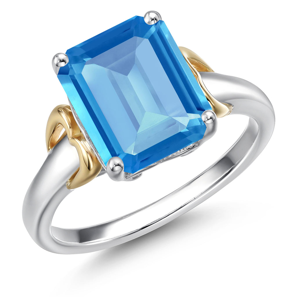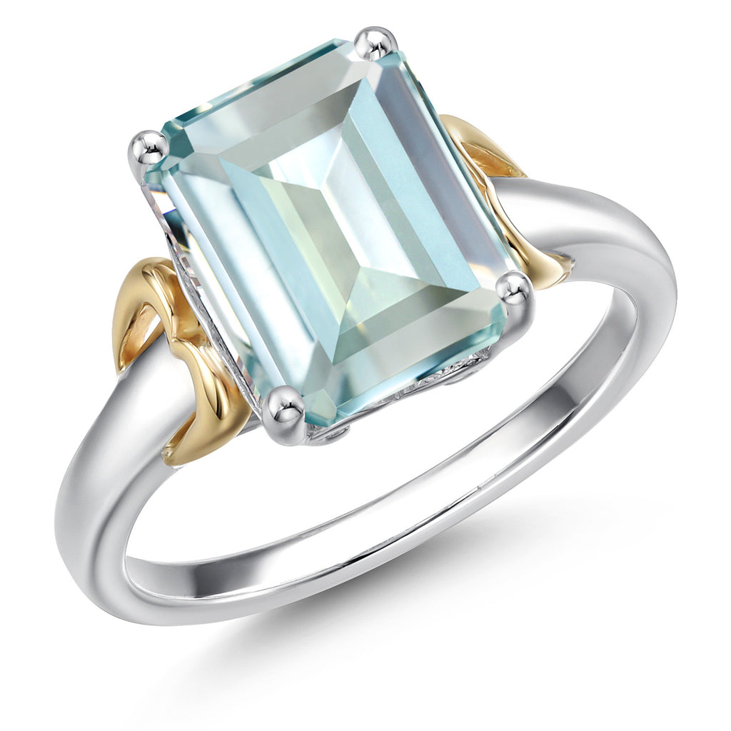 Gemstone Birthstone 2-Tone Solitaire Engagement Ring for Women | 925 Silver and 10K Yellow Gold | 10X8MM Emerald Cut | Wedding Anniversary Promise Ring