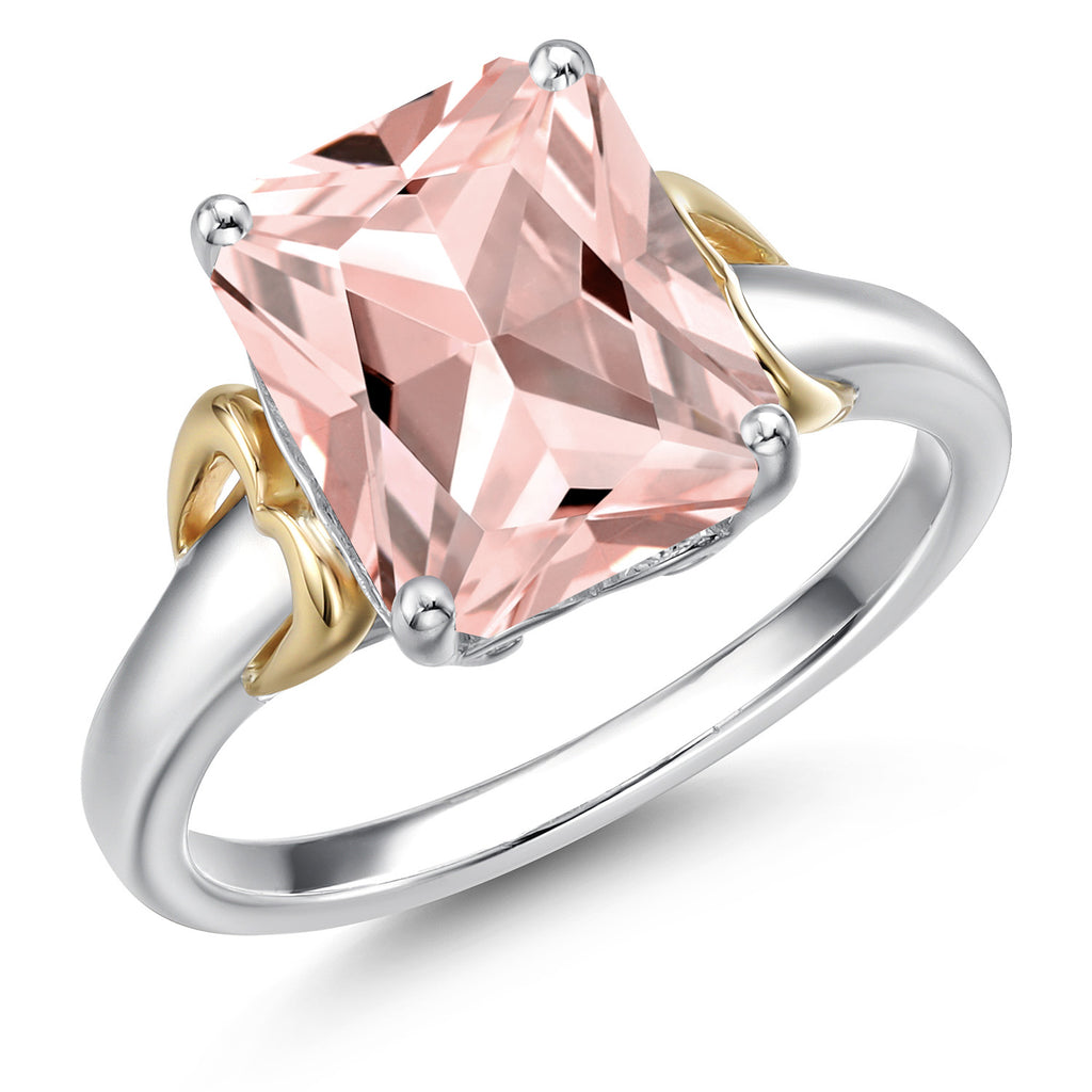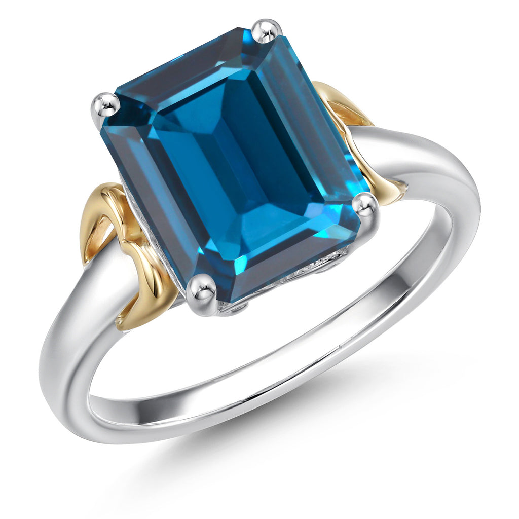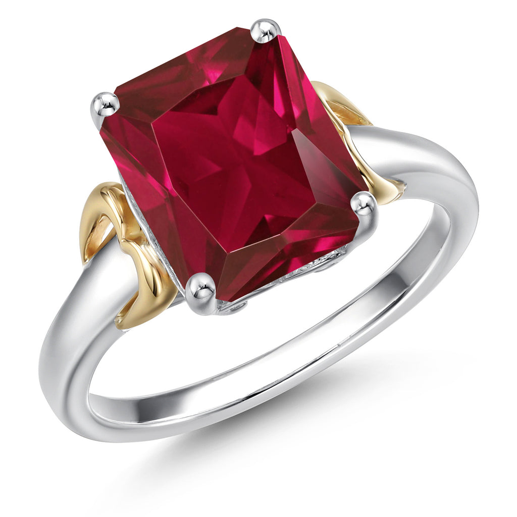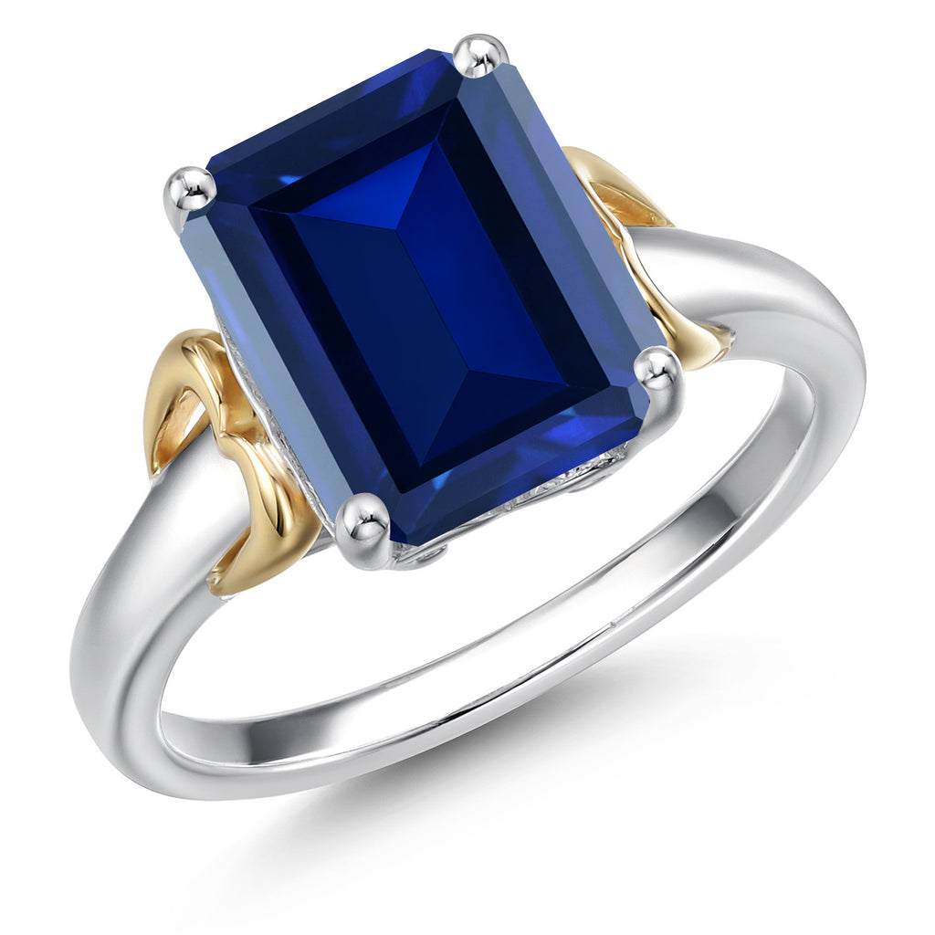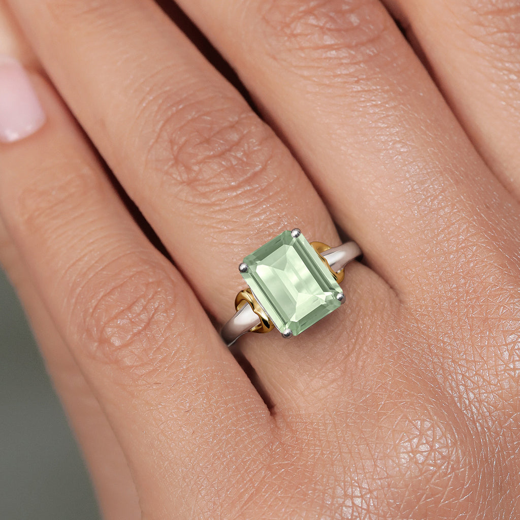Gemstone Birthstone 2-Tone Solitaire Engagement Ring for Women | 925 Silver and 10K Yellow Gold | 10X8MM Emerald Cut | Wedding Anniversary Promise Ring