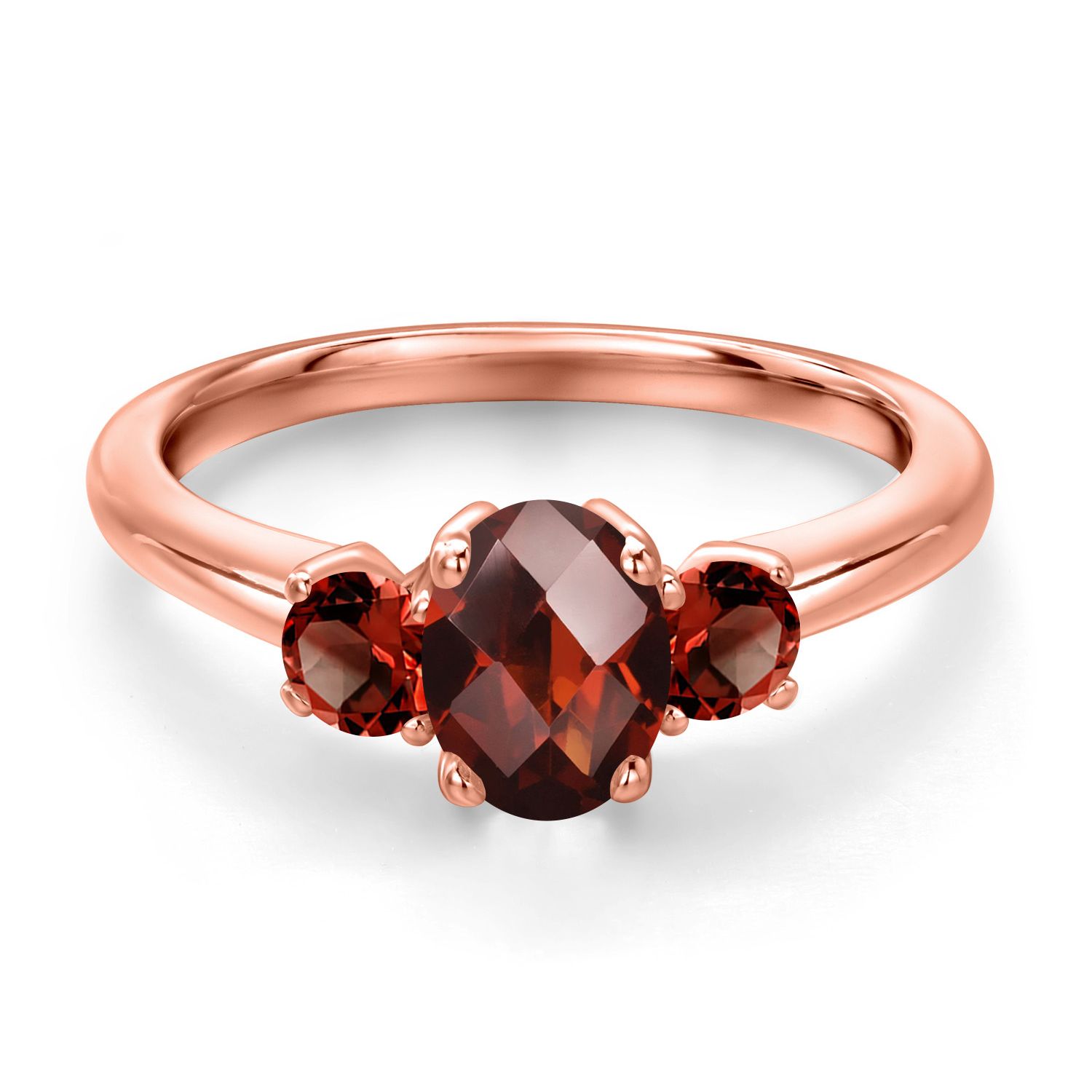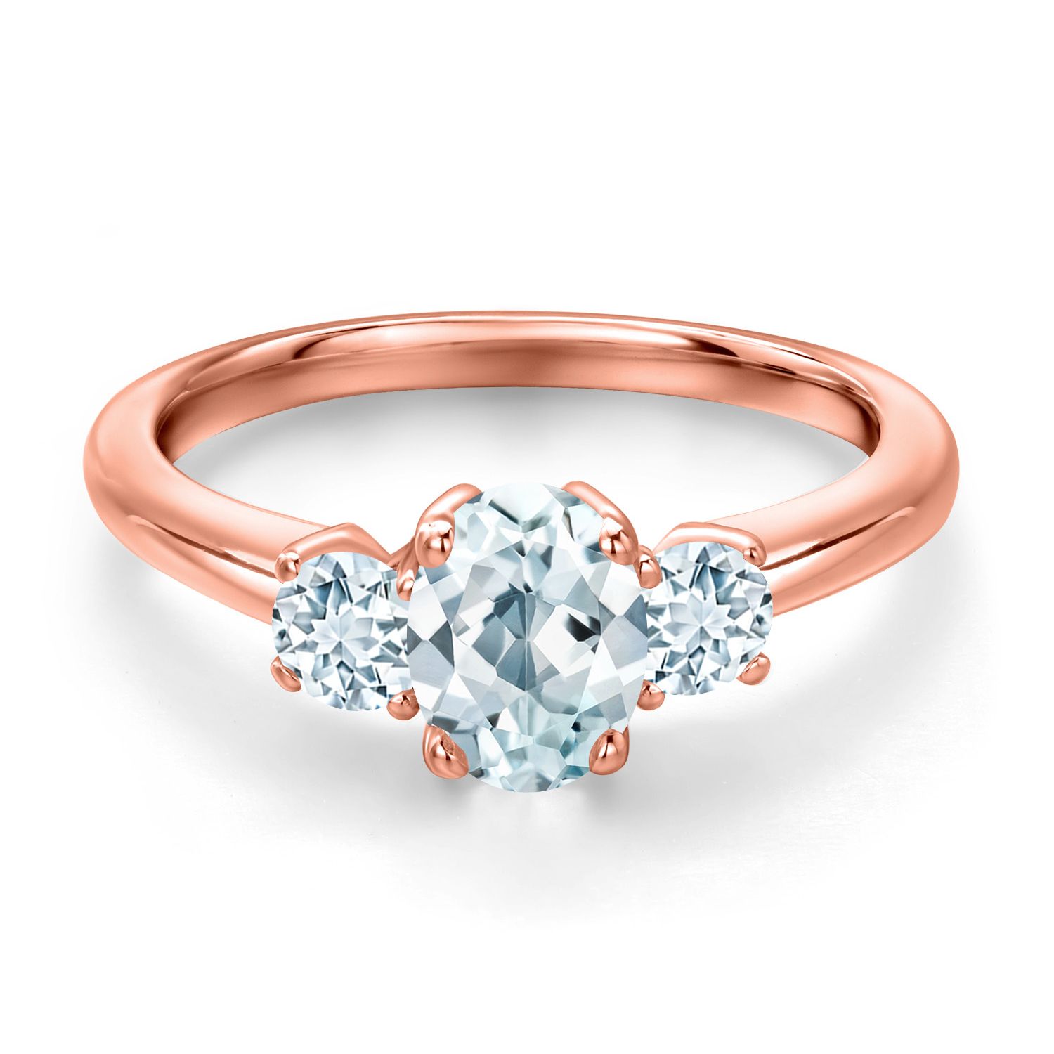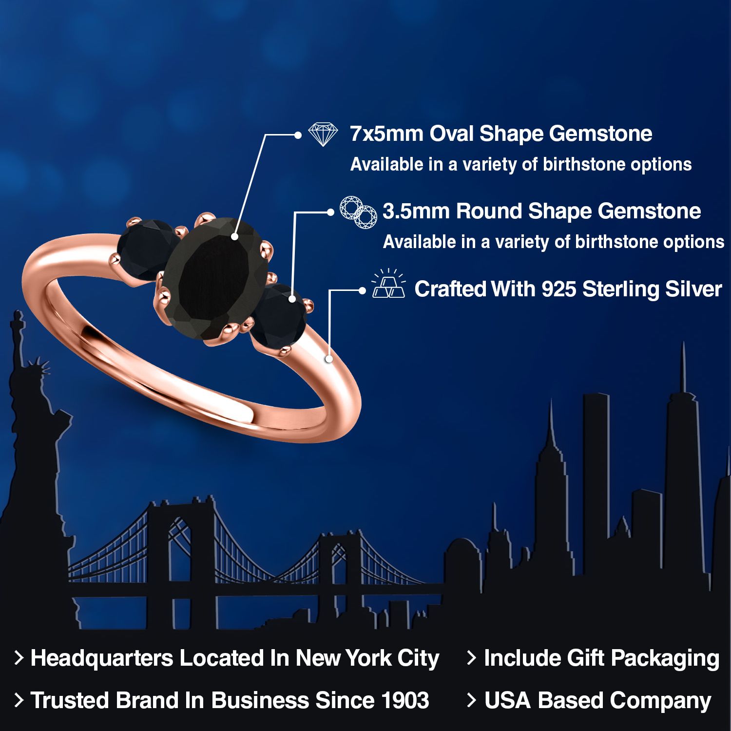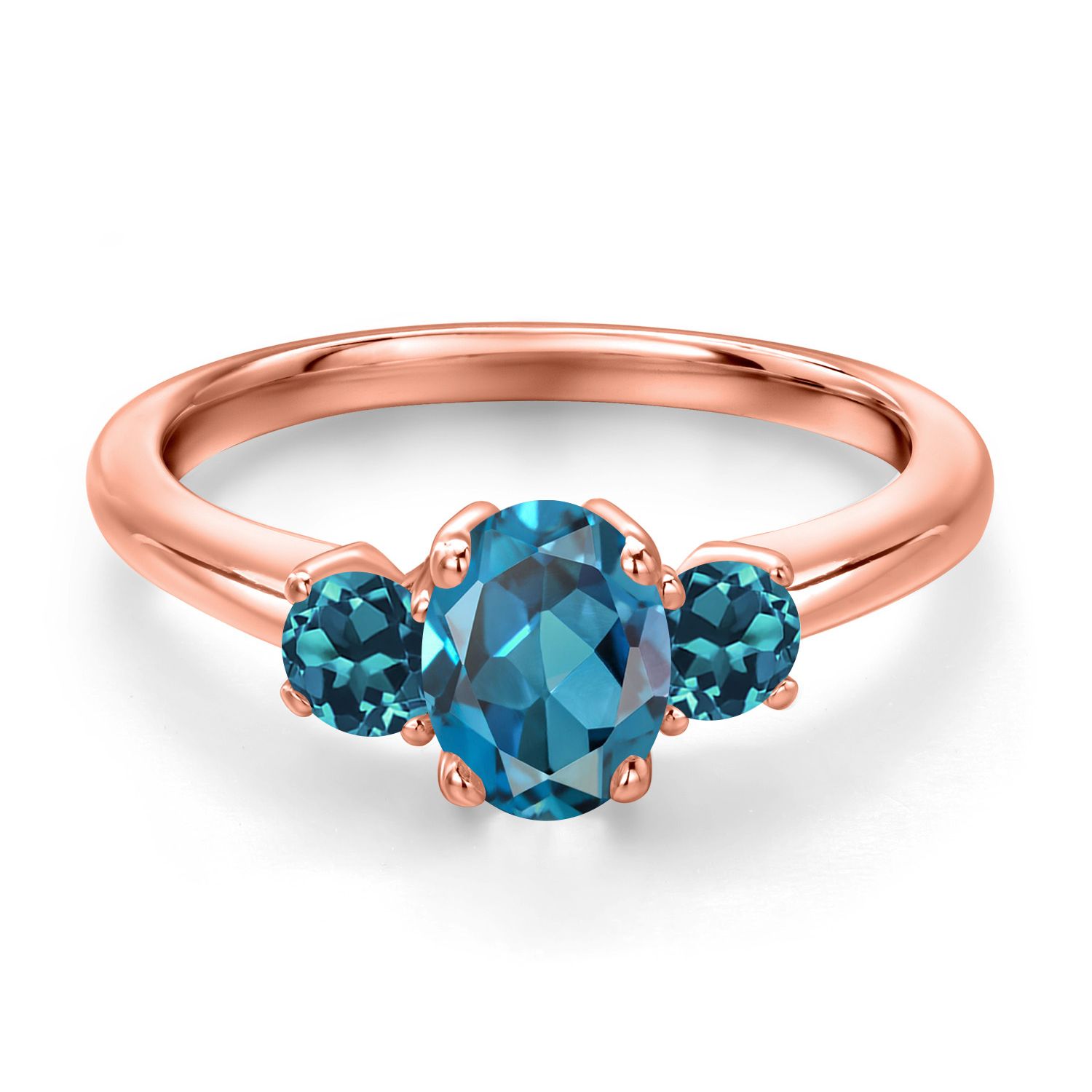 Gemstone Birthstone 3-Stone Engagement Ring for Women in 18K Rose Gold Plated Silver | Oval 7X5MM and Round 3MM | Wedding Anniversary Promise Ring | Sizes 5, 6, 7, 8, 9
