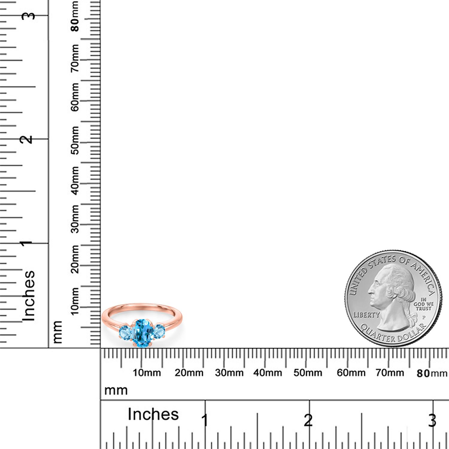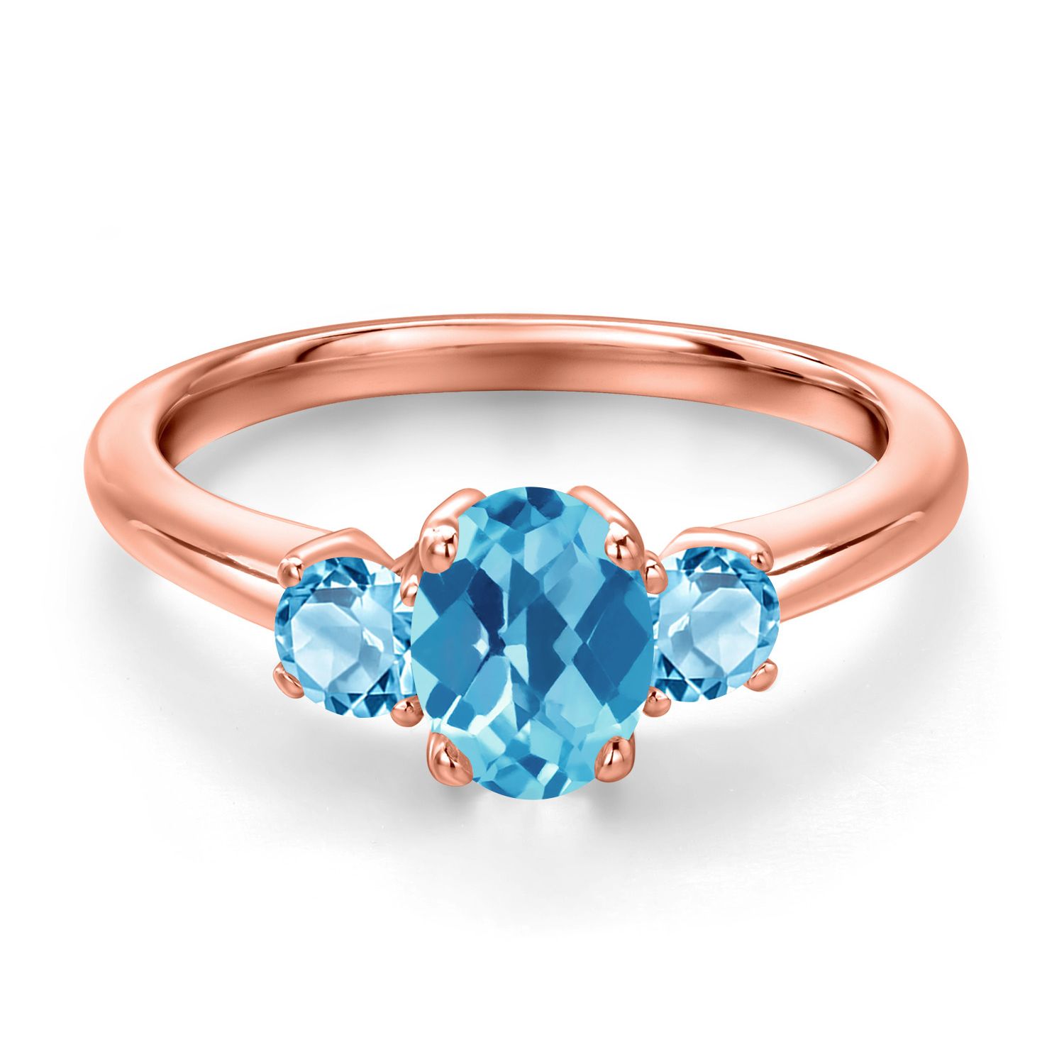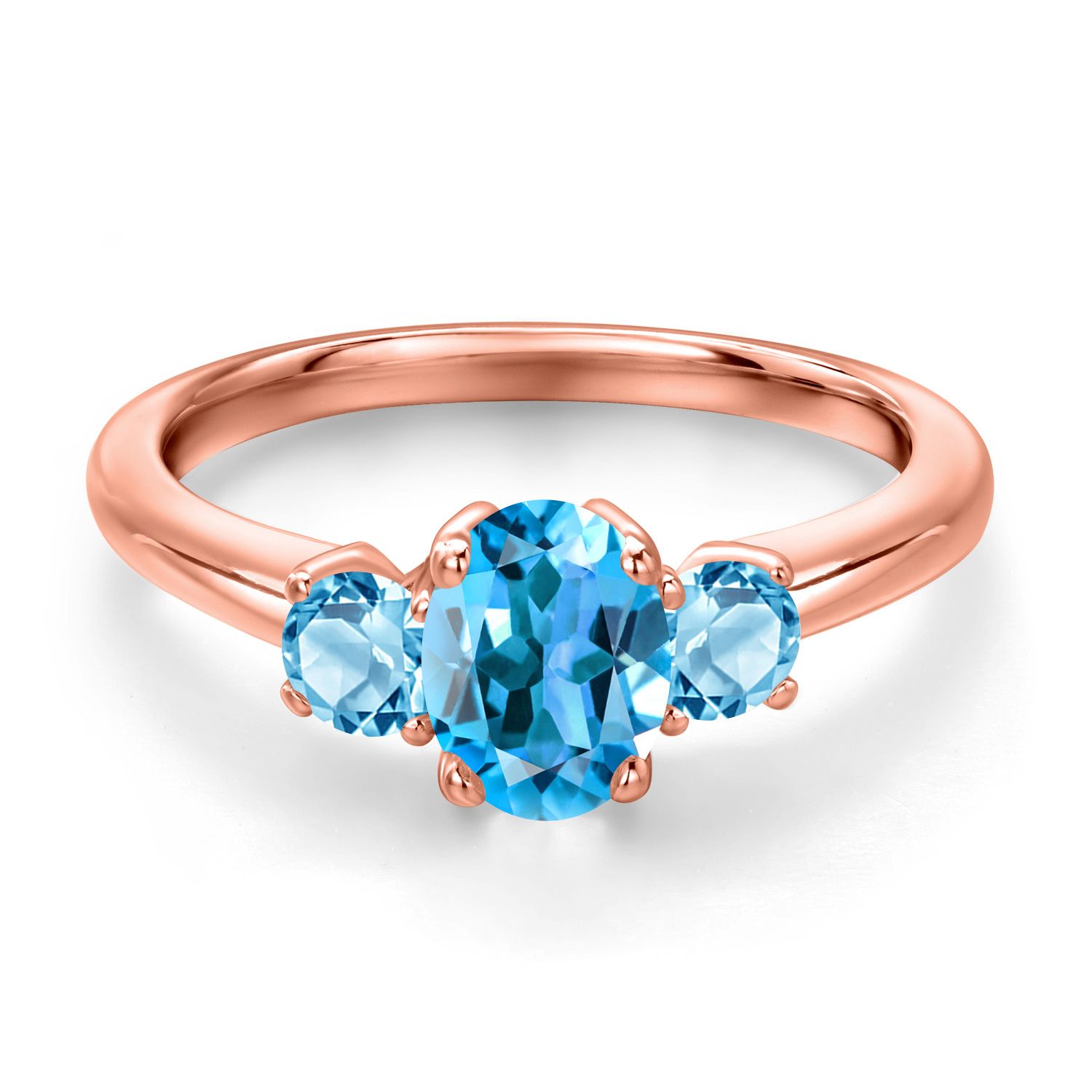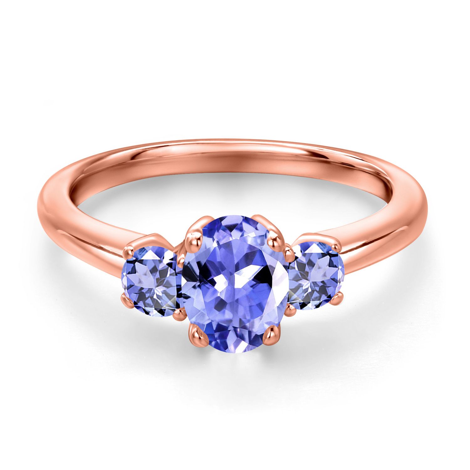 Gemstone Birthstone 3-Stone Engagement Ring for Women in 18K Rose Gold Plated Silver | Oval 7X5MM and Round 3MM | Wedding Anniversary Promise Ring | Sizes 5, 6, 7, 8, 9