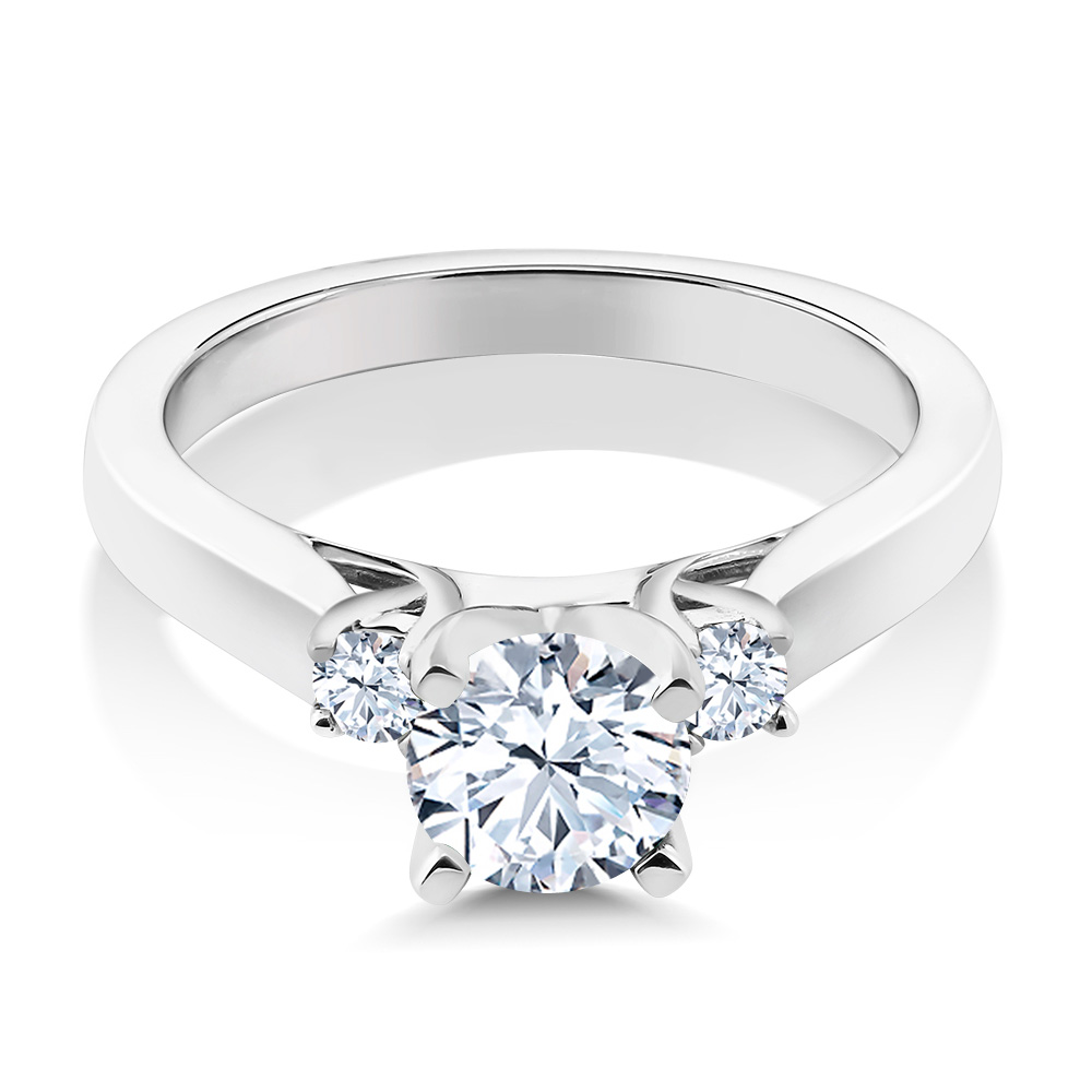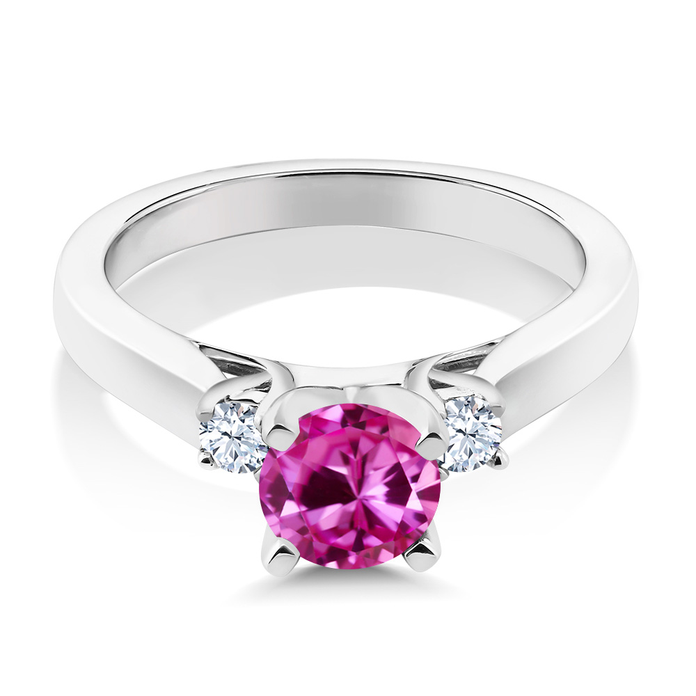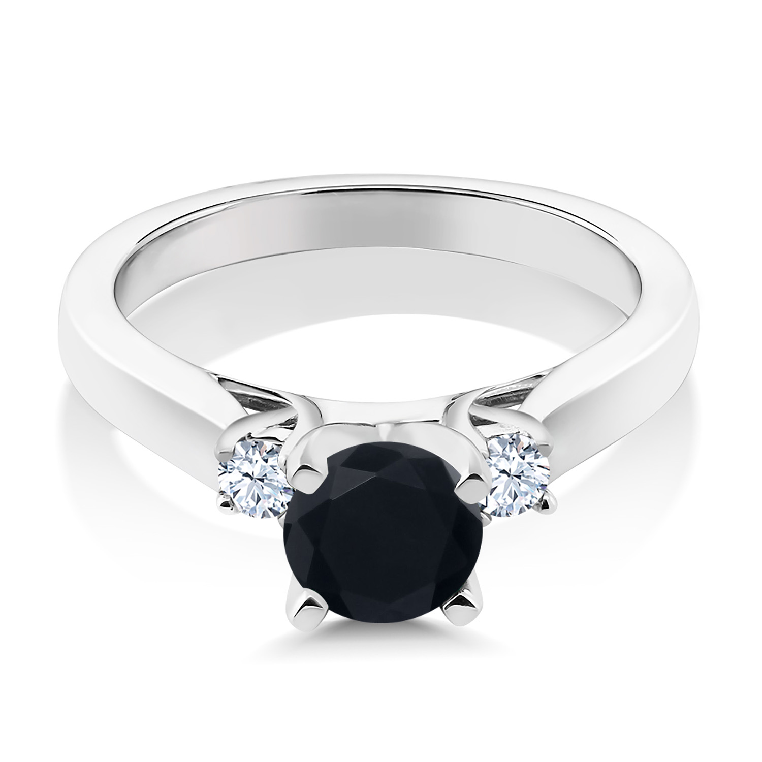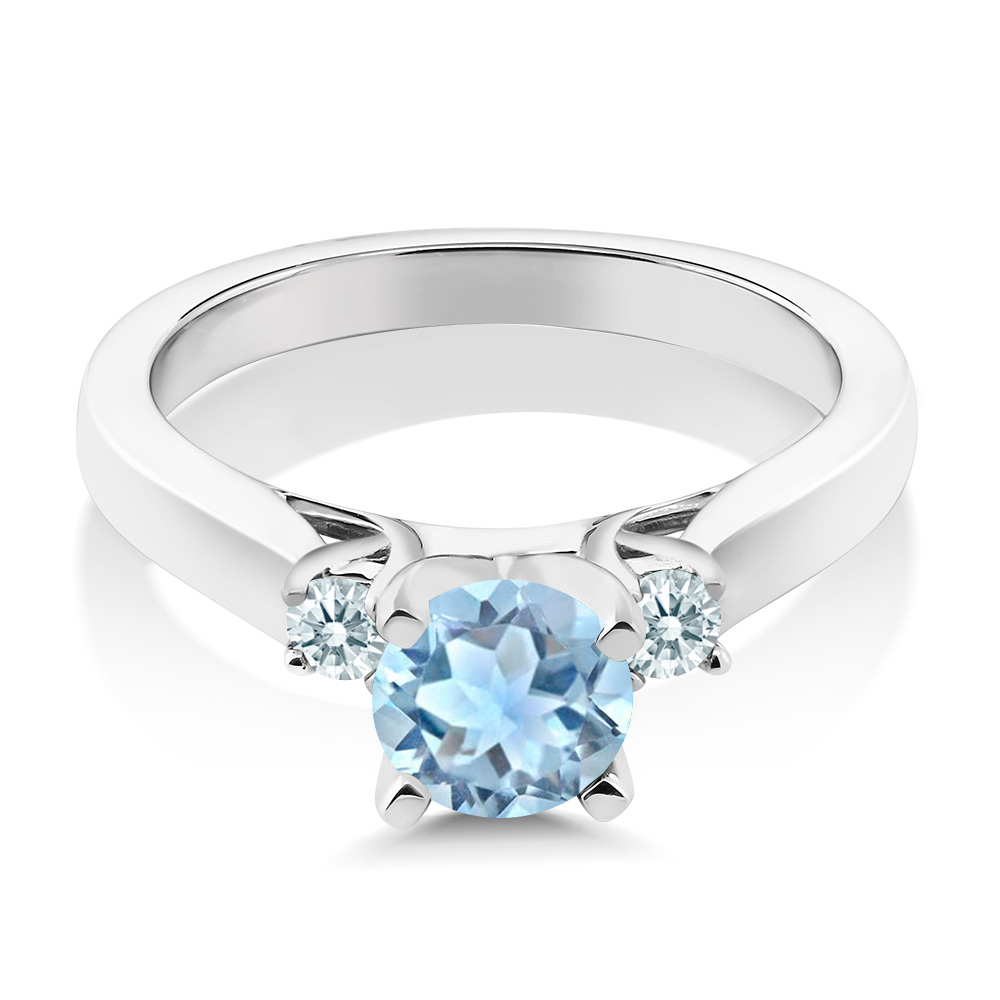 ELEGANT THREE-STONE DESIGN: Central gemstone is flanked by two 2.5MM round accent zirconias, creating a harmonious, eye-catching look. The sleek silver band enhances its brilliance, offering timeless elegance that complements any outfit and occasion beautifully.