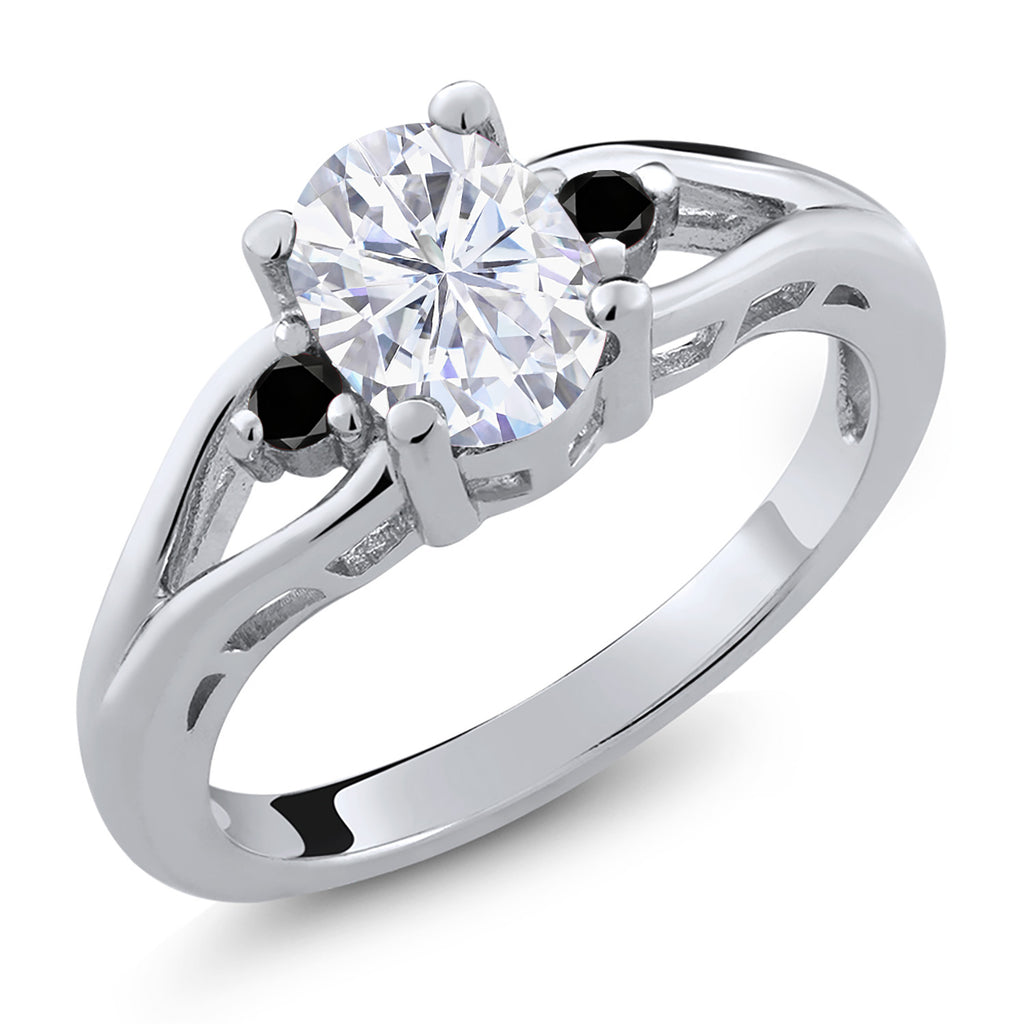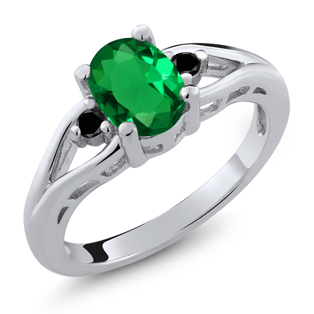 THREE-STONE DESIGN & CRAFTSMANSHIP: The elegant three-stone setting features a central oval gemstone flanked by two 2MM round black diamonds, creating a harmonious balance of color and sparkle. Each stone is expertly set by skilled artisans, ensuring secure placement and a stunning visual effect. The intricate craftsmanship highlights the ring's sophisticated style, making it a perfect choice for engagements, anniversaries, or as a promise ring that signifies enduring love.